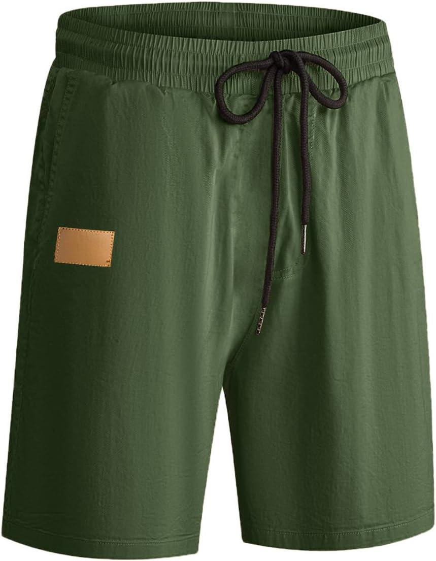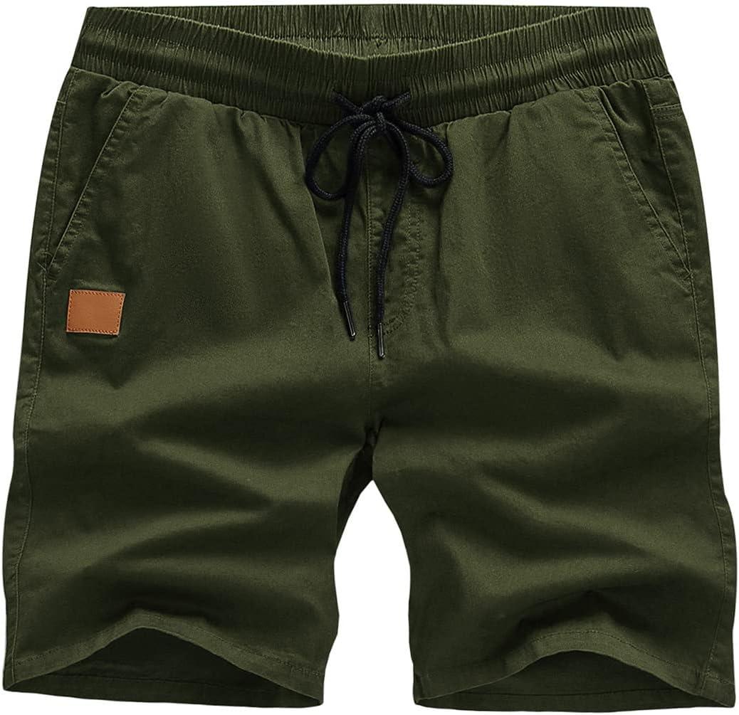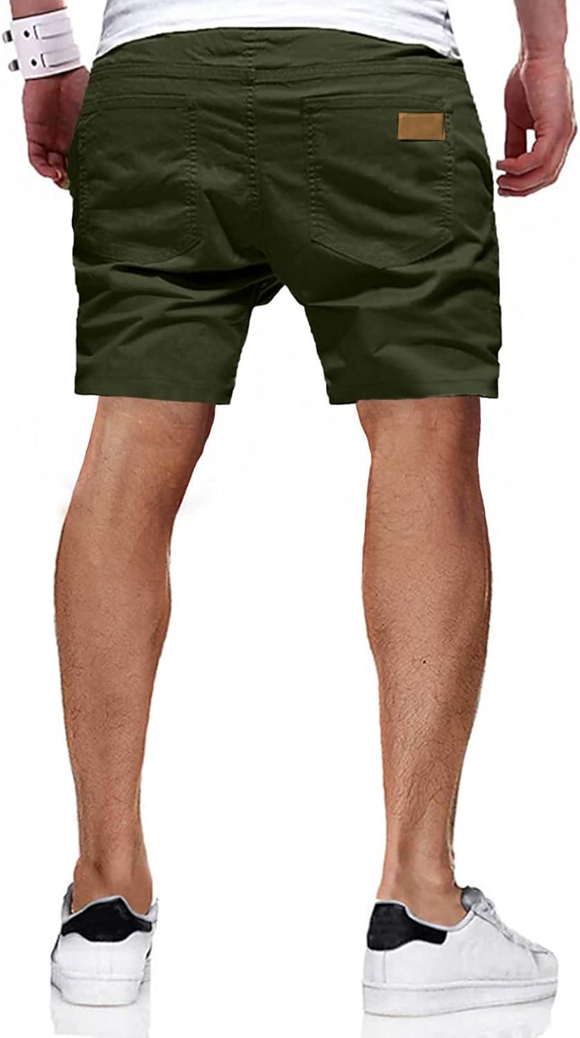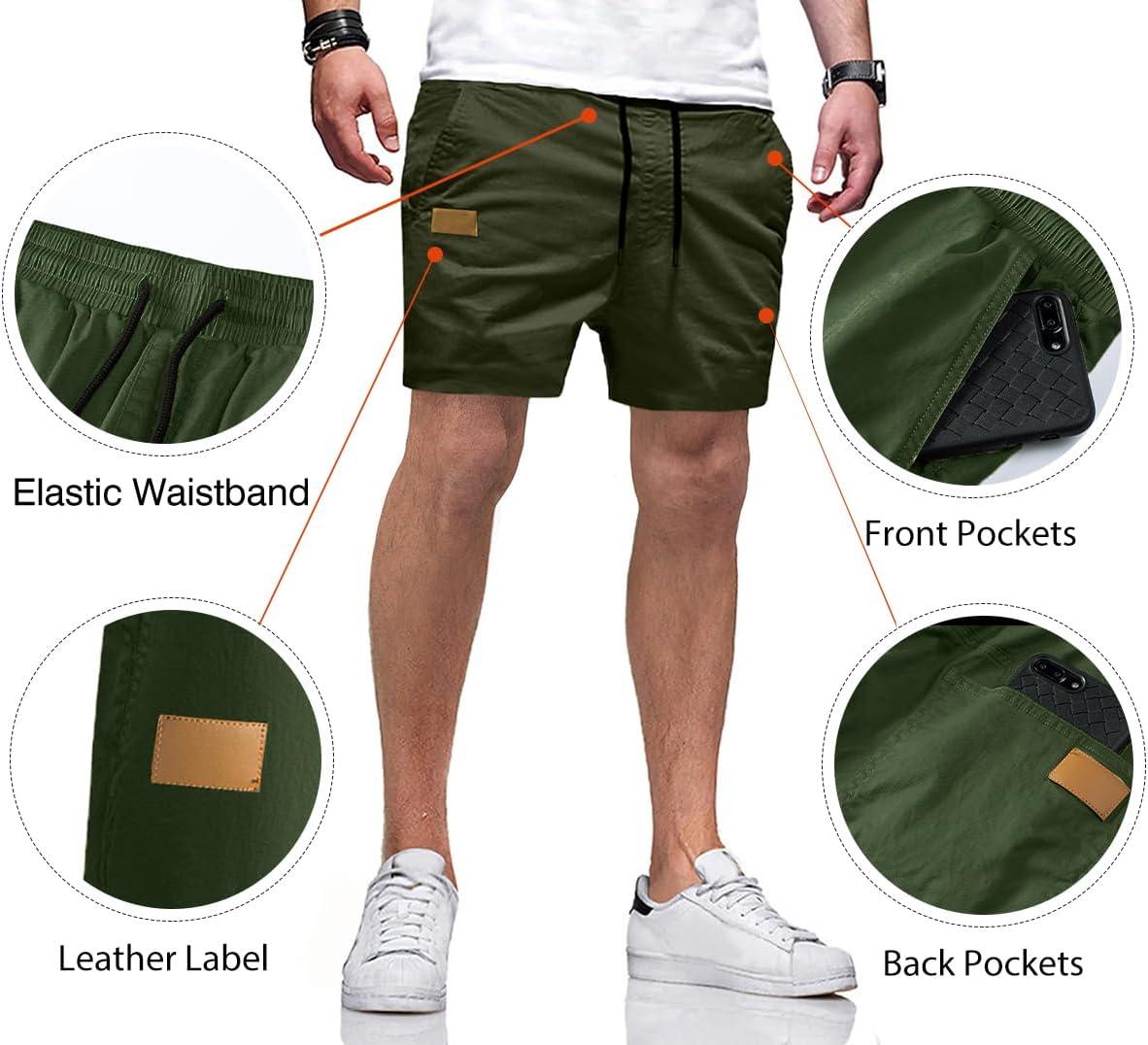 JMIERR Mens Casual Shorts – Cotton Drawstring Summer Beach Stretch Twill Chino Golf Shorts with Pockets(A3 Dark Green)