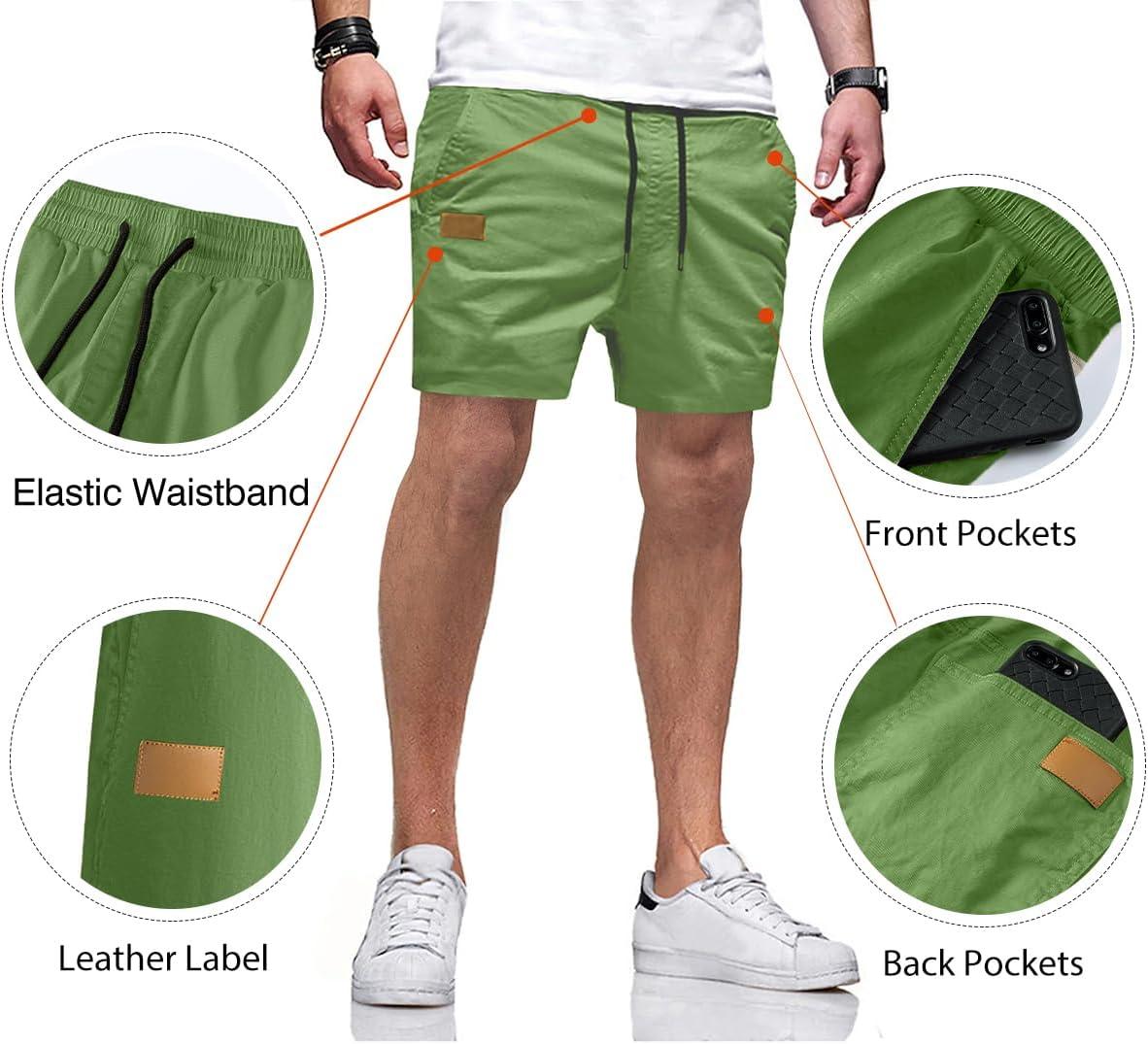 JMIERR Mens Casual Shorts – Cotton Drawstring Summer Beach Stretch Twill Chino Golf Shorts with Pockets(A3 Light Green)