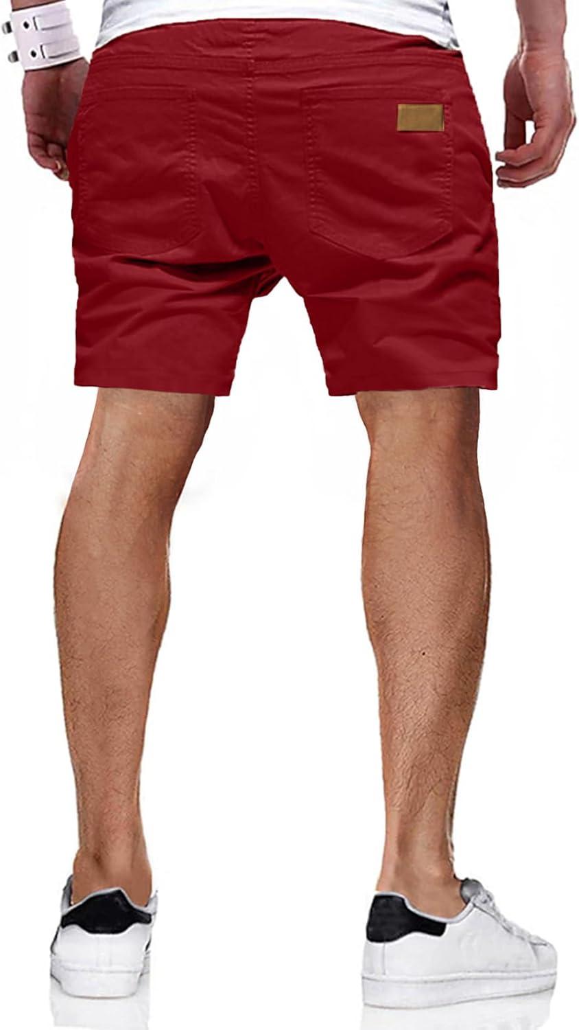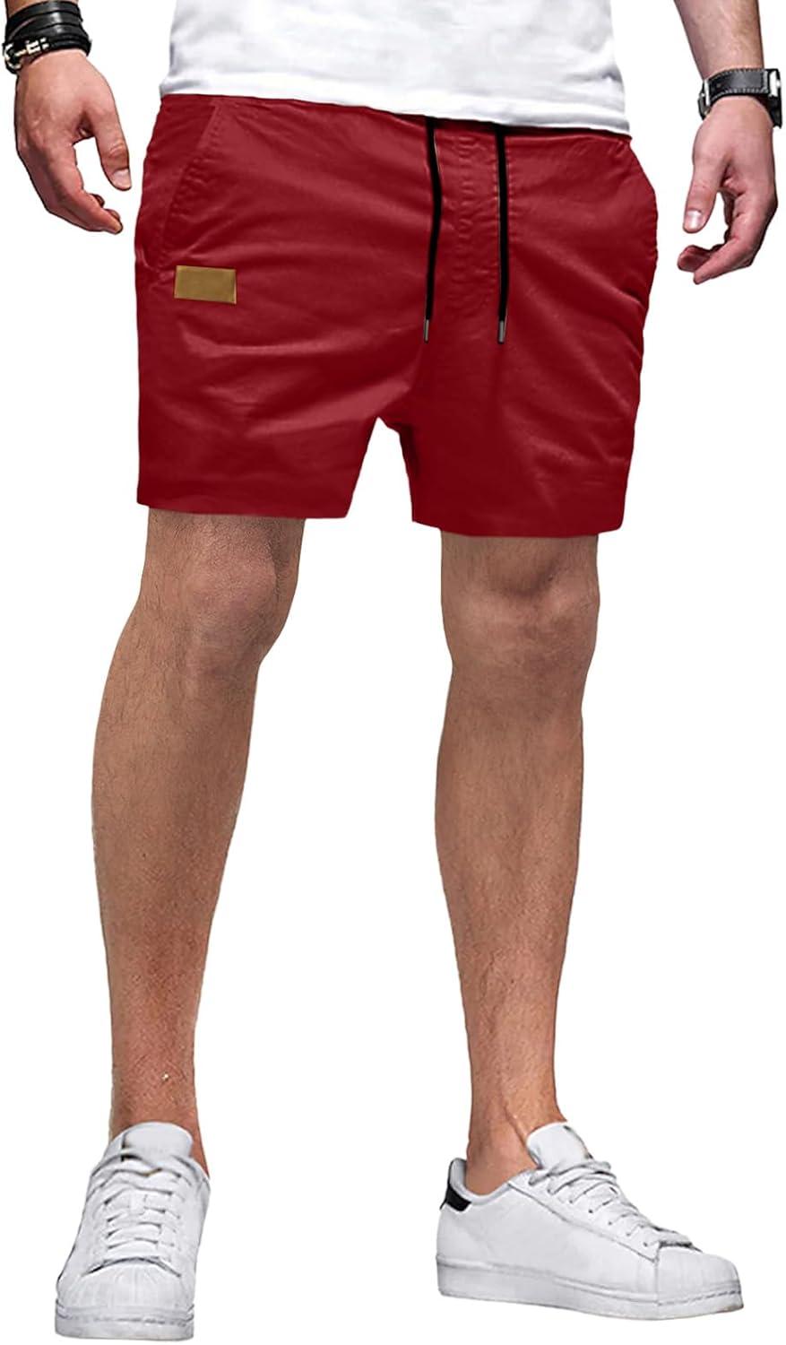 JMIERR Mens Casual Shorts – Cotton Drawstring Summer Beach Stretch Twill Chino Golf Shorts with Pockets(A4 Red)