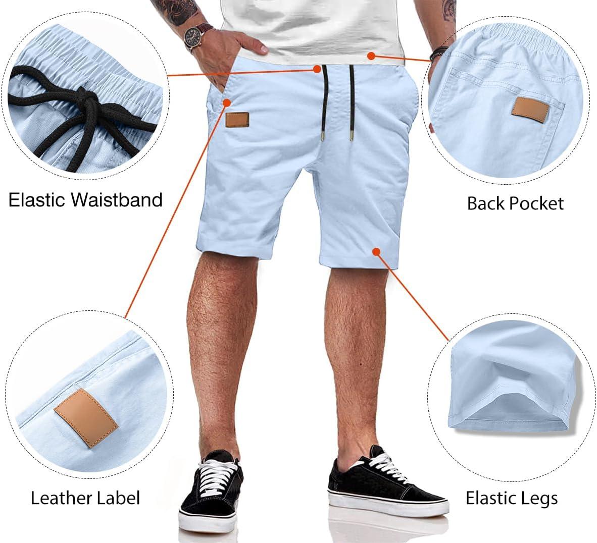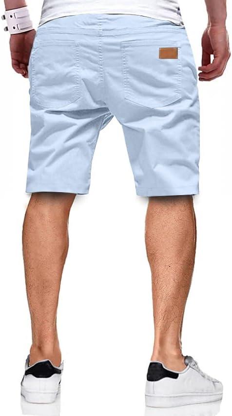 JMIERR Mens Casual Shorts – Cotton Drawstring Summer Beach Stretch Twill Chino Golf Shorts with Pockets(S Mist Blue)