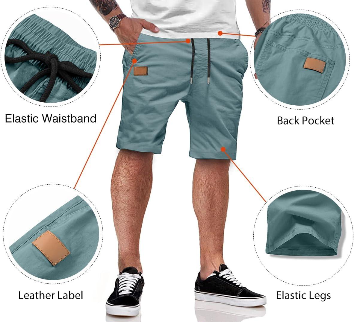 JMIERR Mens Casual Shorts – Cotton Drawstring Summer Beach Stretch Twill Chino Golf Shorts with Pockets(S Teal)