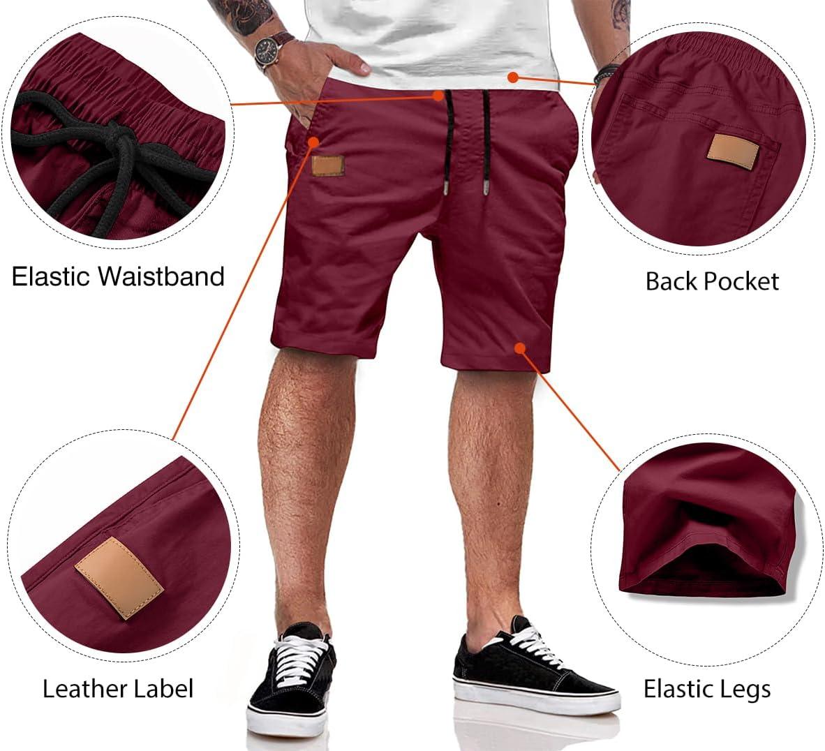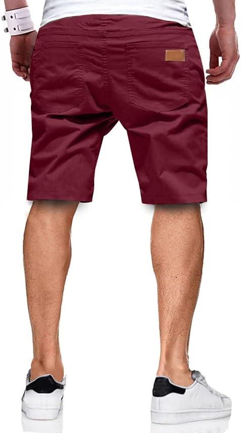 JMIERR Mens Casual Shorts – Cotton Drawstring Summer Beach Stretch Twill Chino Golf Shorts(S Red Dahlia)