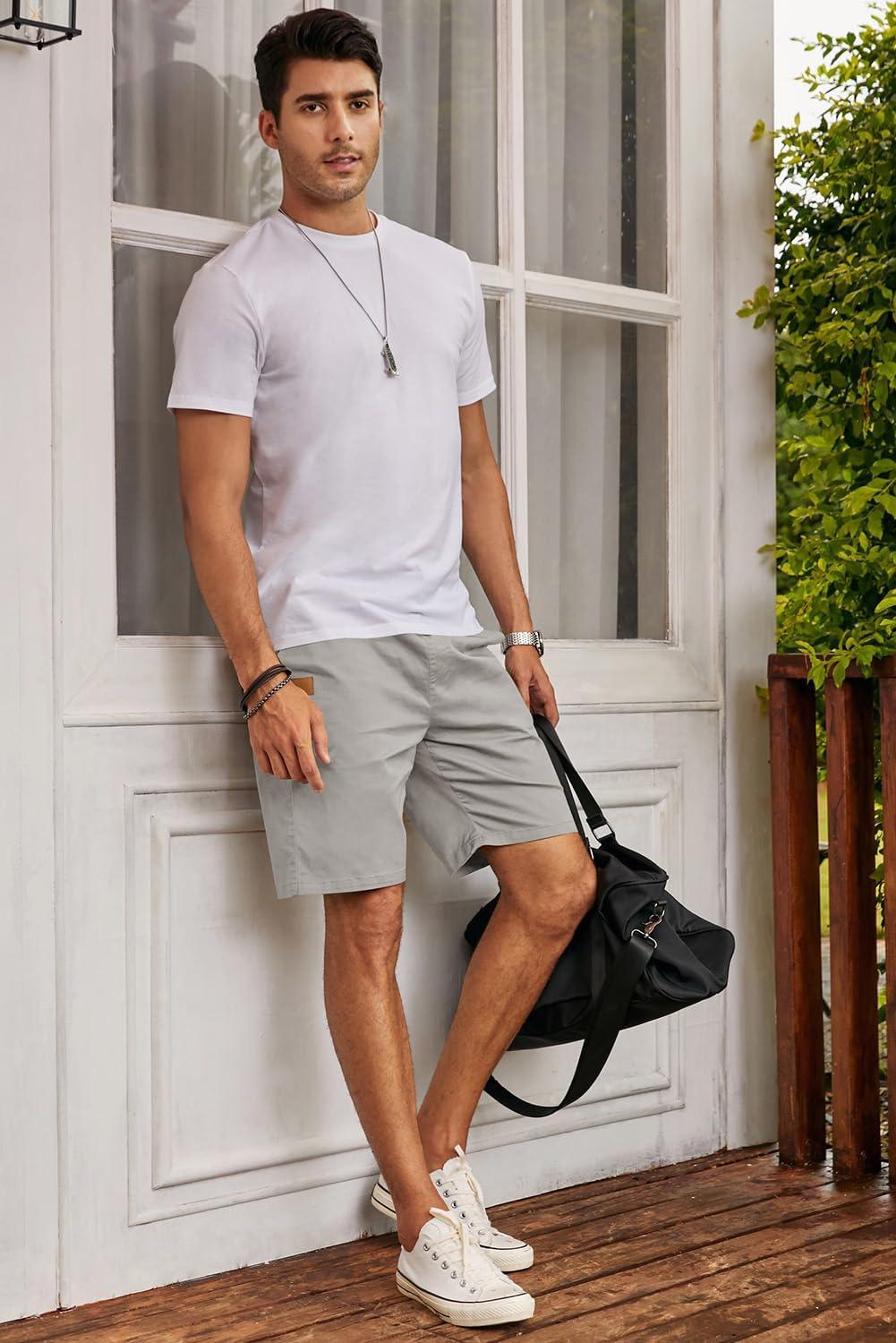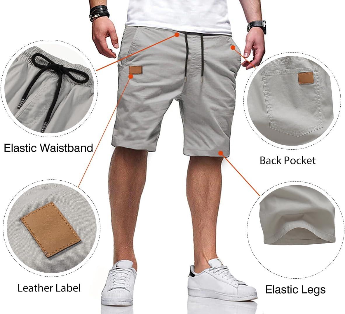 JMIERR Mens Casual Shorts – Cotton Drawstring Summer Beach Stretch Twill Chino Golf Shorts(S1 Grey)