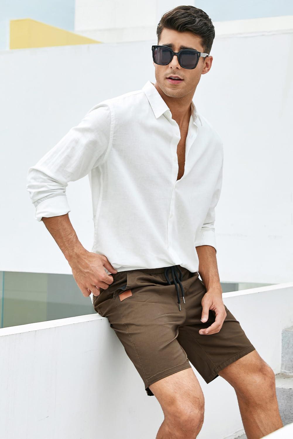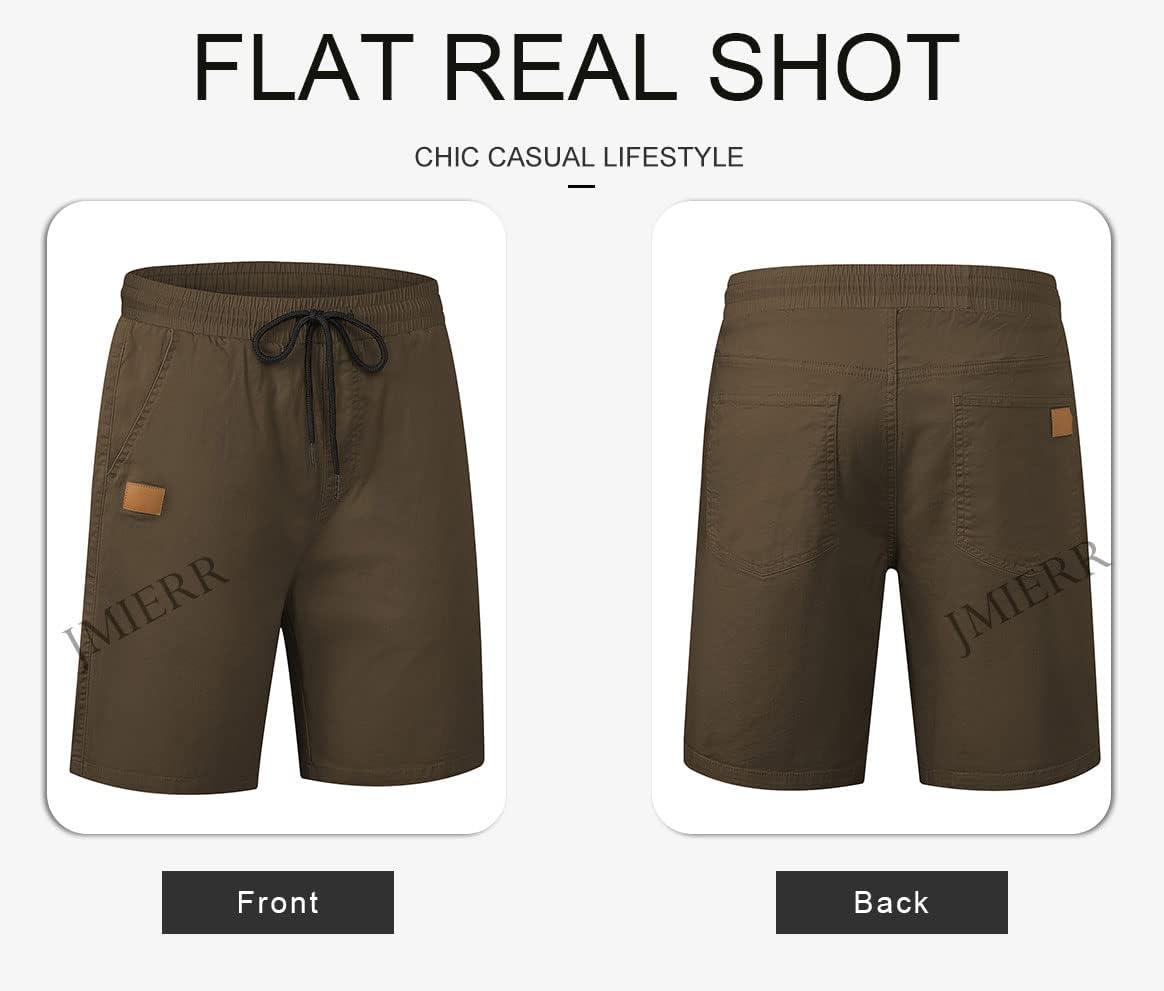 JMIERR Mens Casual Shorts – Cotton Drawstring Summer Beach Stretch Twill Chino Golf Shorts(S2 Brown)