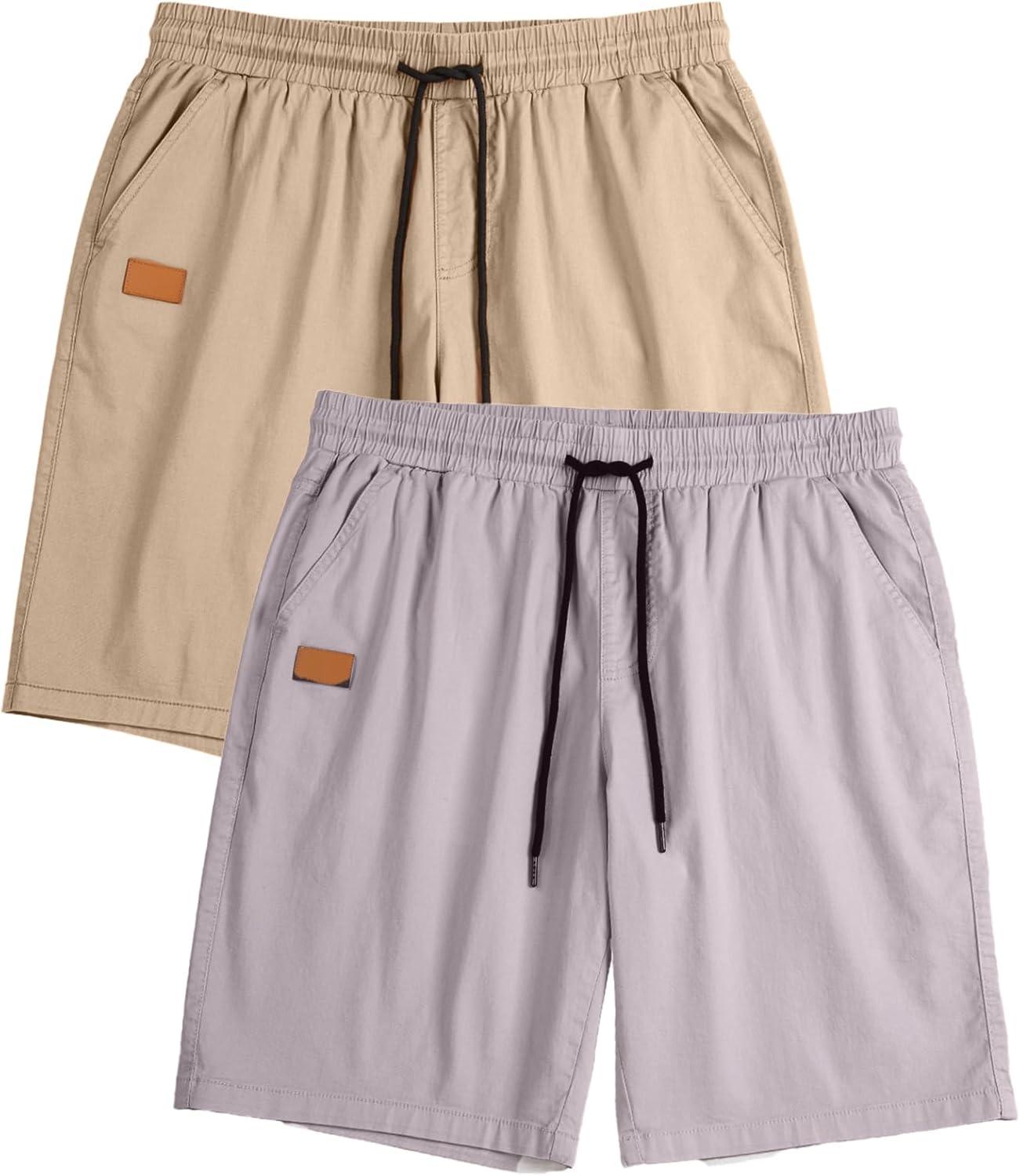 JMIERR Mens Casual Shorts – Cotton Drawstring Summer Beach Stretch Twill Chino Golf Shorts(Z 2 Pack Apricot Light Grey)