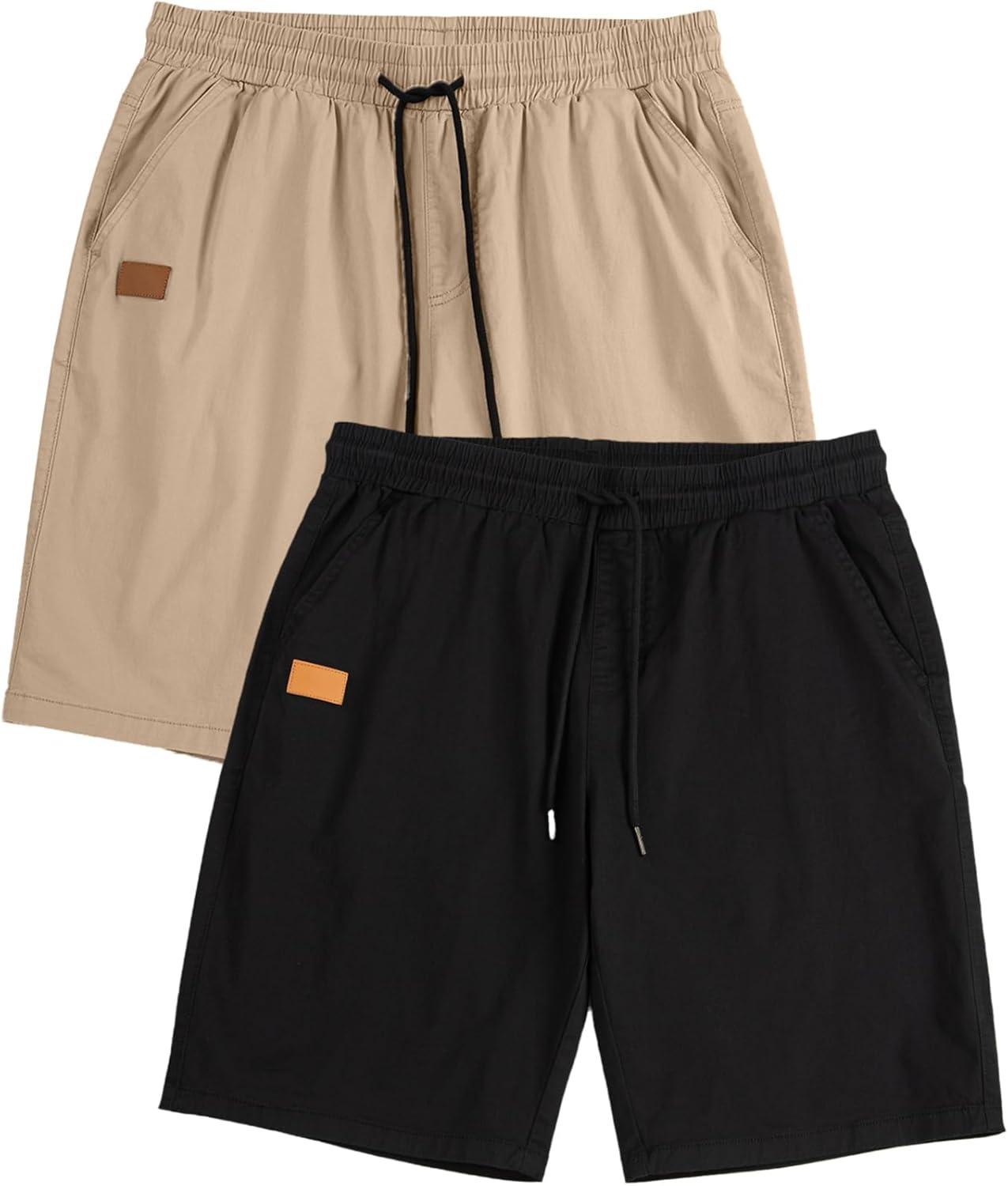 JMIERR Mens Casual Shorts – Cotton Drawstring Summer Beach Stretch Twill Chino Golf Shorts(Z 2 Pack Black Apricot)