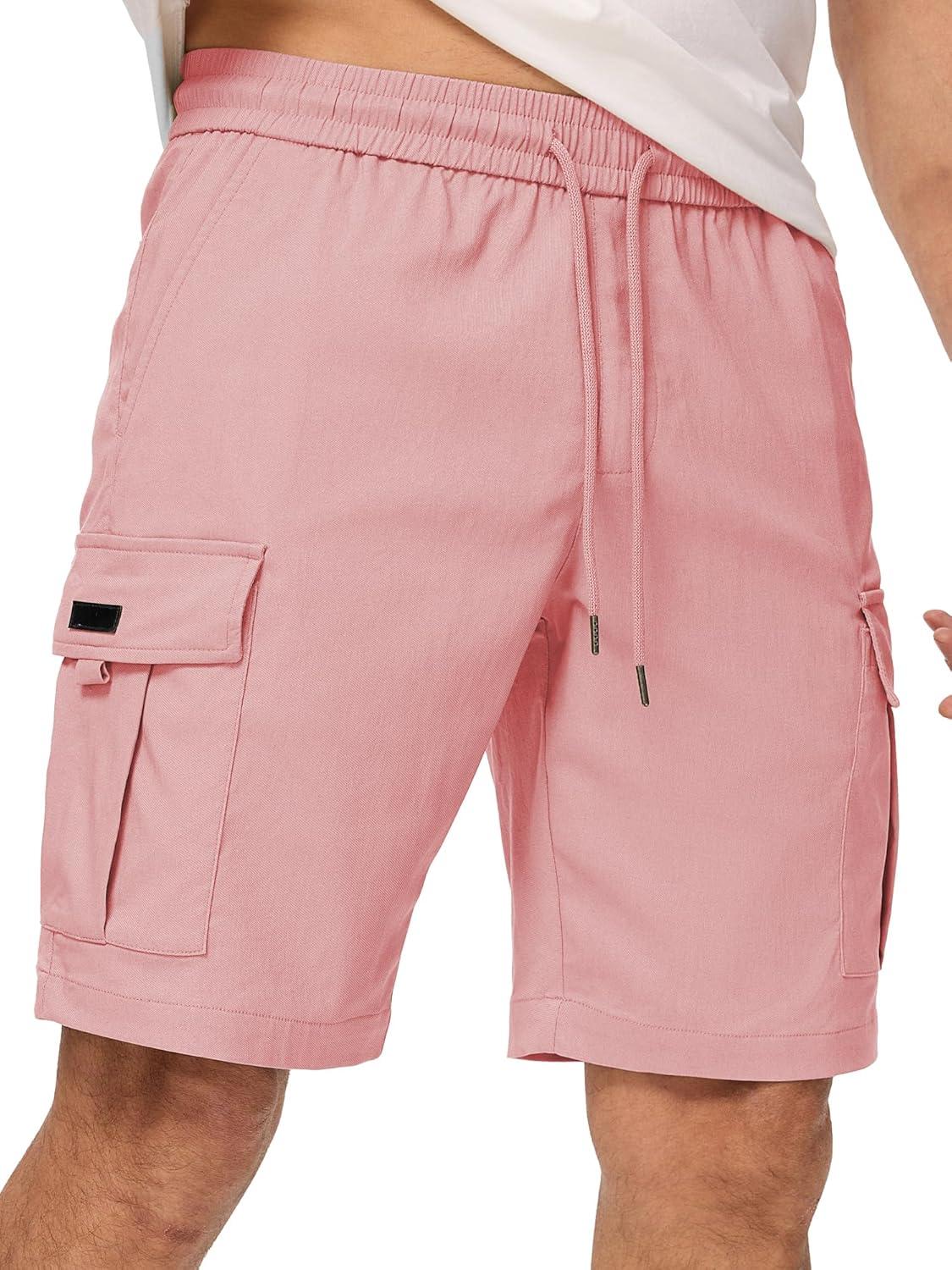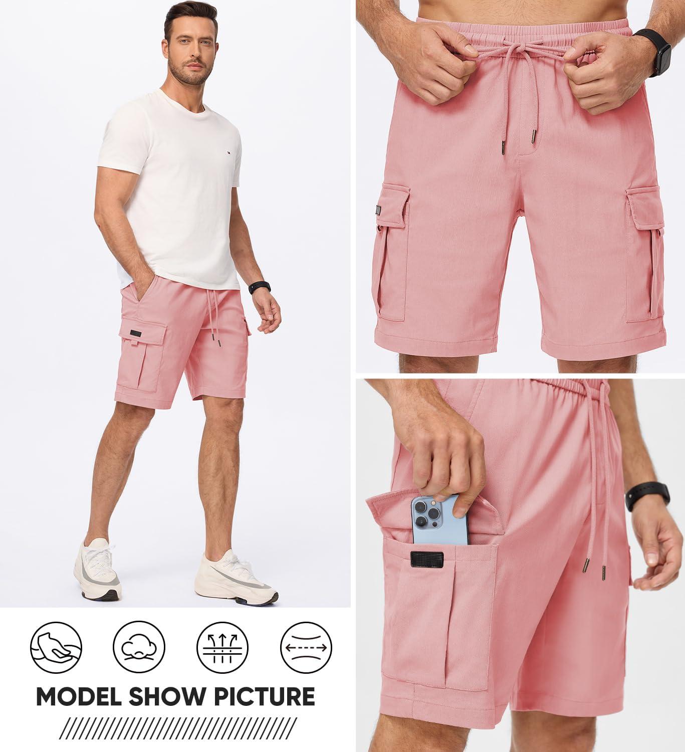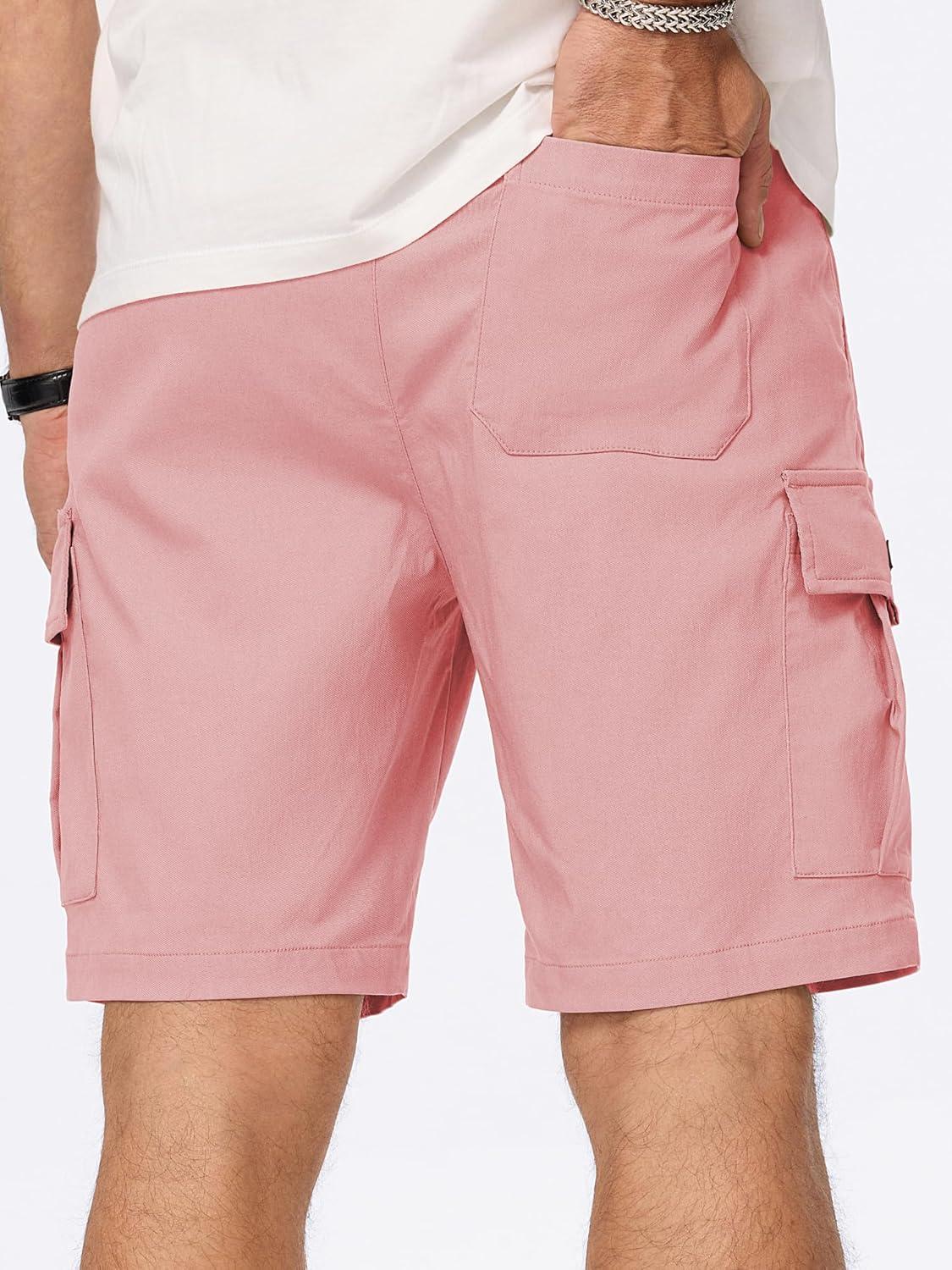 JMIERR Men’s Casual Stretch Cargo Shorts Classic Drawstring Elastic Waist Summer Work Short with Multi Pockets(Pink)