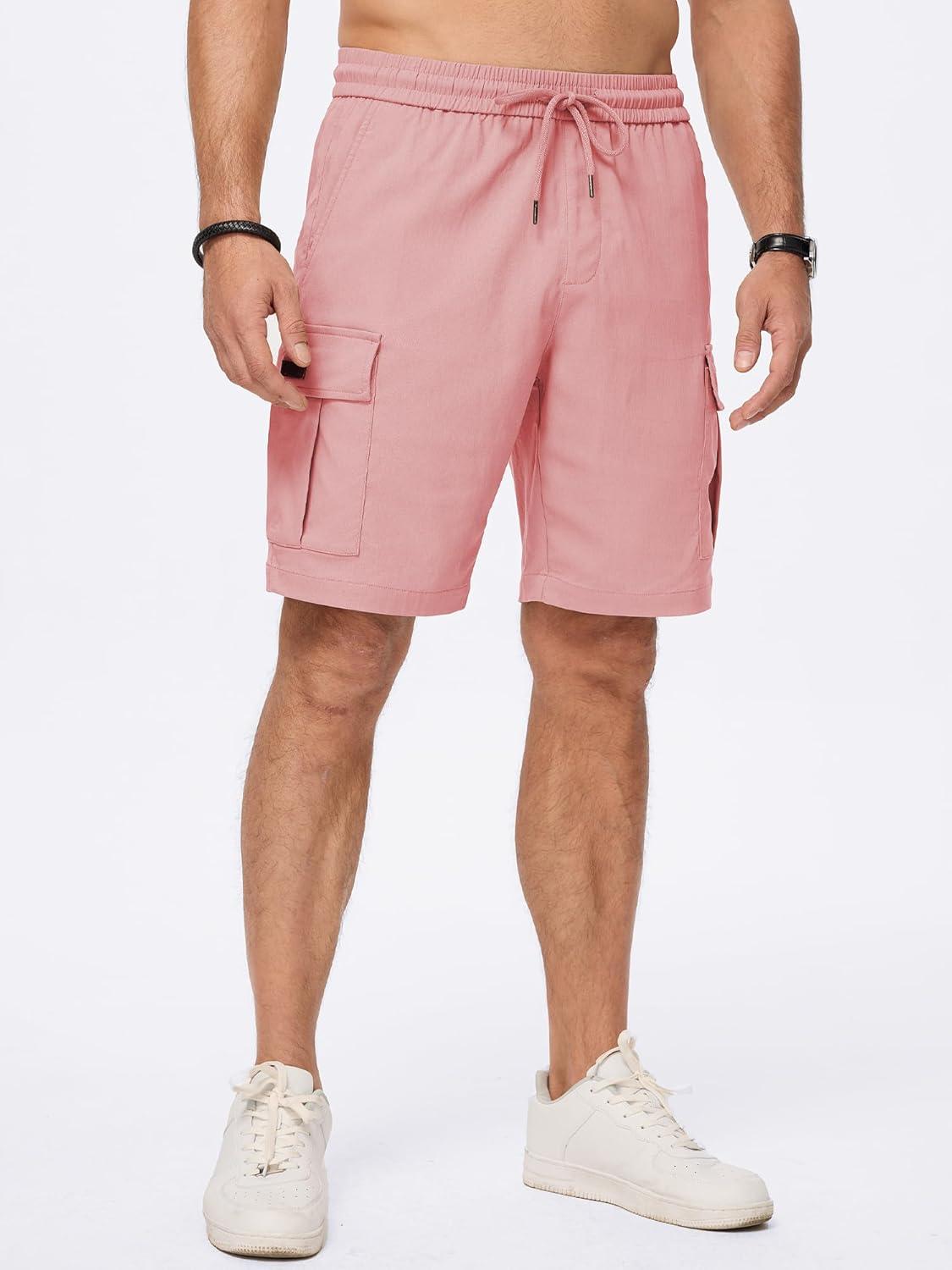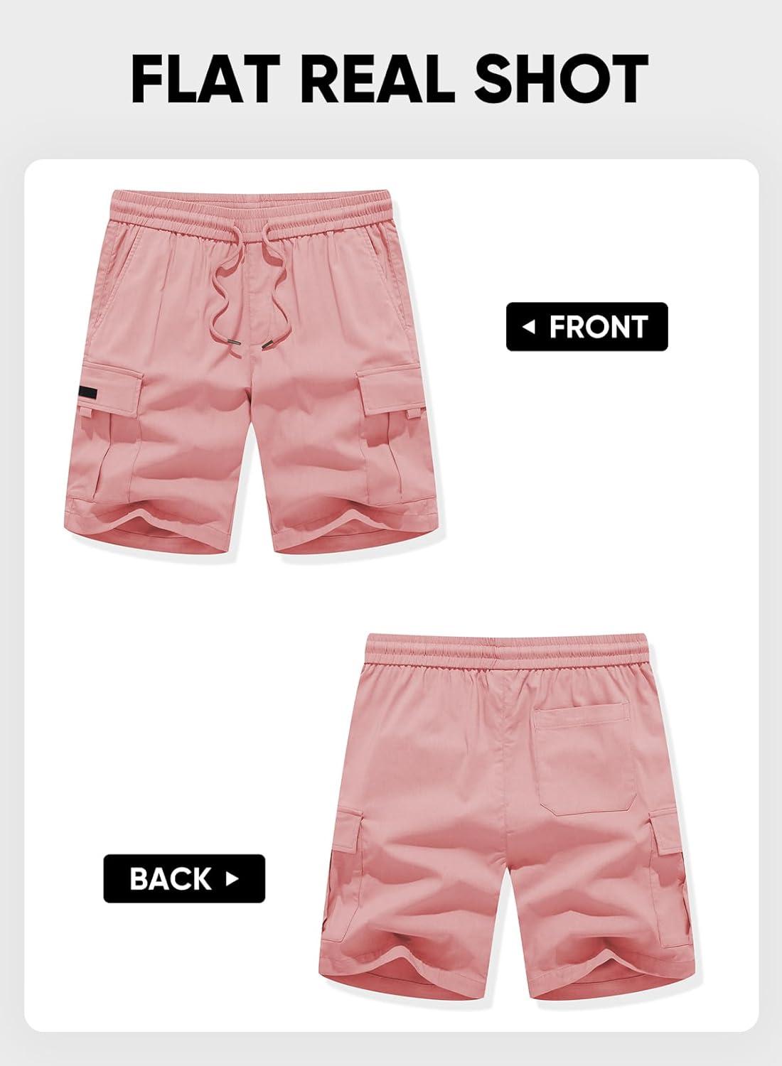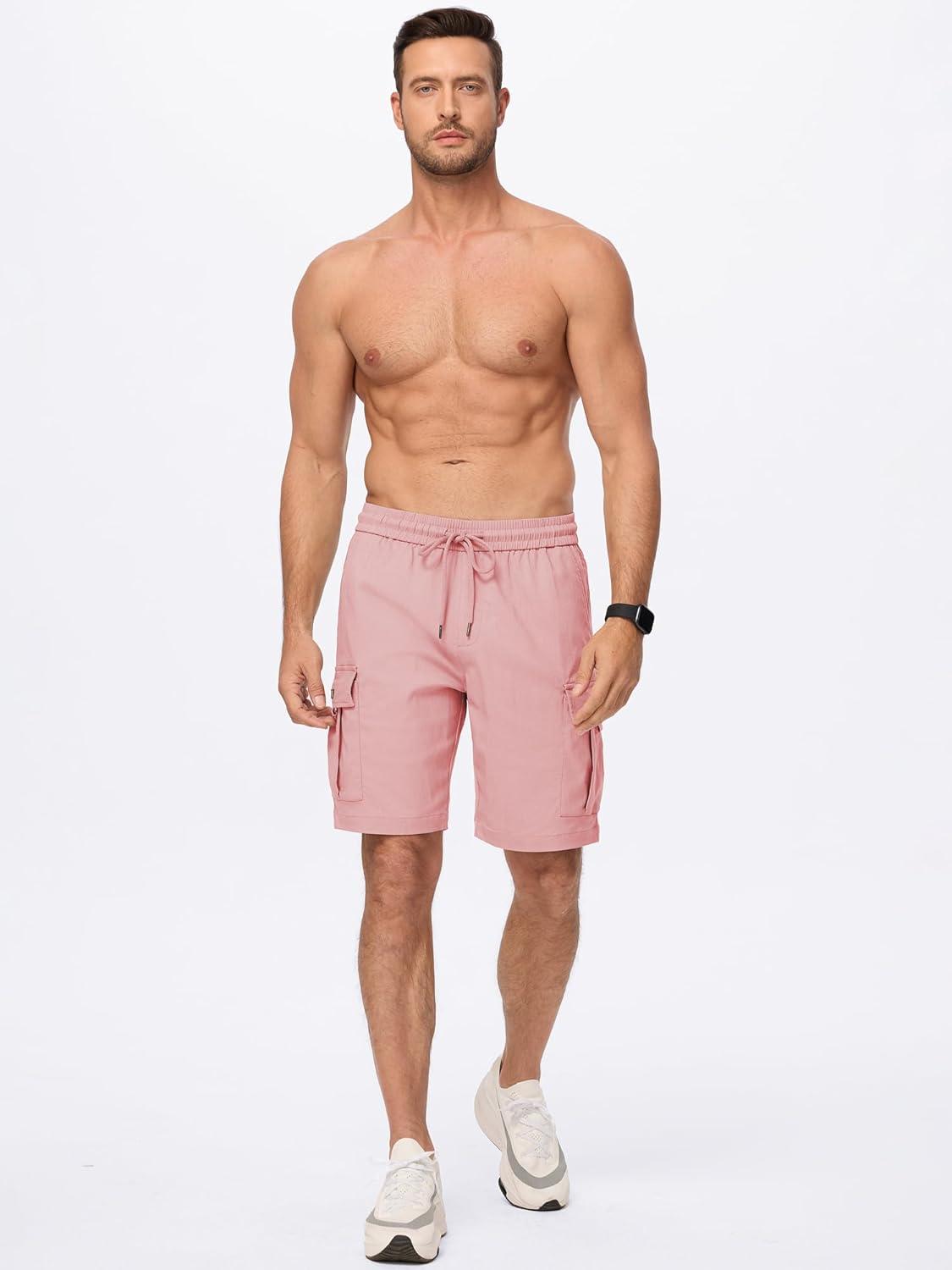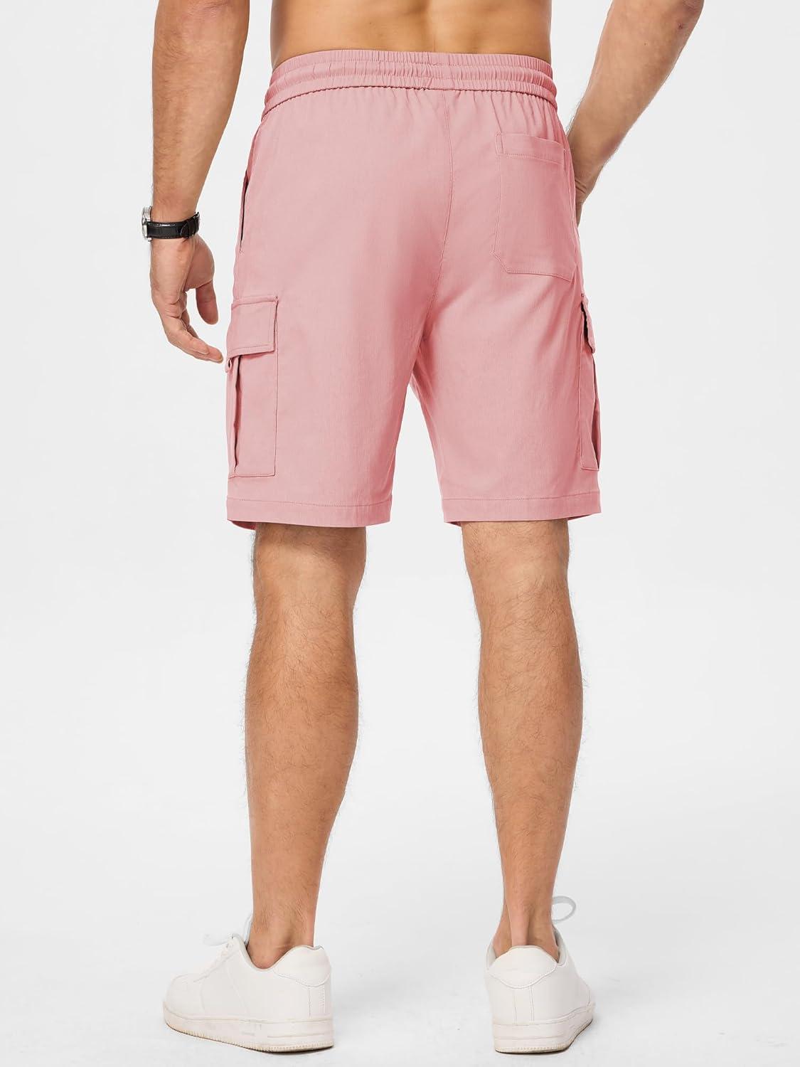 JMIERR Men’s Casual Stretch Cargo Shorts Classic Drawstring Elastic Waist Summer Work Short with Multi Pockets(Pink)