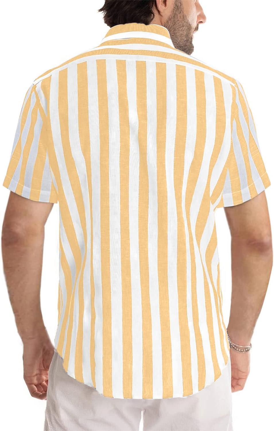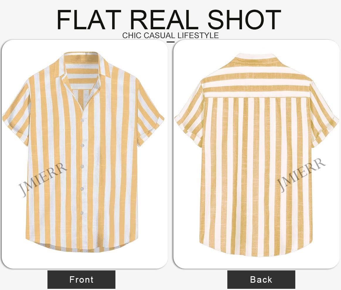 JMIERR Men’s Casual Stylish Short Sleeve Button-Up Striped Dress Shirt Cotton Beach Shirts(A1 Yellow)