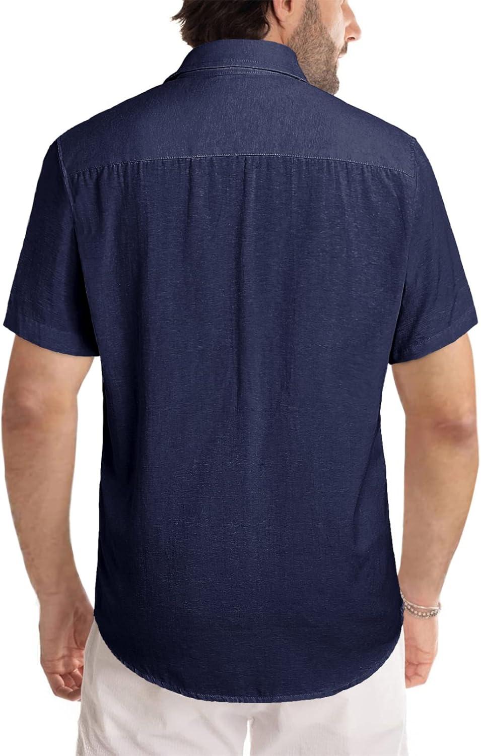 JMIERR Men’s Casual Stylish Short Sleeve Button-Up Striped Dress Shirt Cotton Beach Shirts(Dark Blue)