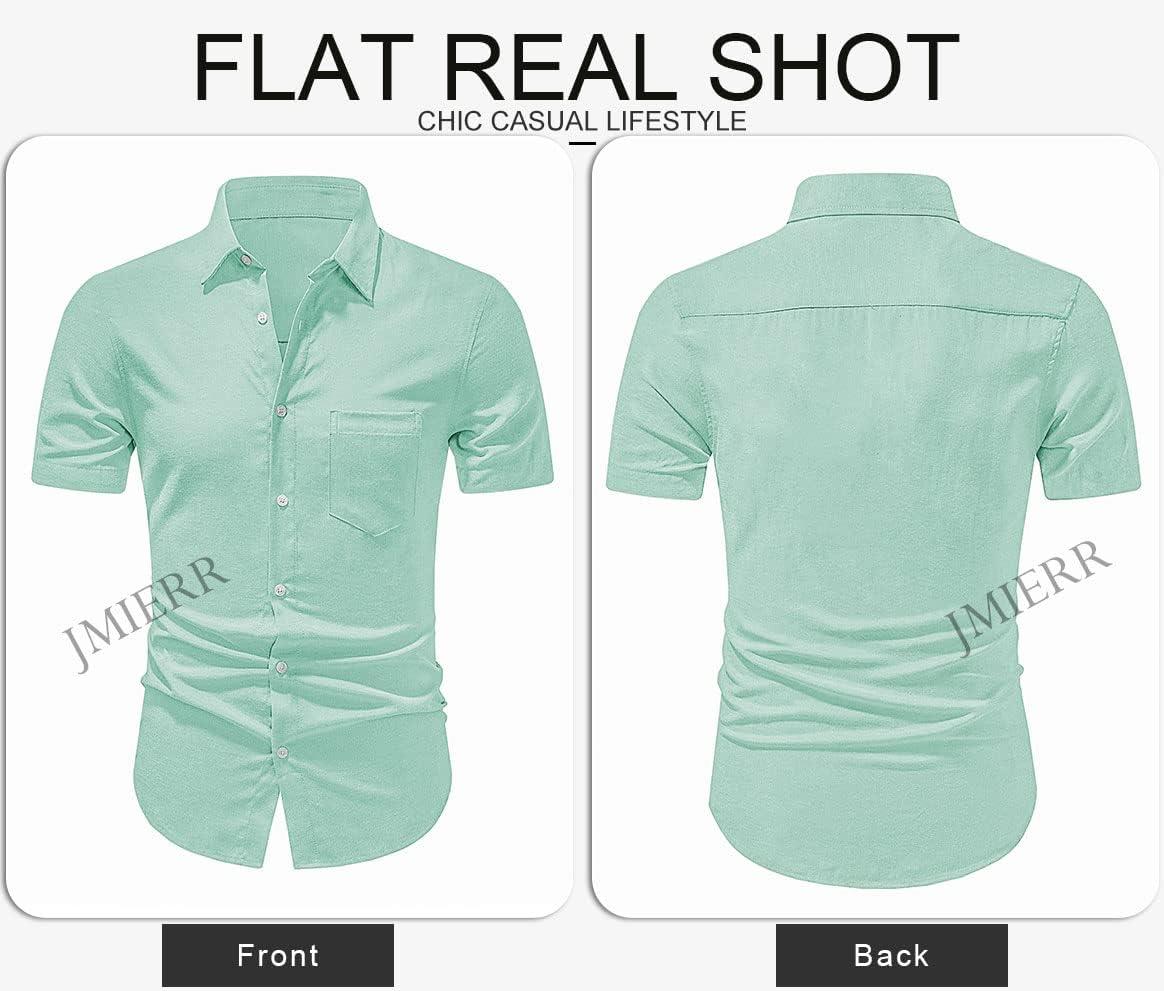 JMIERR Men’s Casual Stylish Short Sleeve Button-Up Striped Dress Shirt Cotton Beach Shirts(Mint Green)