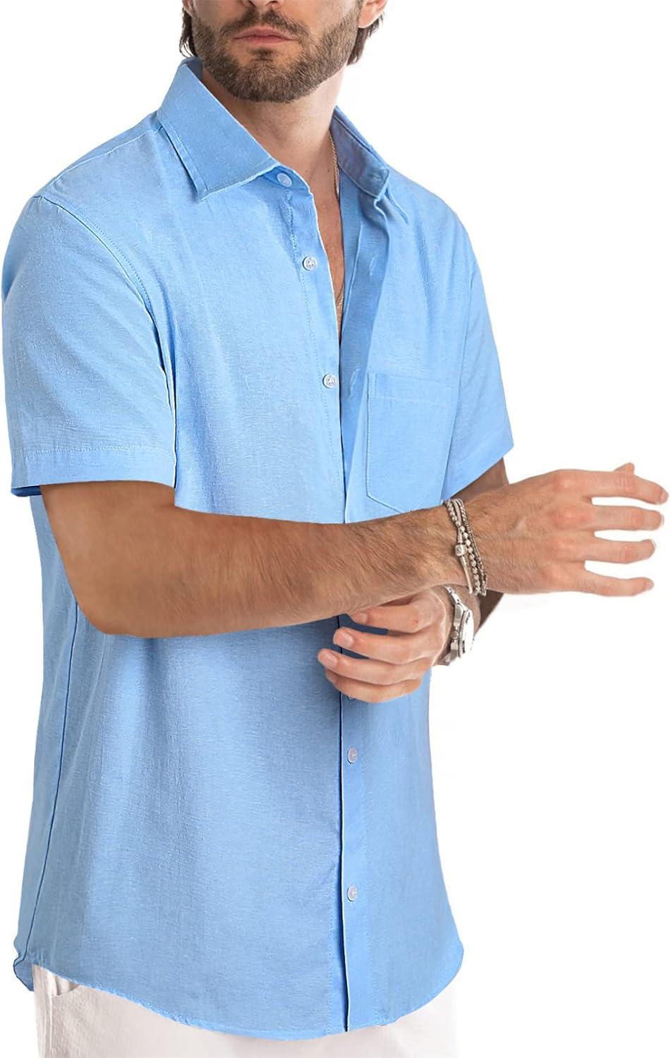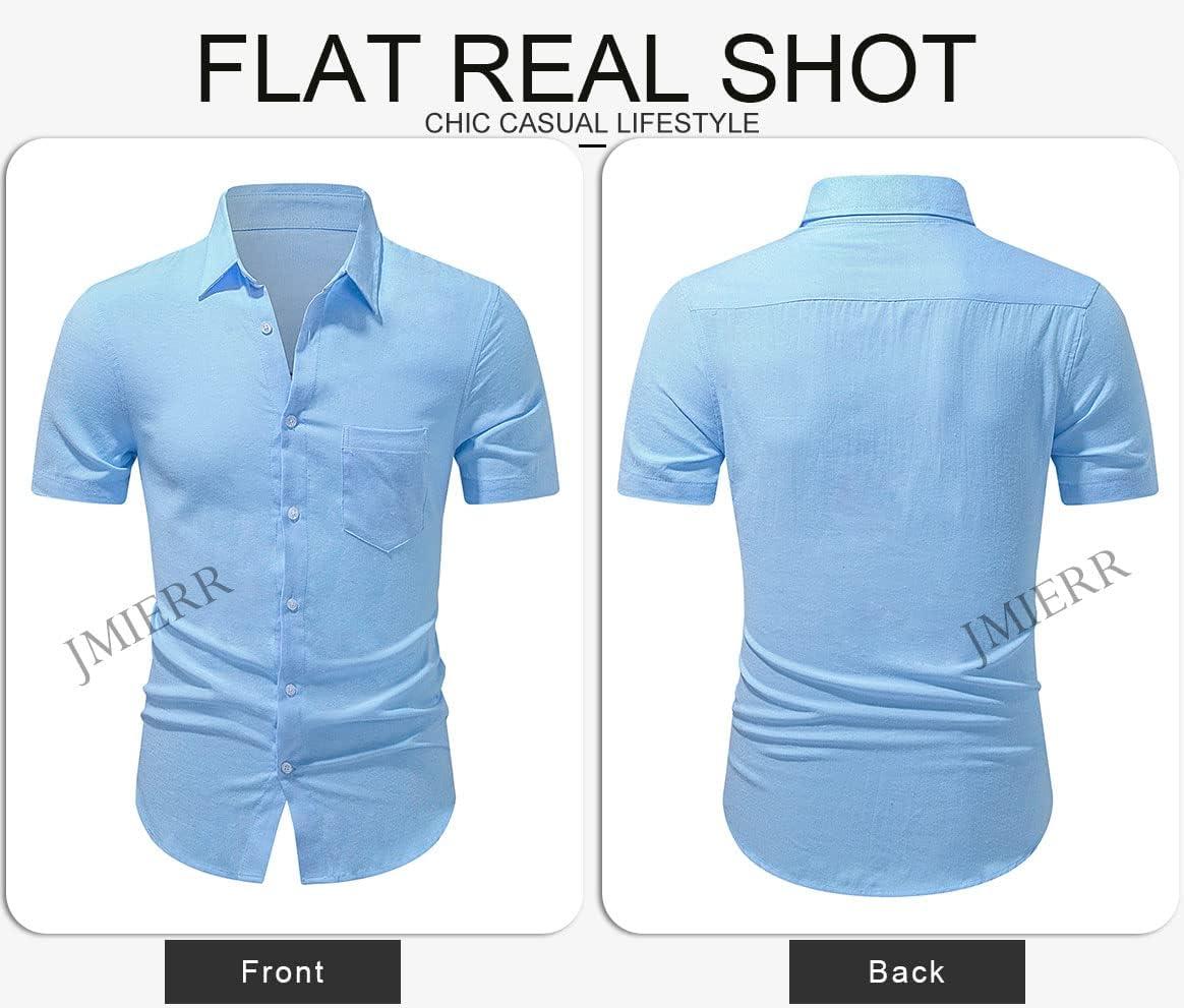 JMIERR Men’s Casual Stylish Short Sleeve Button-Up Striped Dress Shirt Cotton Beach Shirts(Sky Blue)