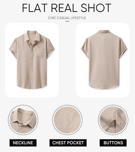 JMIERR Men’s Casual Stylish Short Sleeve Button-Up Striped Dress Shirt Cotton Beach Shirts(Z Parchment)