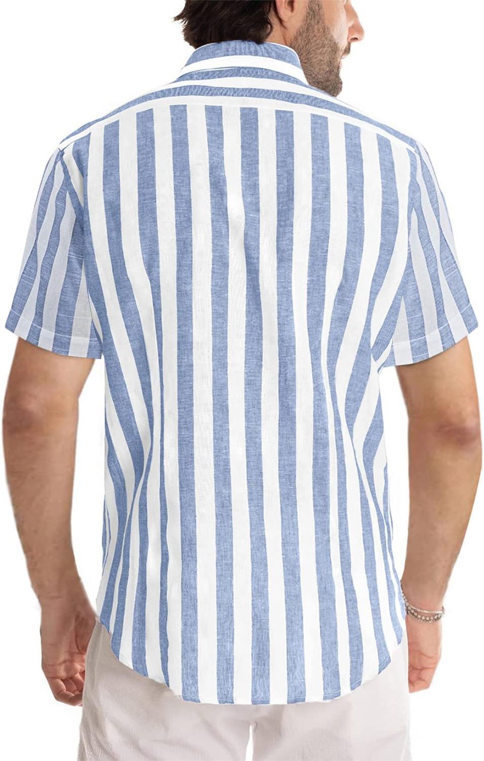 JMIERR Men’s Casual Stylish Short Sleeve Button-Up Striped Dress Shirts Cotton Beach Shirt(1 Sky Blue Stripe)