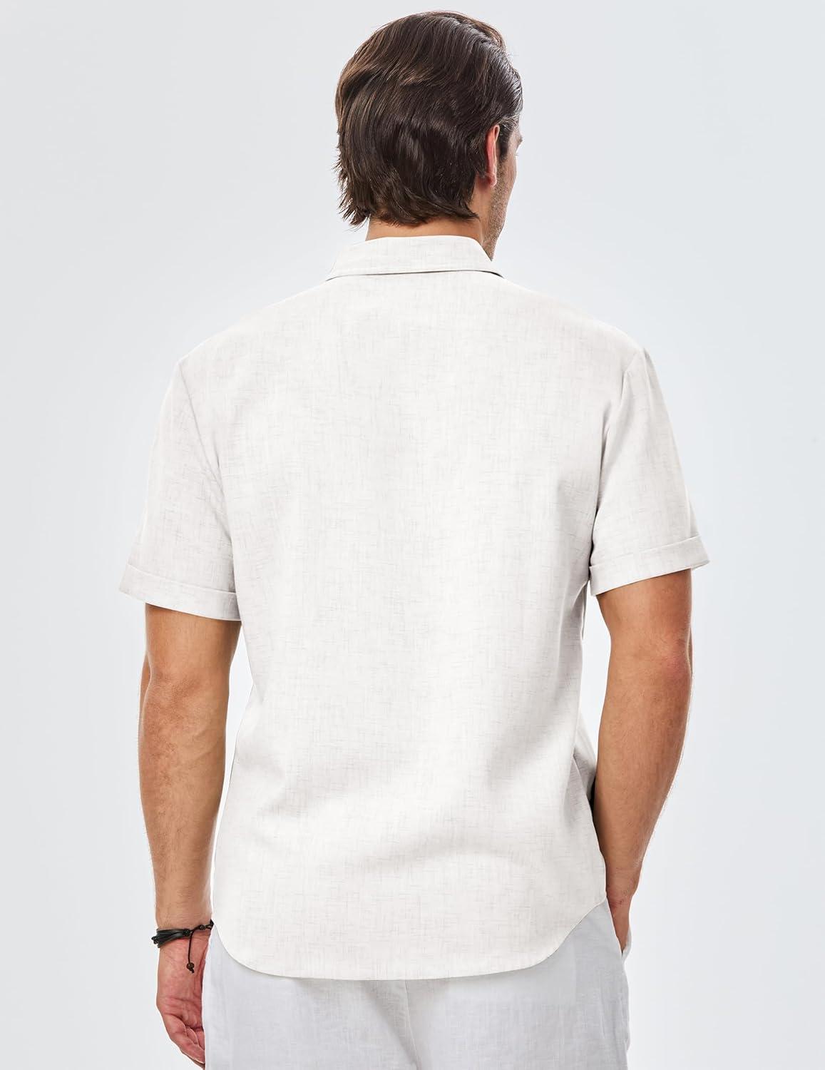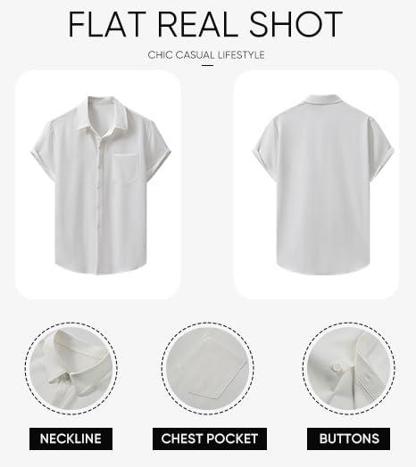 JMIERR Men’s Casual Stylish Short Sleeve Button-Up Striped Dress Shirts Cotton Beach Shirt(Z White)