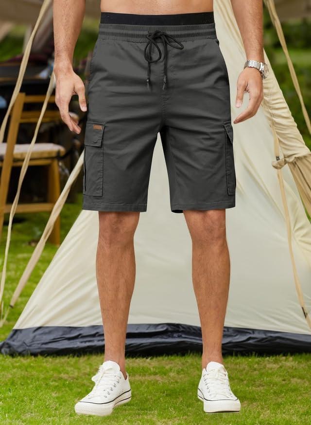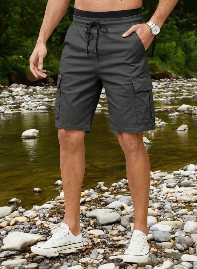 JMIERR Mens Casual Twill Cargo Shorts Cotton Drawstring Classic Cargo Stretch Short with 6 Pockets(Grey)
