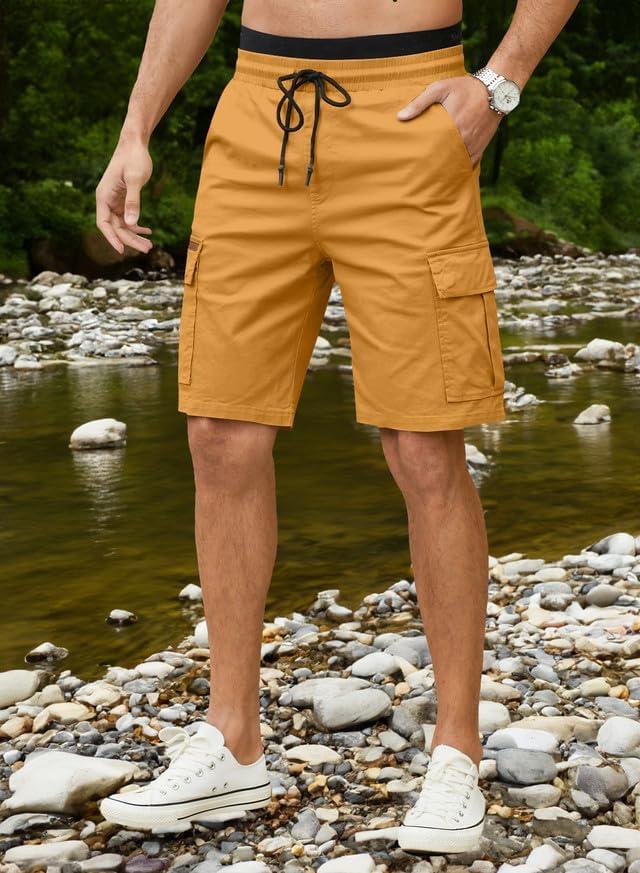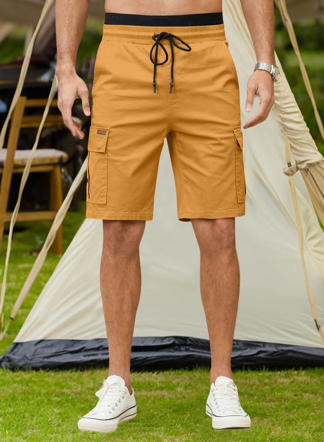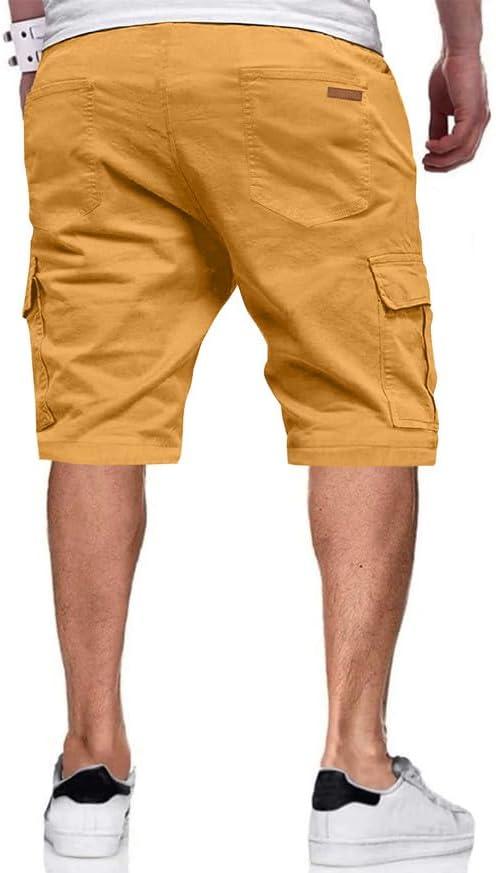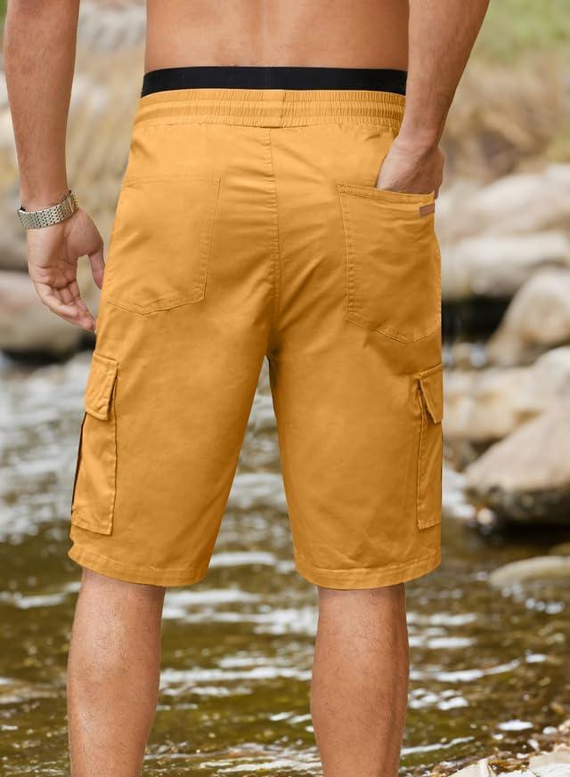 JMIERR Mens Casual Twill Cargo Shorts Cotton Drawstring Classic Cargo Stretch Short with 6 Pockets(Yellow)