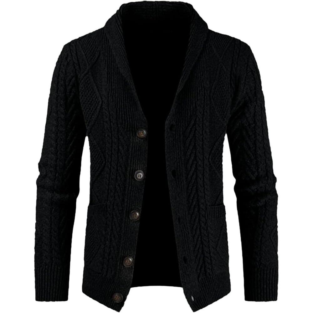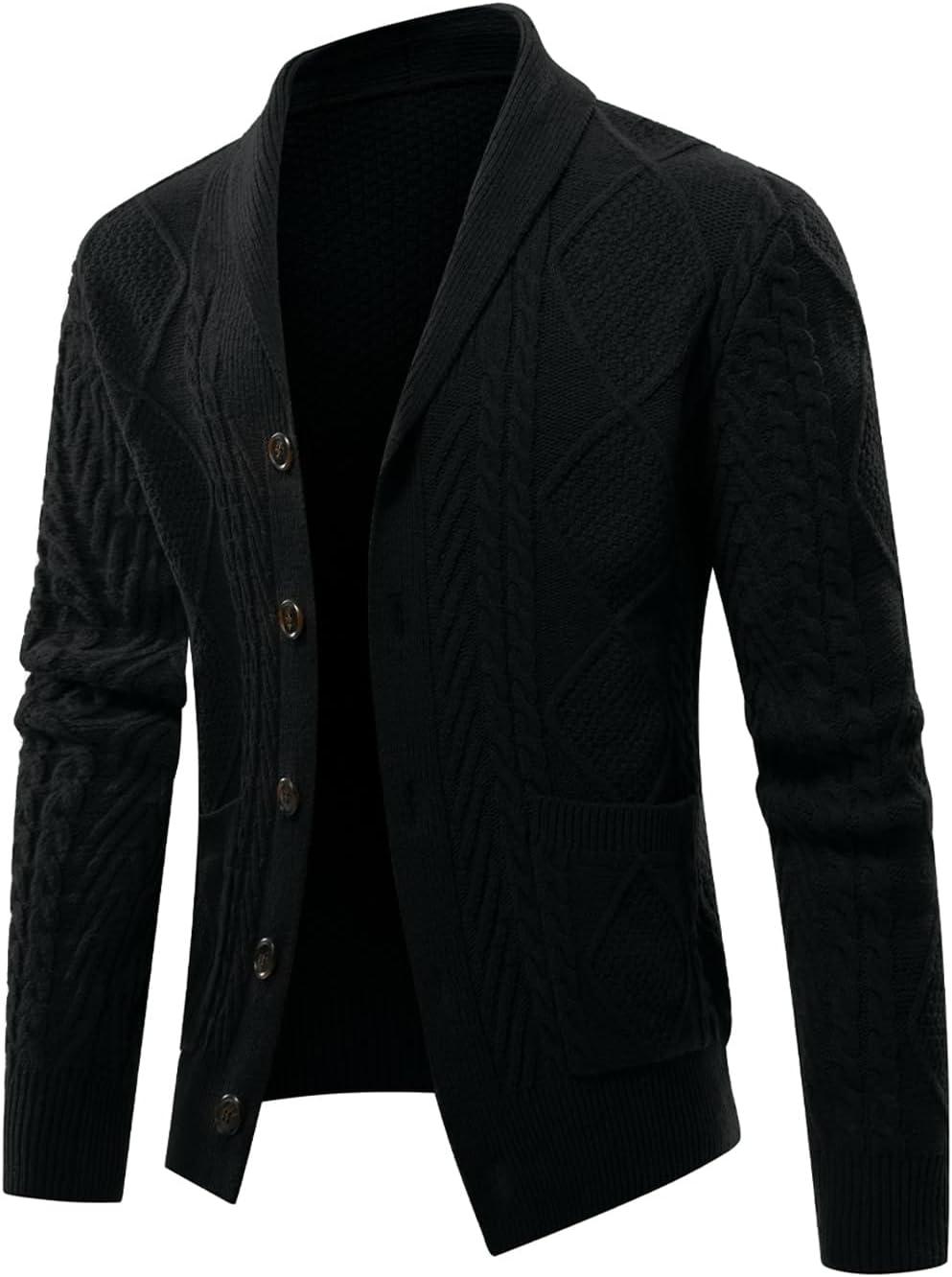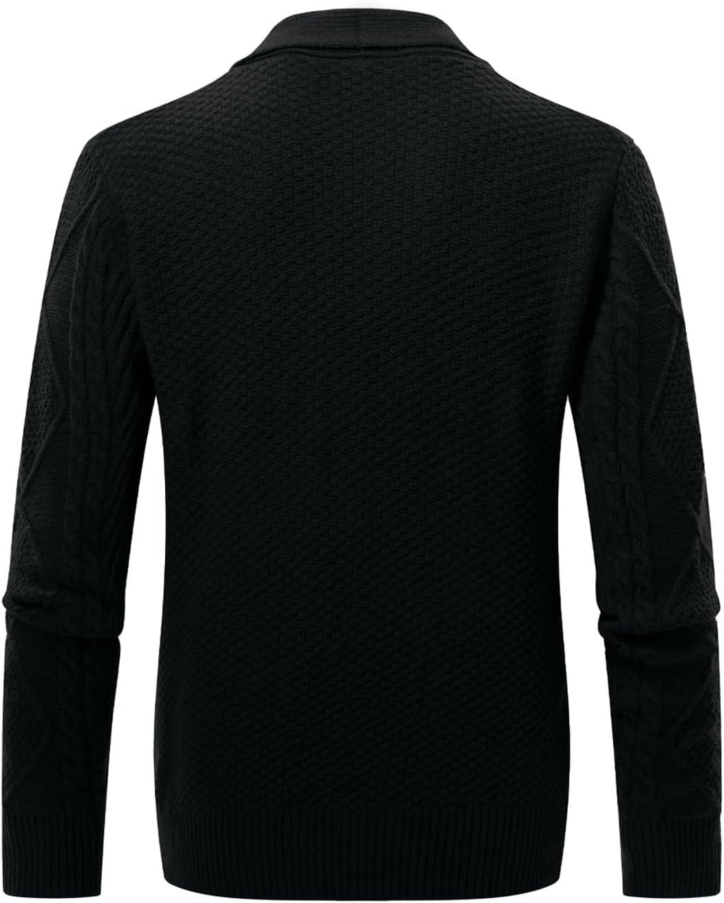 JMIERR Men’s Casual Wool Blend Cardigan Sweaters Long Sleeve Shawl Collar Buttons Down Cable Knit Sweater(1 Black)