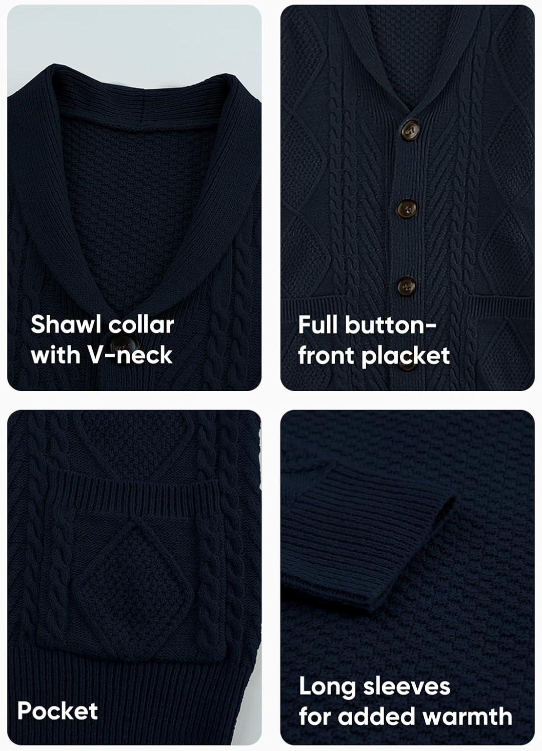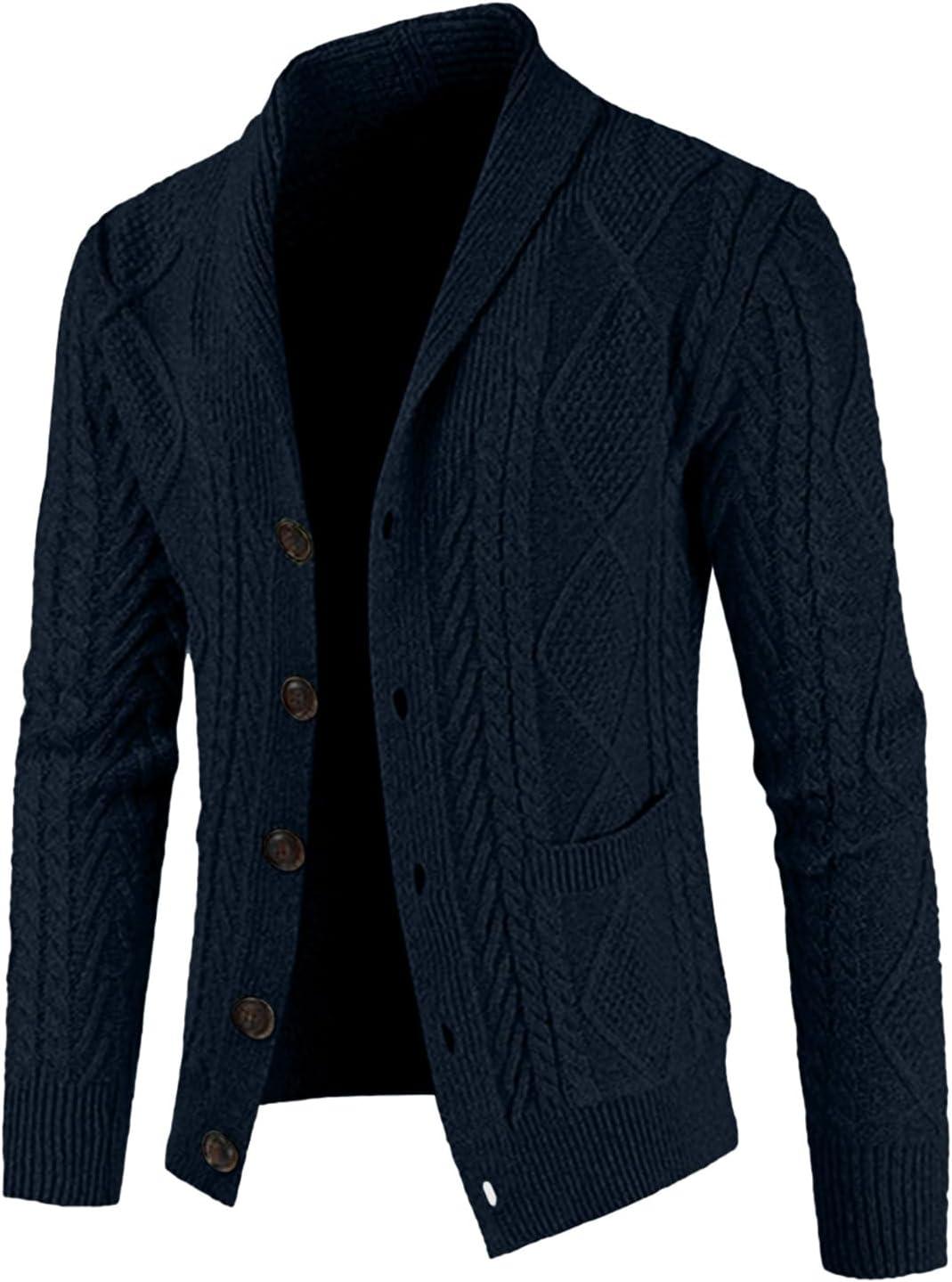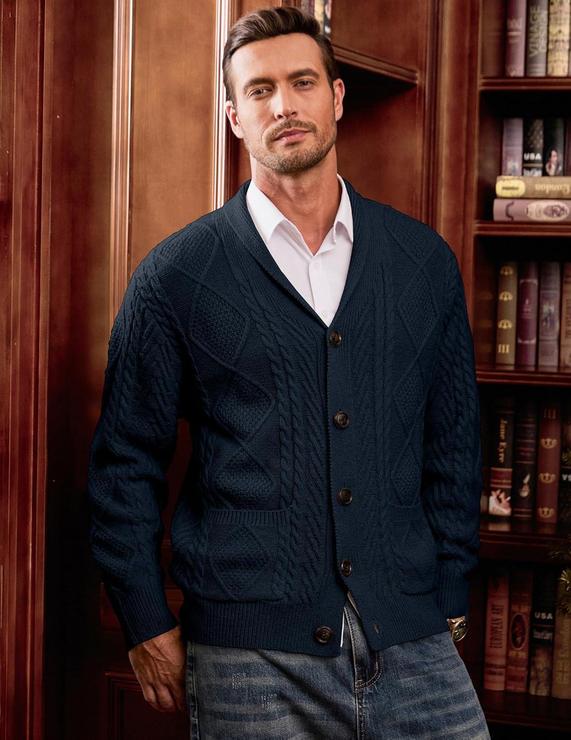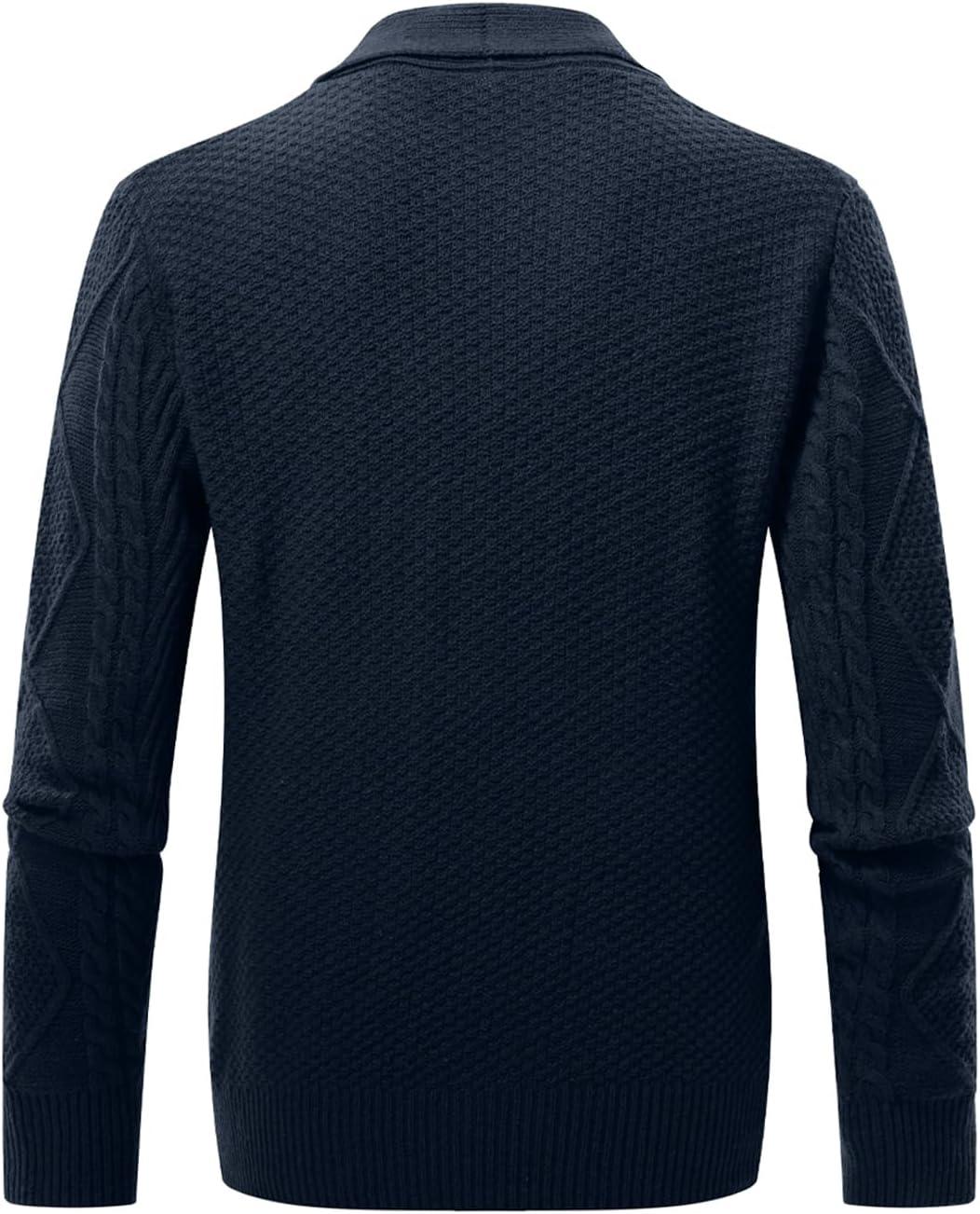 JMIERR Men’s Casual Wool Blend Cardigan Sweaters Long Sleeve Shawl Collar Buttons Down Cable Knit Sweater(3 Blue)