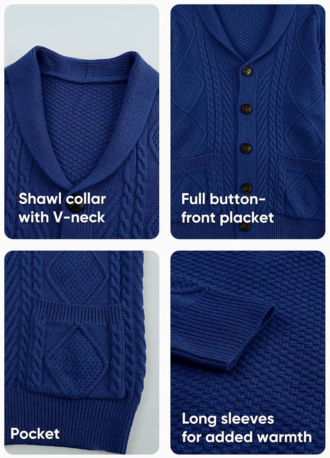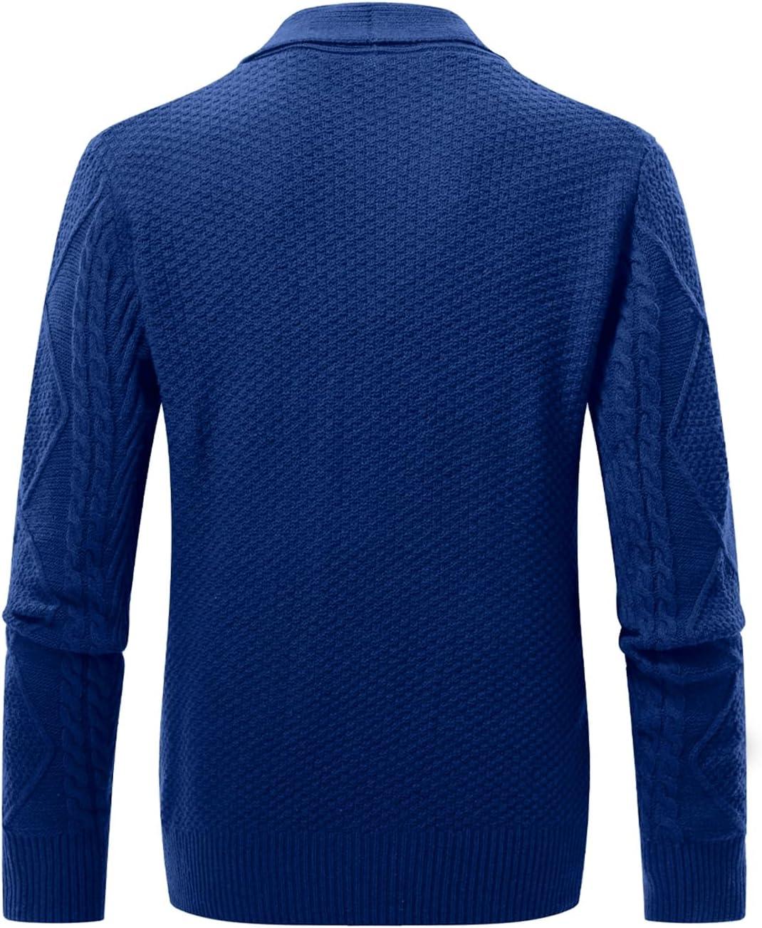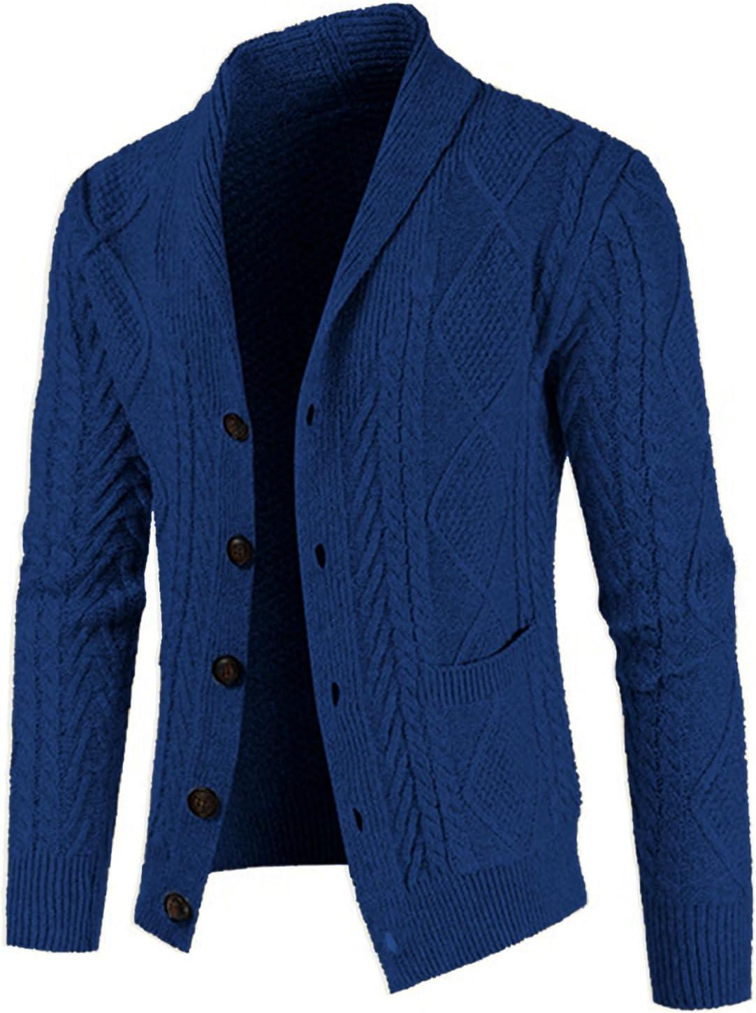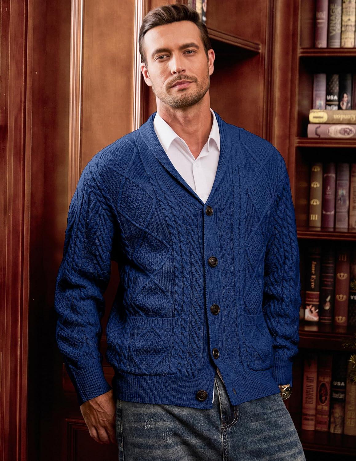 JMIERR Men’s Casual Wool Blend Cardigan Sweaters Long Sleeve Shawl Collar Buttons Down Cable Knit Sweater(D Blue)