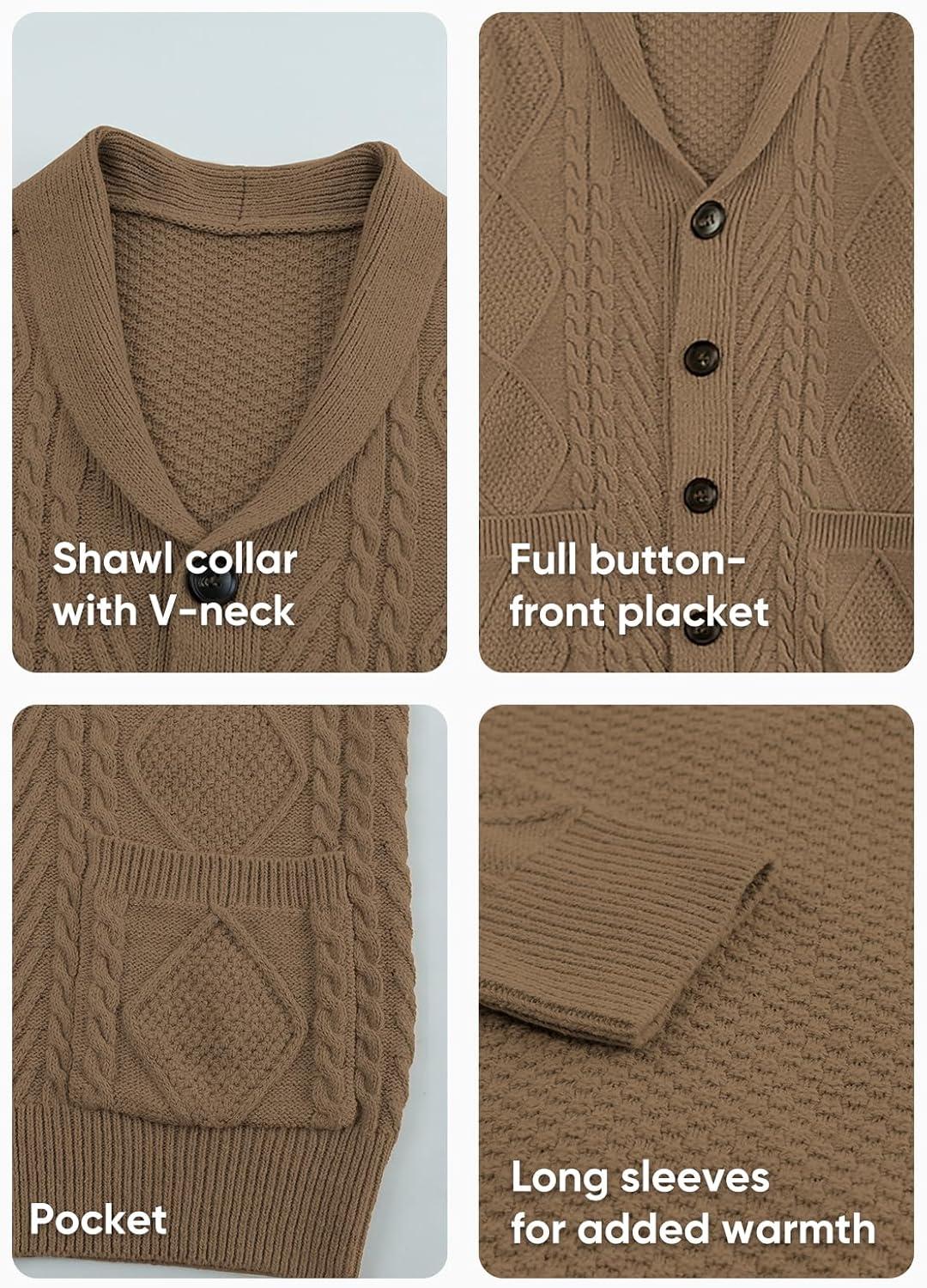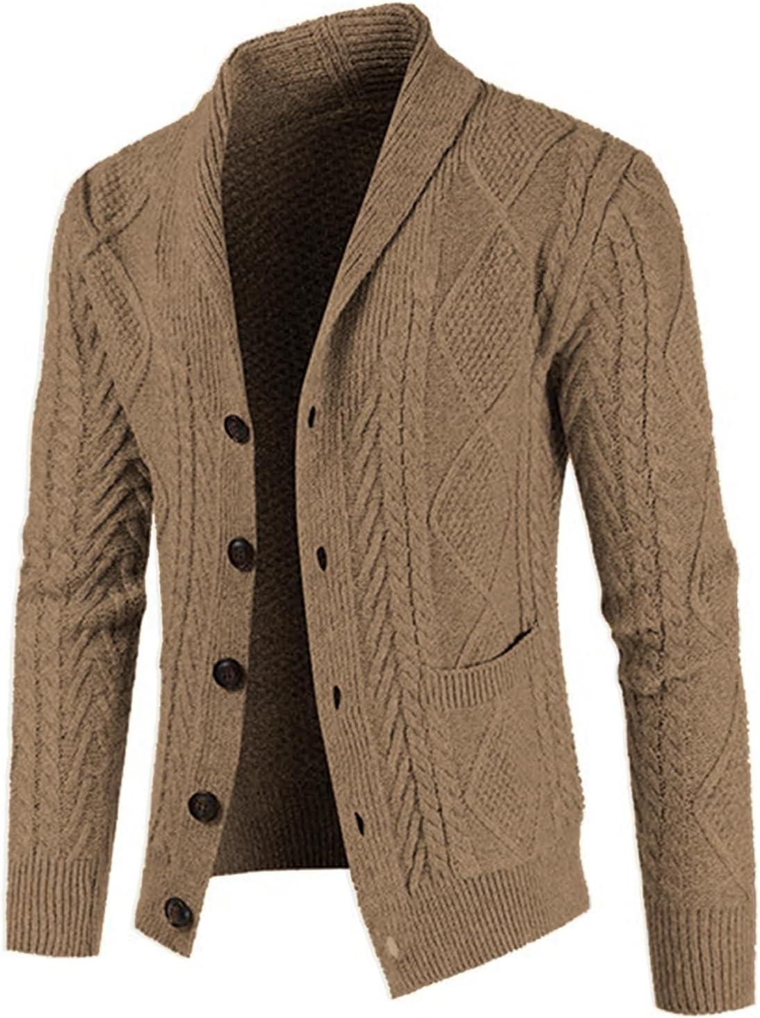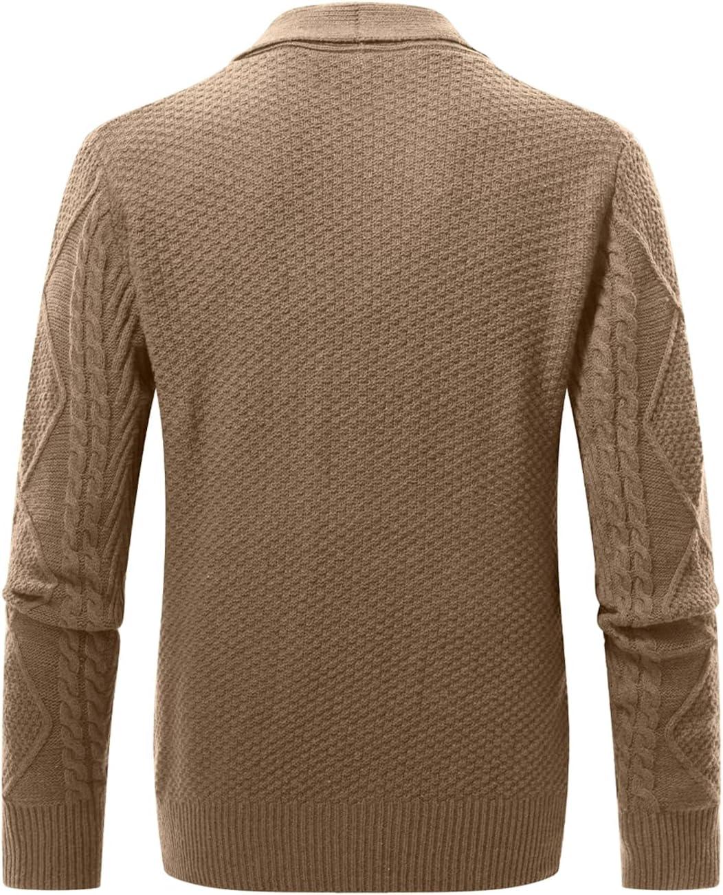 JMIERR Men’s Casual Wool Blend Cardigan Sweaters Long Sleeve Shawl Collar Buttons Down Cable Knit Sweater(D Brown)