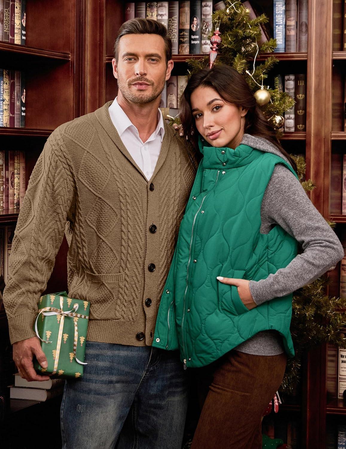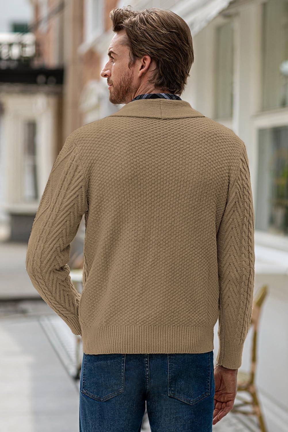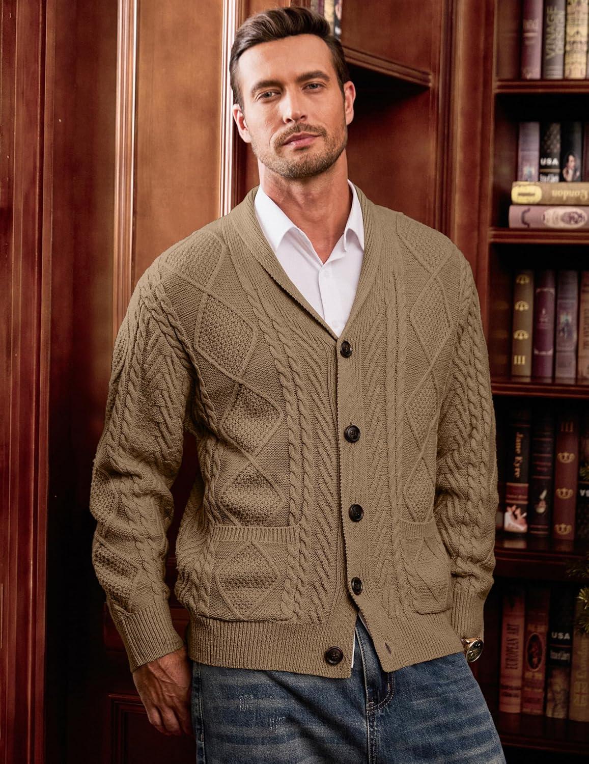 JMIERR Men’s Casual Wool Blend Cardigan Sweaters Long Sleeve Shawl Collar Buttons Down Cable Knit Sweater(D Brown)