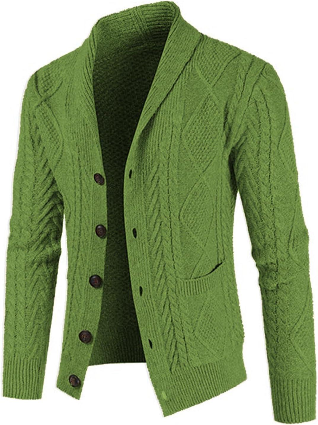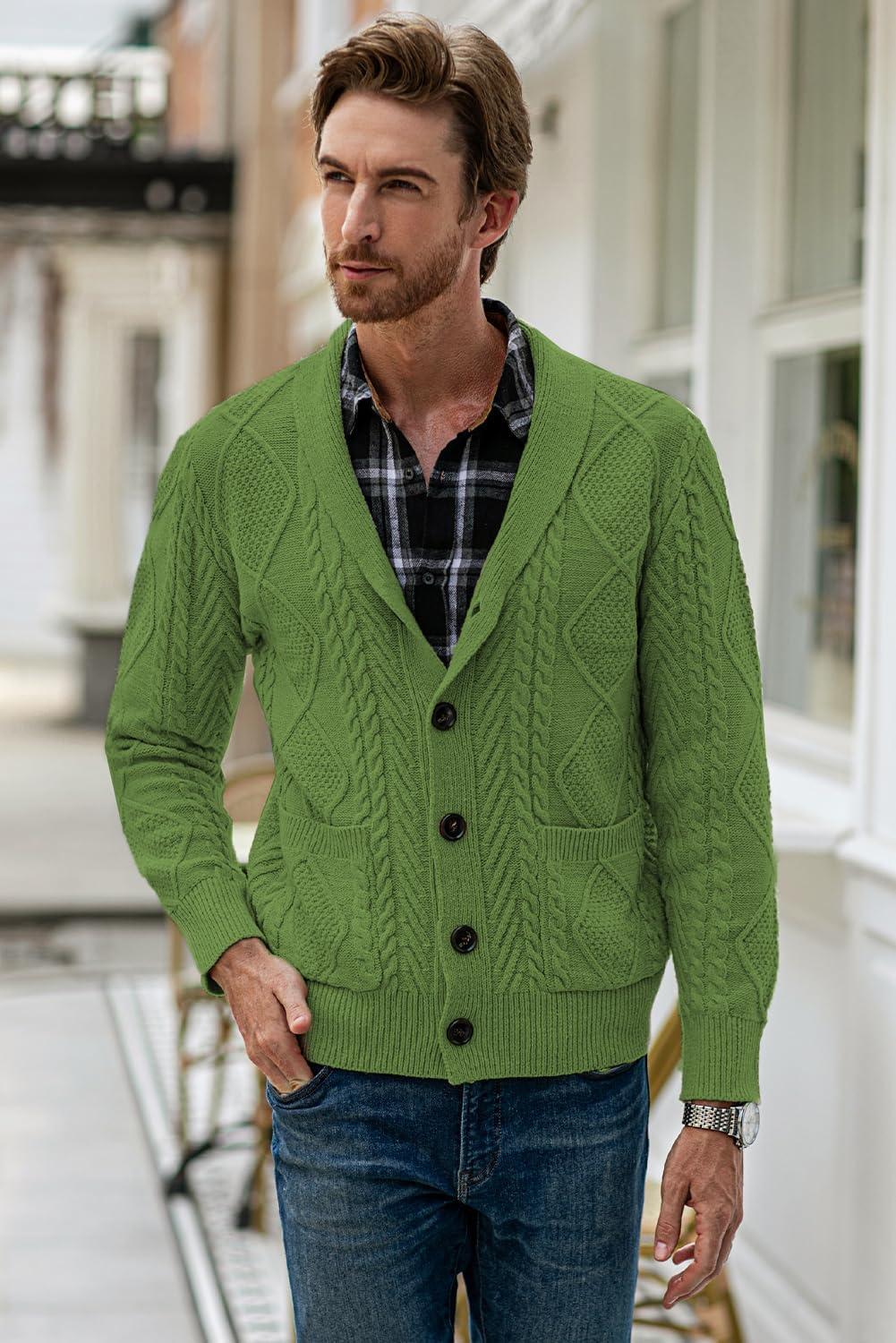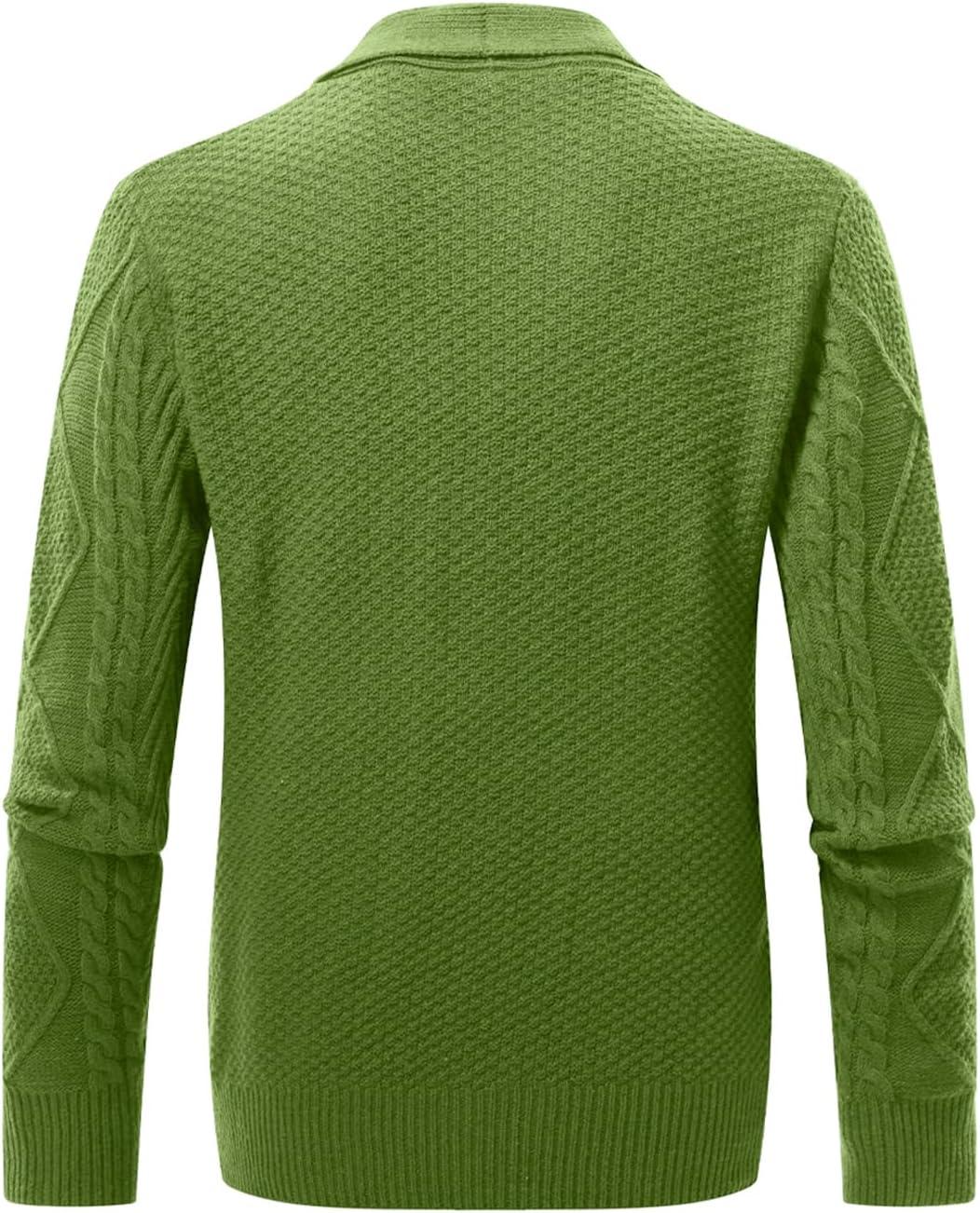 JMIERR Men’s Casual Wool Blend Cardigan Sweaters Long Sleeve Shawl Collar Buttons Down Cable Knit Sweater(D Green)