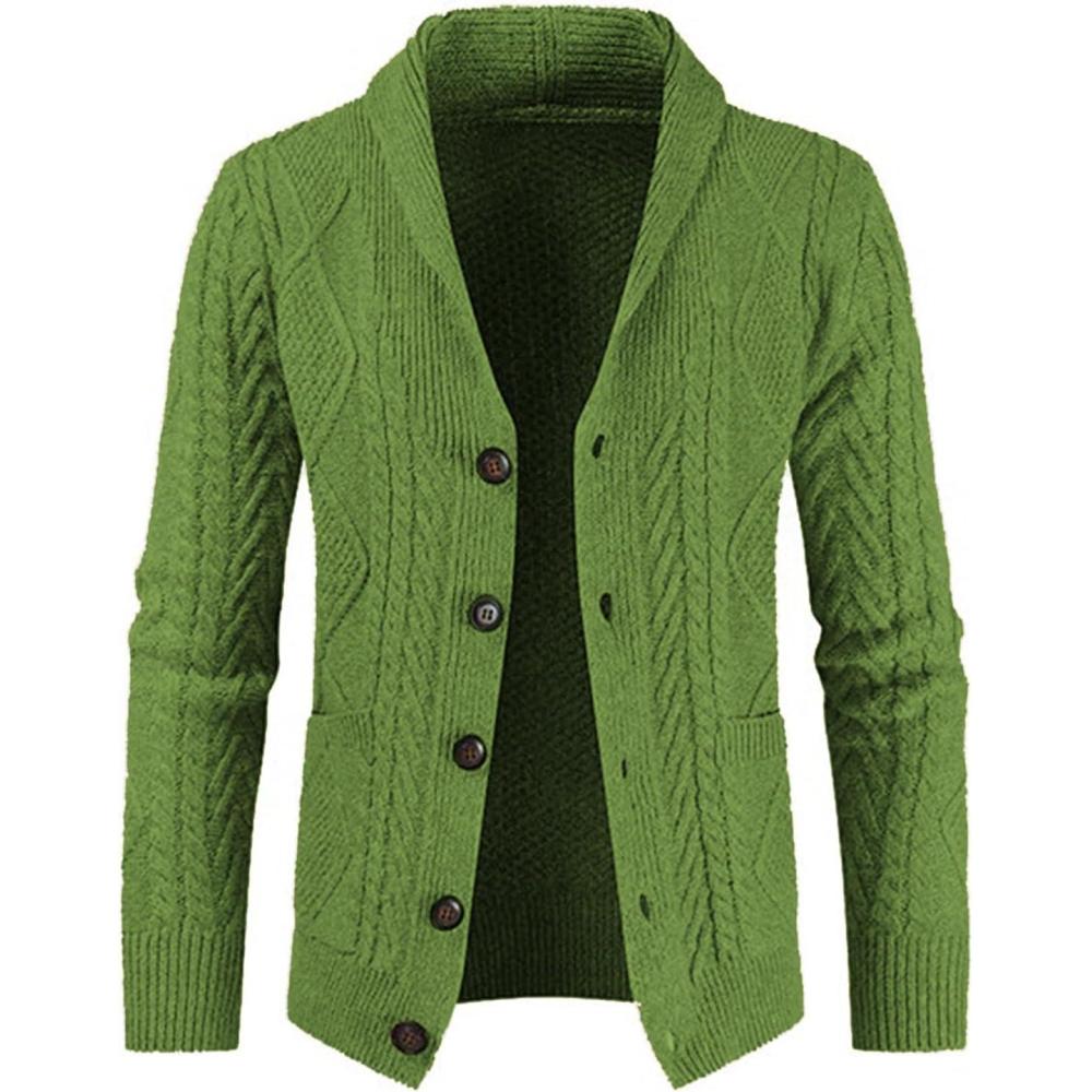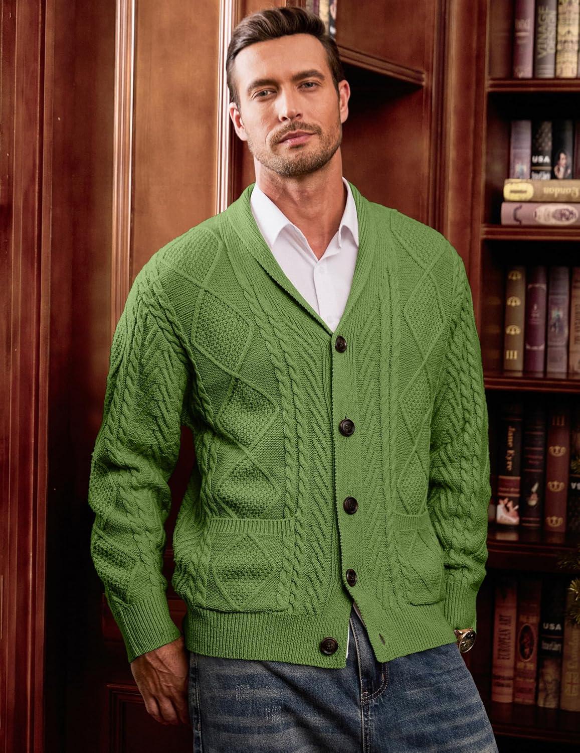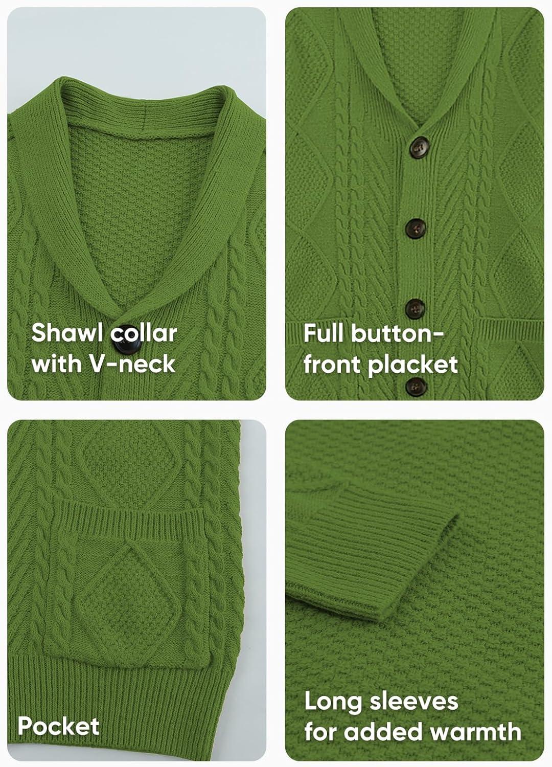 JMIERR Men’s Casual Wool Blend Cardigan Sweaters Long Sleeve Shawl Collar Buttons Down Cable Knit Sweater(D Green)