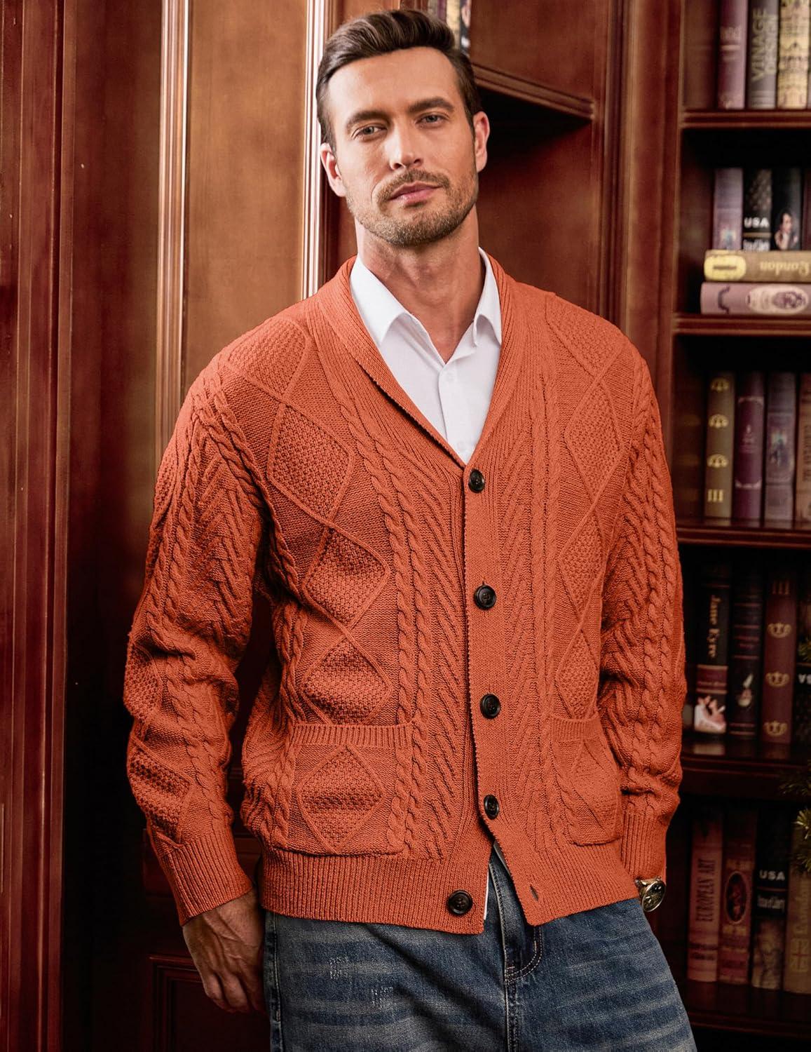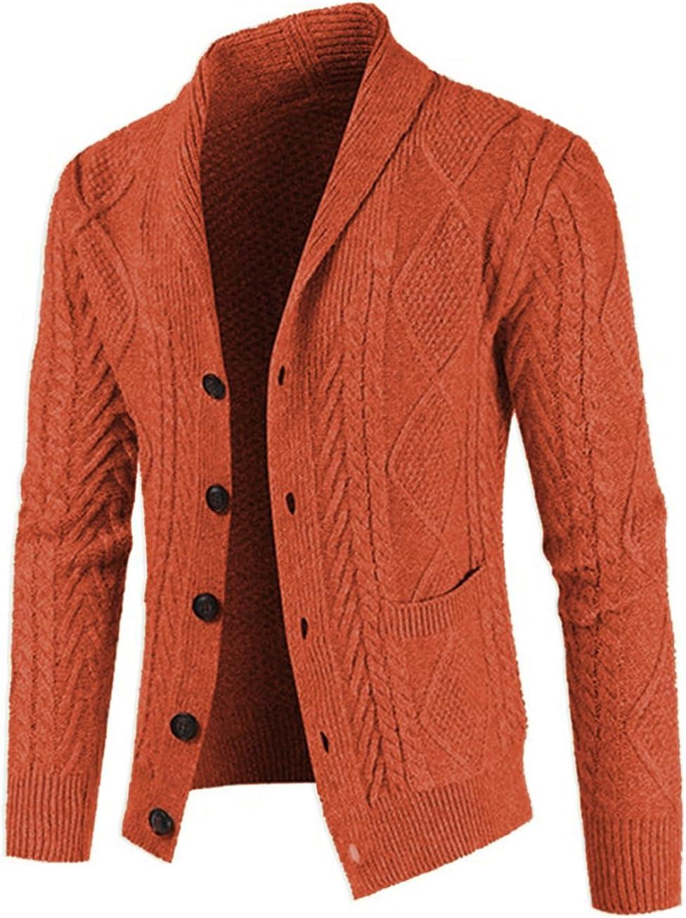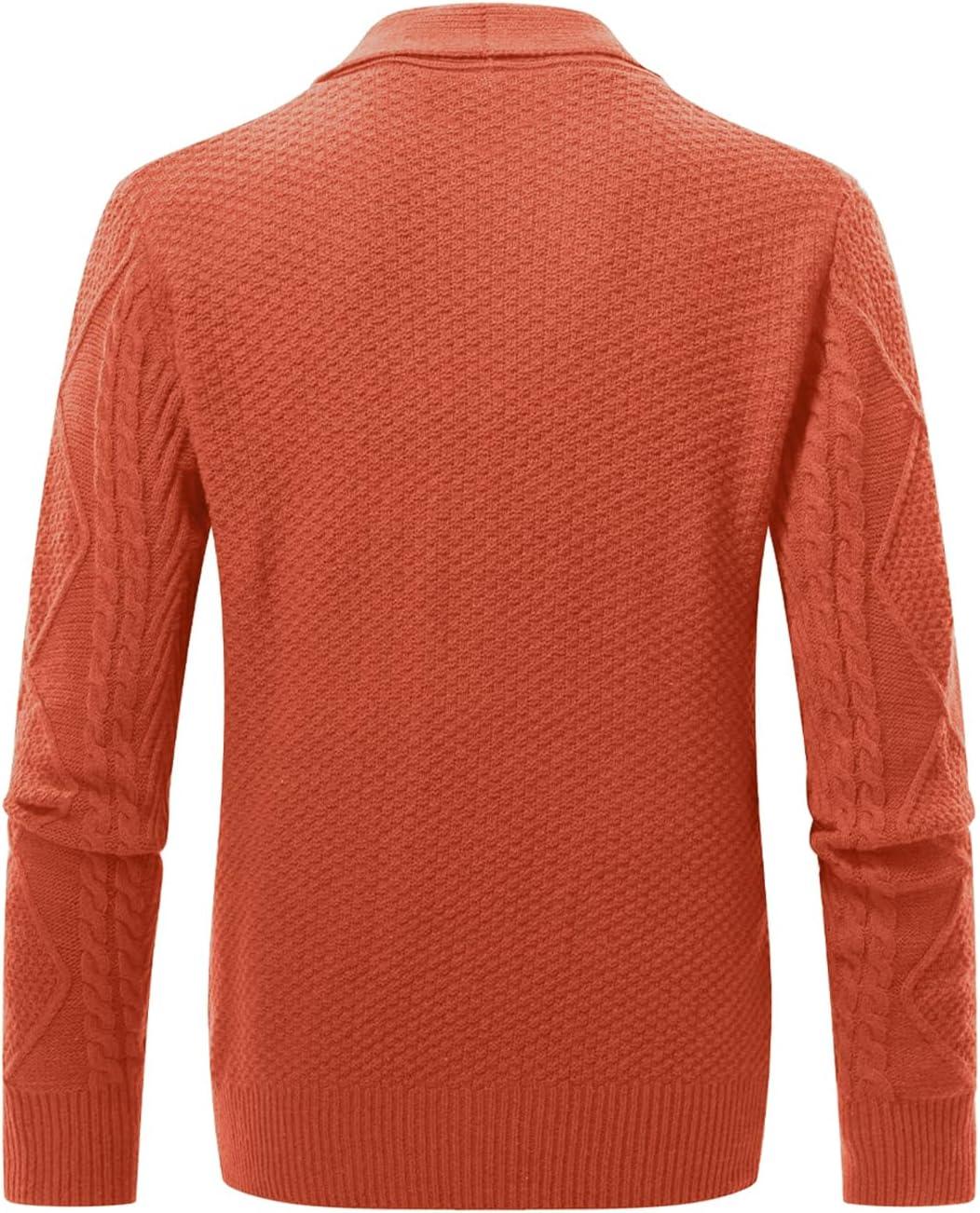 JMIERR Men’s Casual Wool Blend Cardigan Sweaters Long Sleeve Shawl Collar Buttons Down Cable Knit Sweater(D Orange)