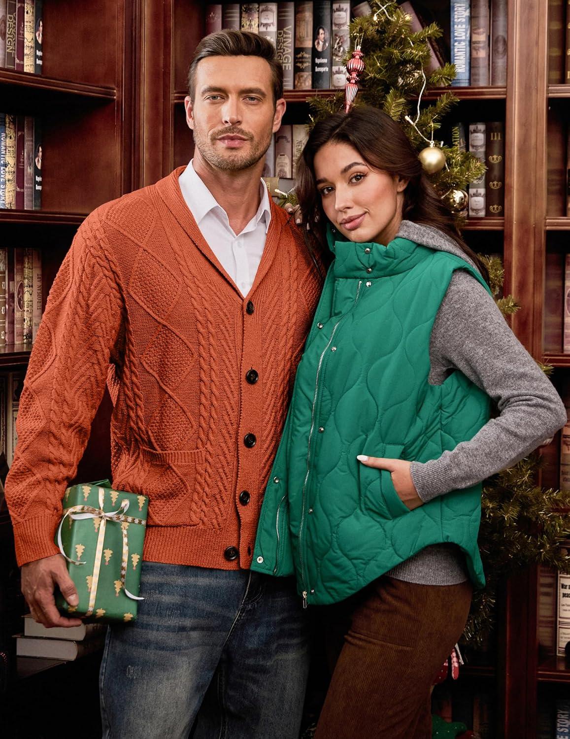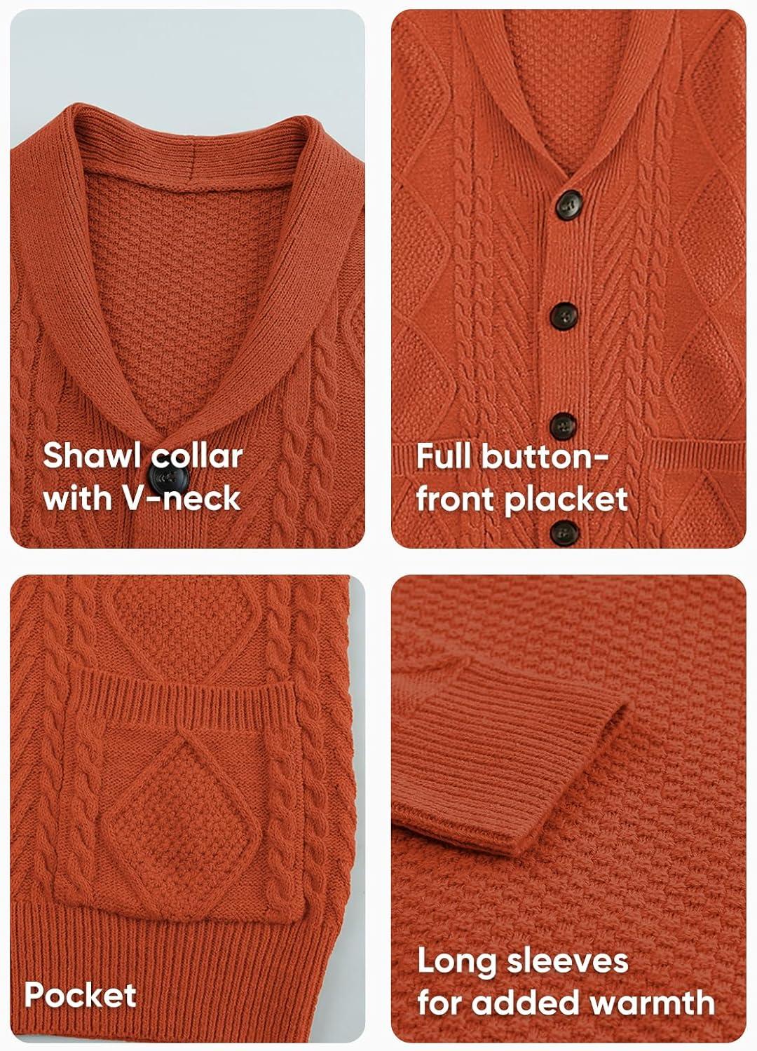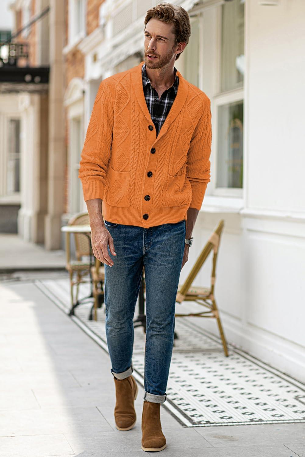 JMIERR Men’s Casual Wool Blend Cardigan Sweaters Long Sleeve Shawl Collar Buttons Down Cable Knit Sweater(D Orange)