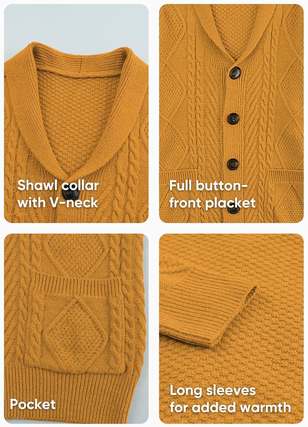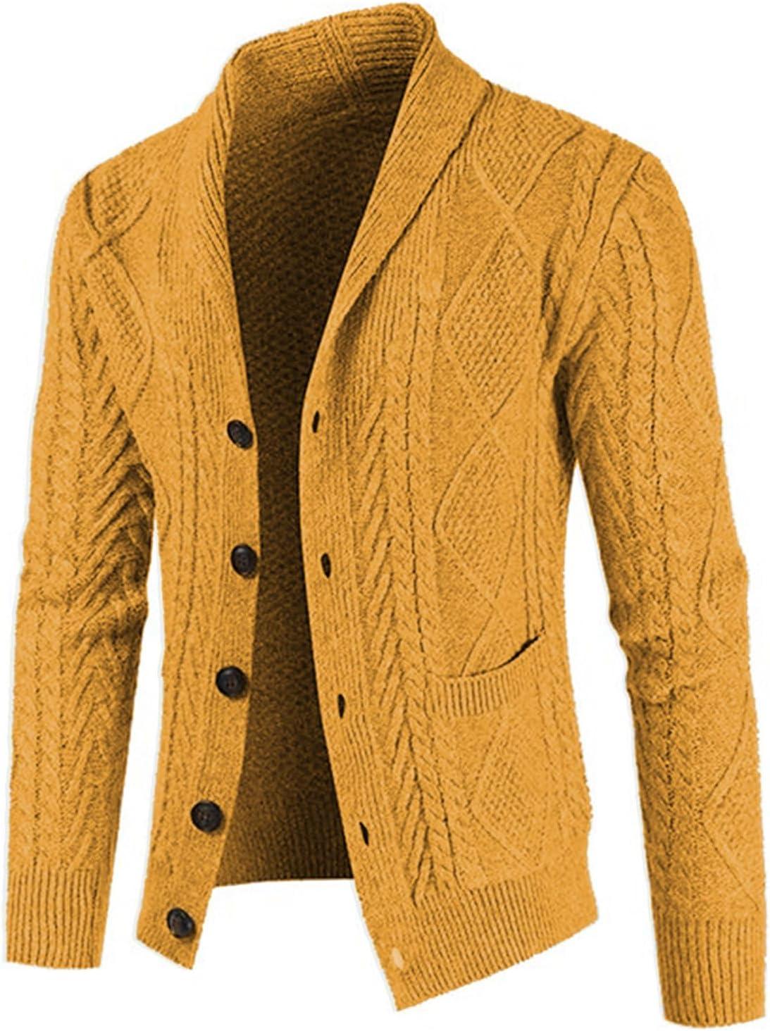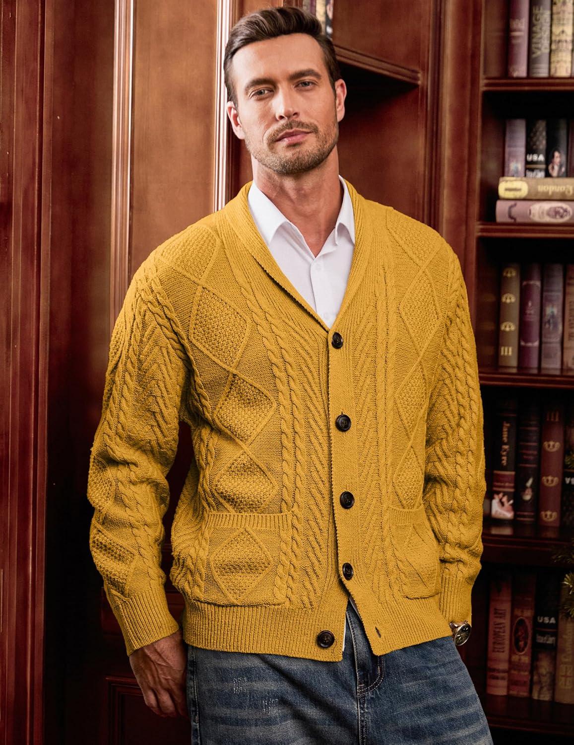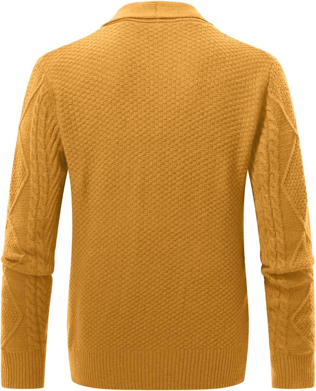 JMIERR Men’s Casual Wool Blend Cardigan Sweaters Long Sleeve Shawl Collar Buttons Down Cable Knit Sweater(D Yellow)