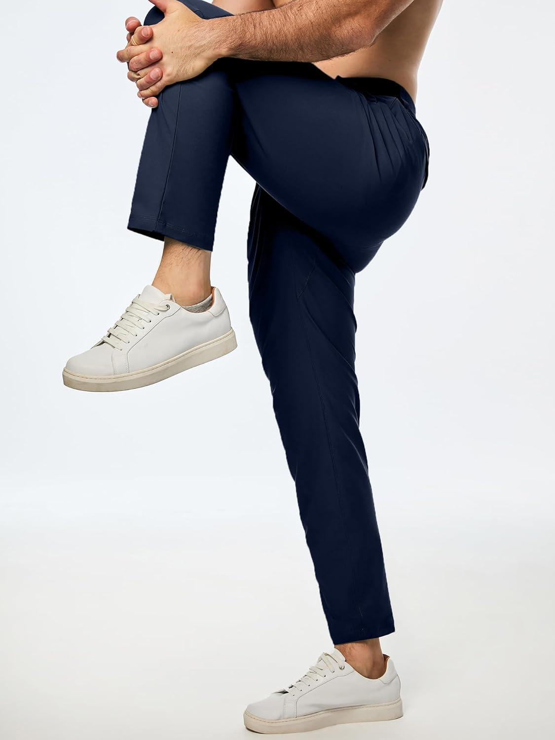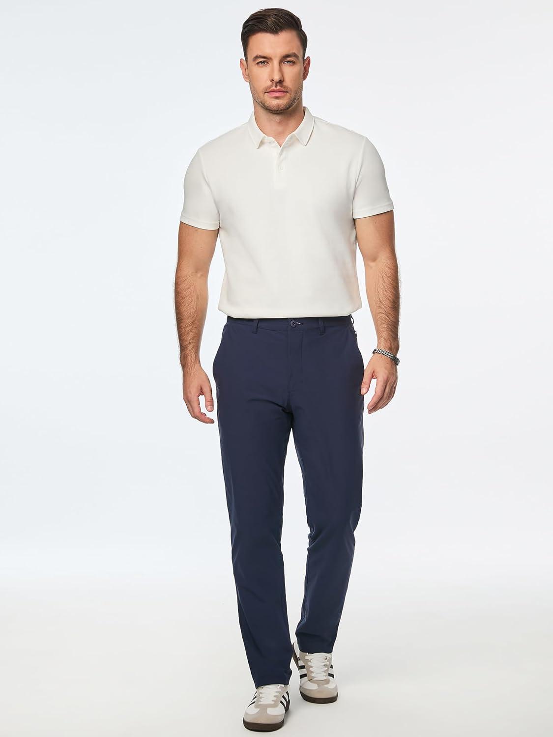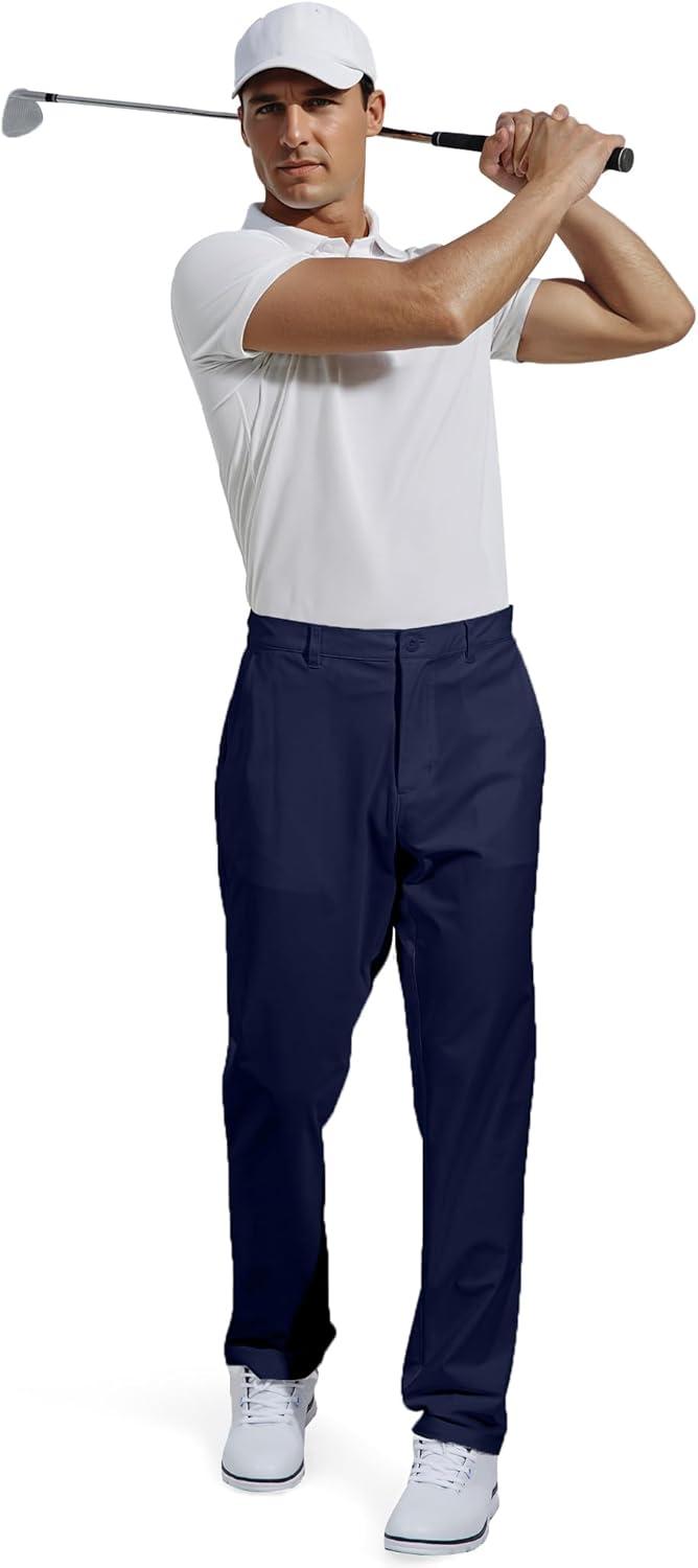 JMIERR Mens Chino Pants Casual Stretch Golf Pants Waist Tapered Trousers Lightweight Comfy Pants with Zipper Pockets(Navy Blue)