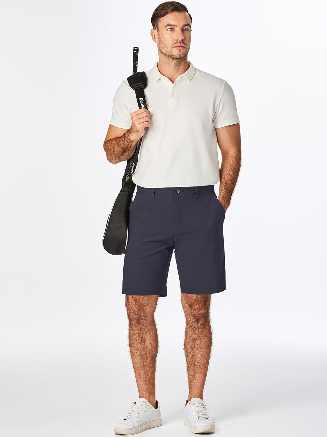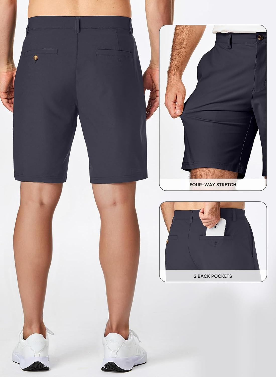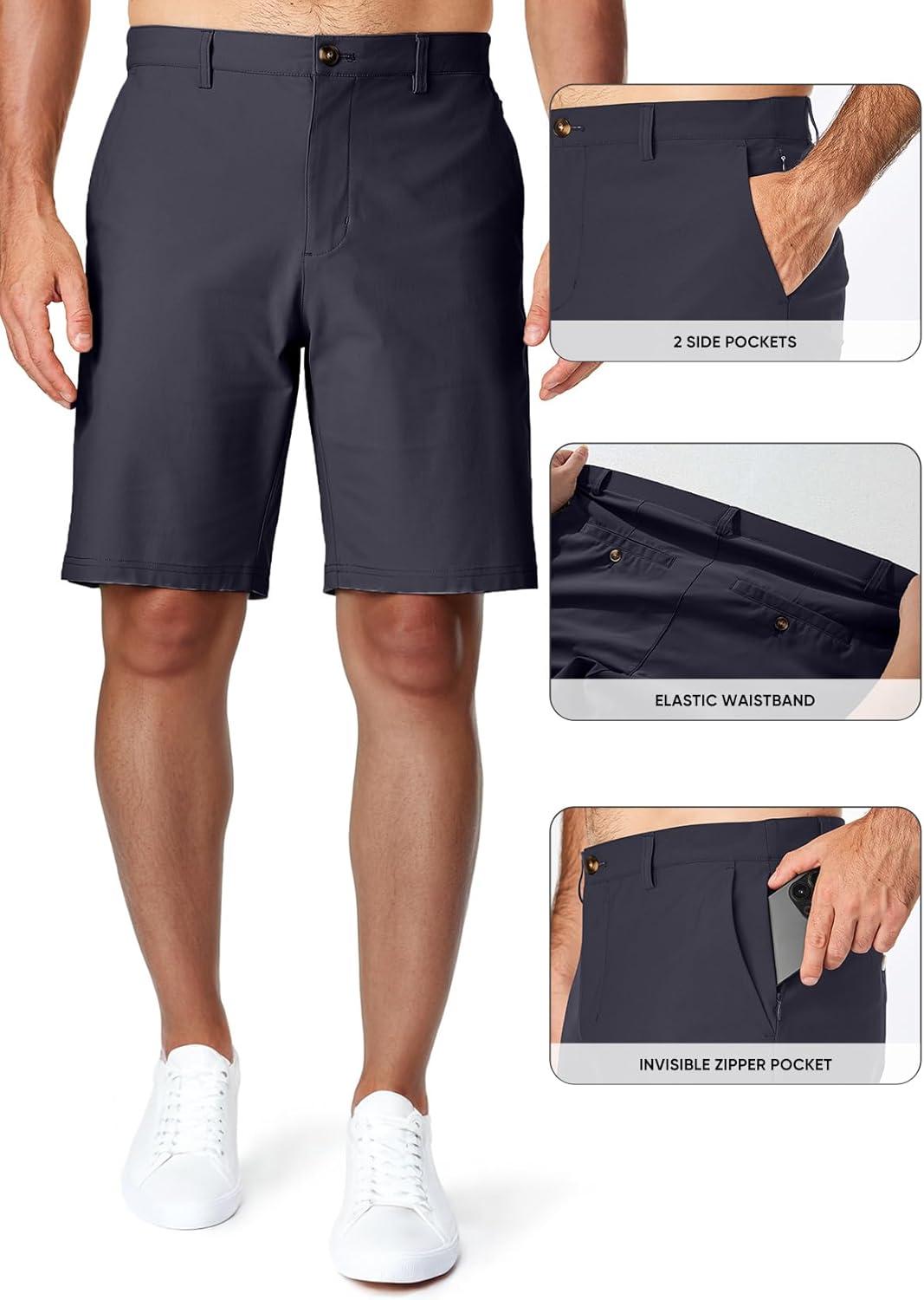 JMIERR Men’s Chino Shorts Casual Summer 9″ Inch Stretch Moisture-Wicking Golf Dress Short with Zipper Pocket(9″ Carbon Grey)