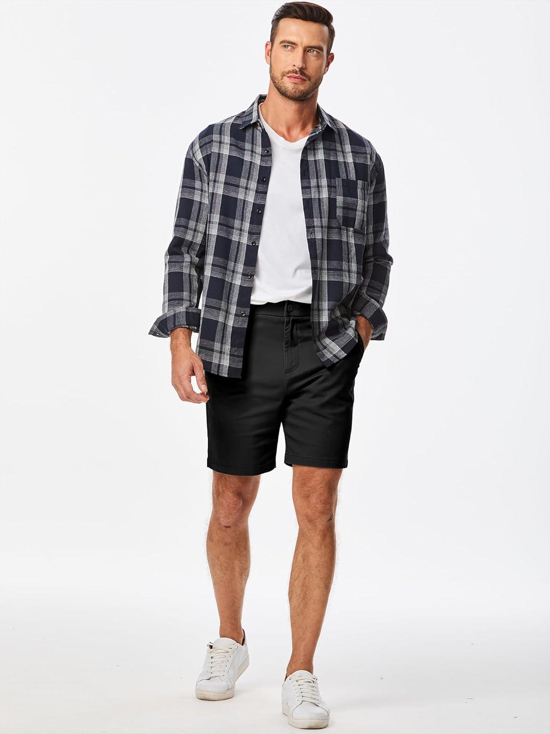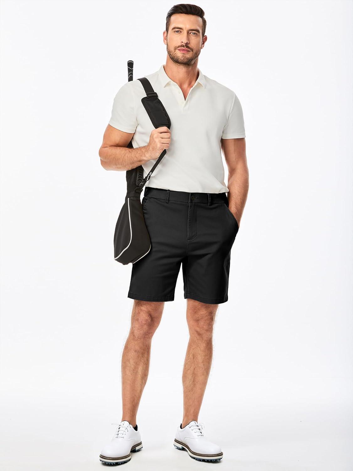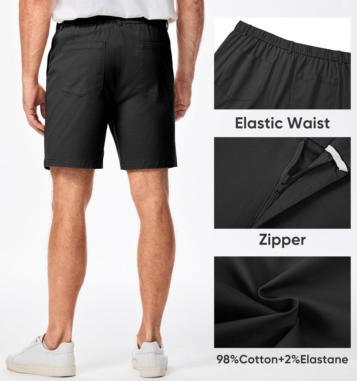JMIERR Men’s Classic-Fit 7″ Chino Short Summer Stretch Waist Cotton Twill Casual Dress Shorts with Pockets(7″ Black)