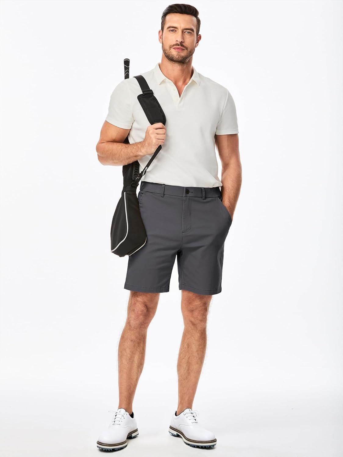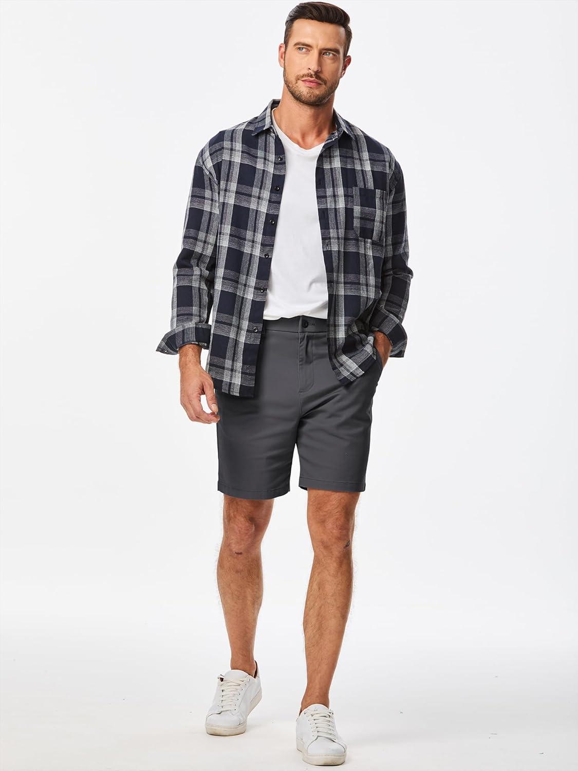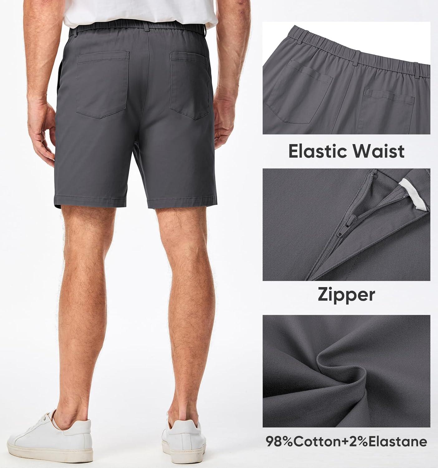 JMIERR Men’s Classic-Fit 7″ Chino Short Summer Stretch Waist Cotton Twill Casual Dress Shorts with Pockets(7″ Dark Grey)