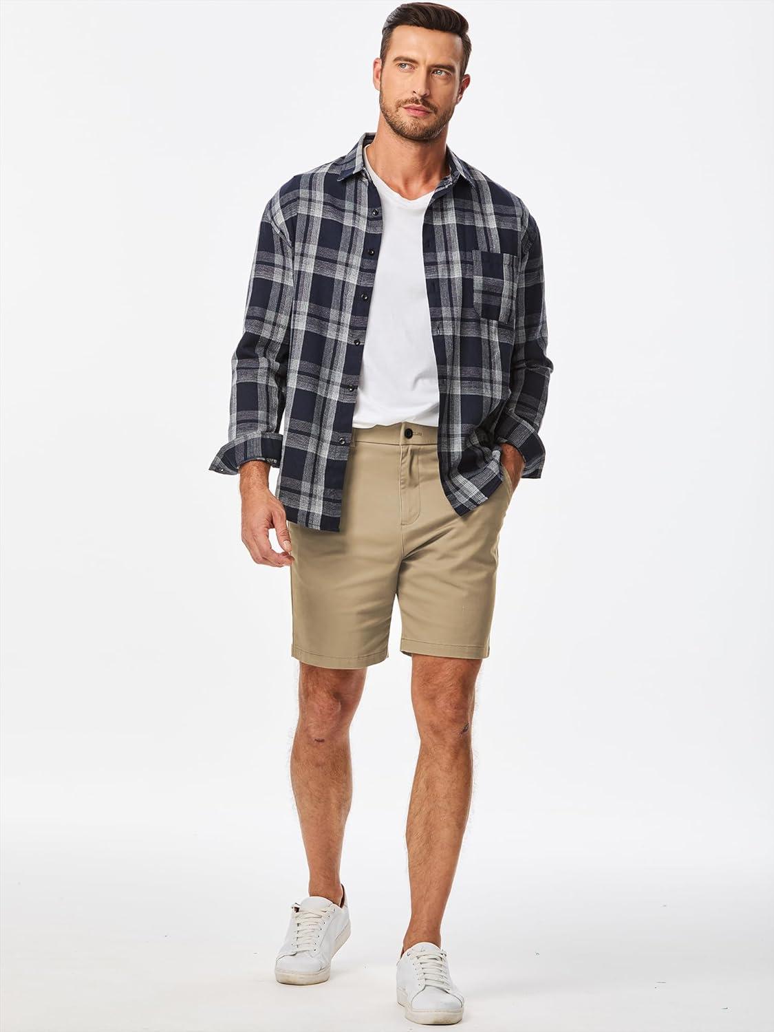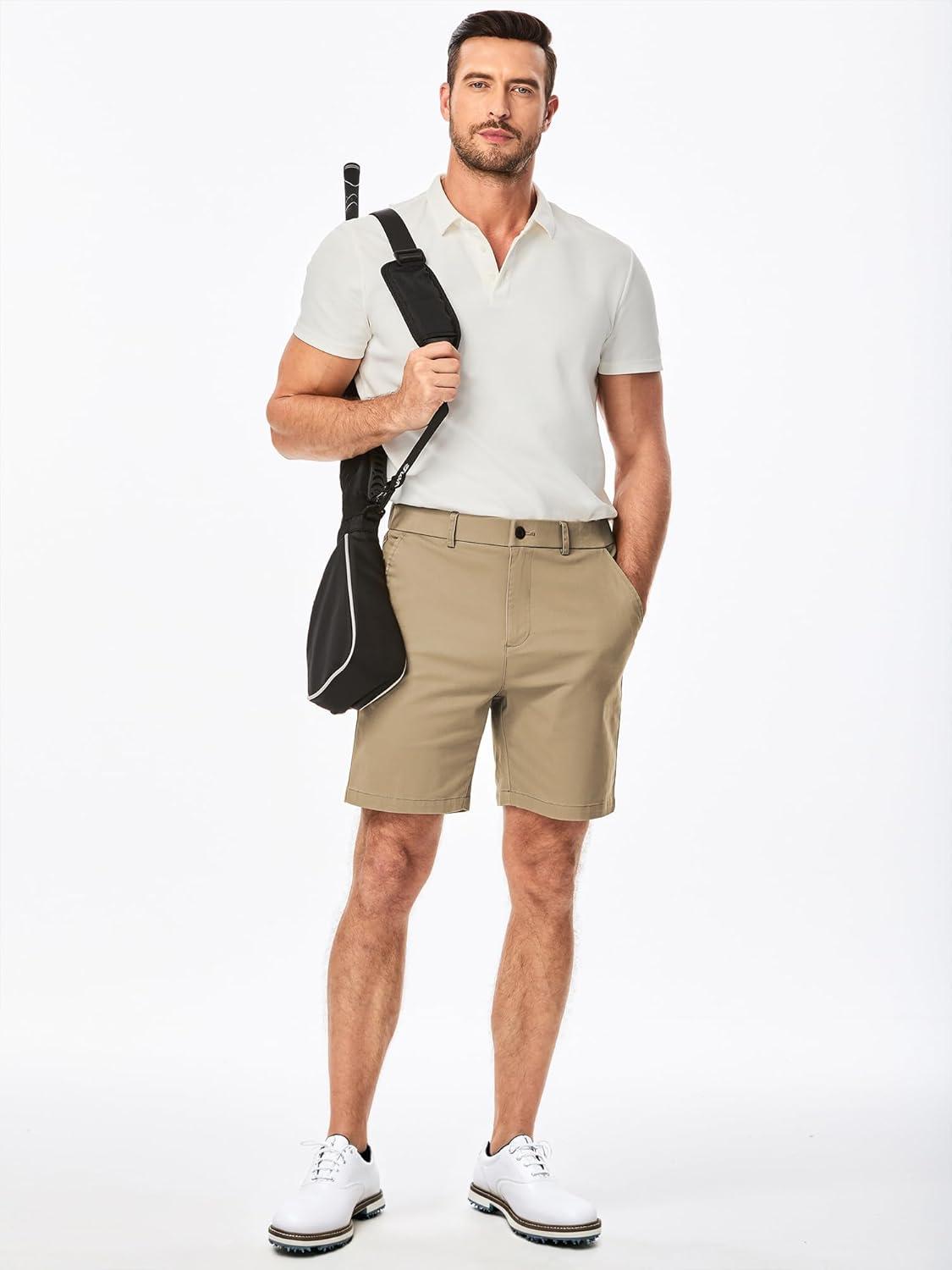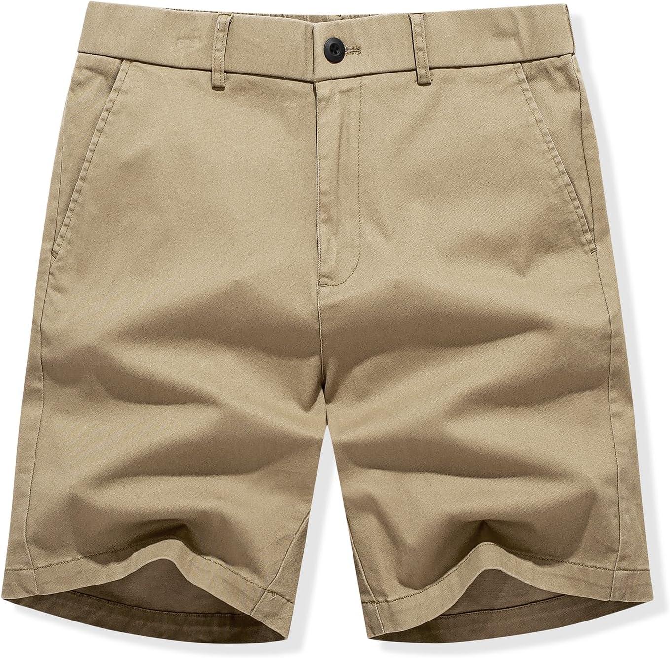 JMIERR Men’s Classic-Fit 7″ Chino Short Summer Stretch Waist Cotton Twill Casual Dress Shorts with Pockets(7″ Tan)
