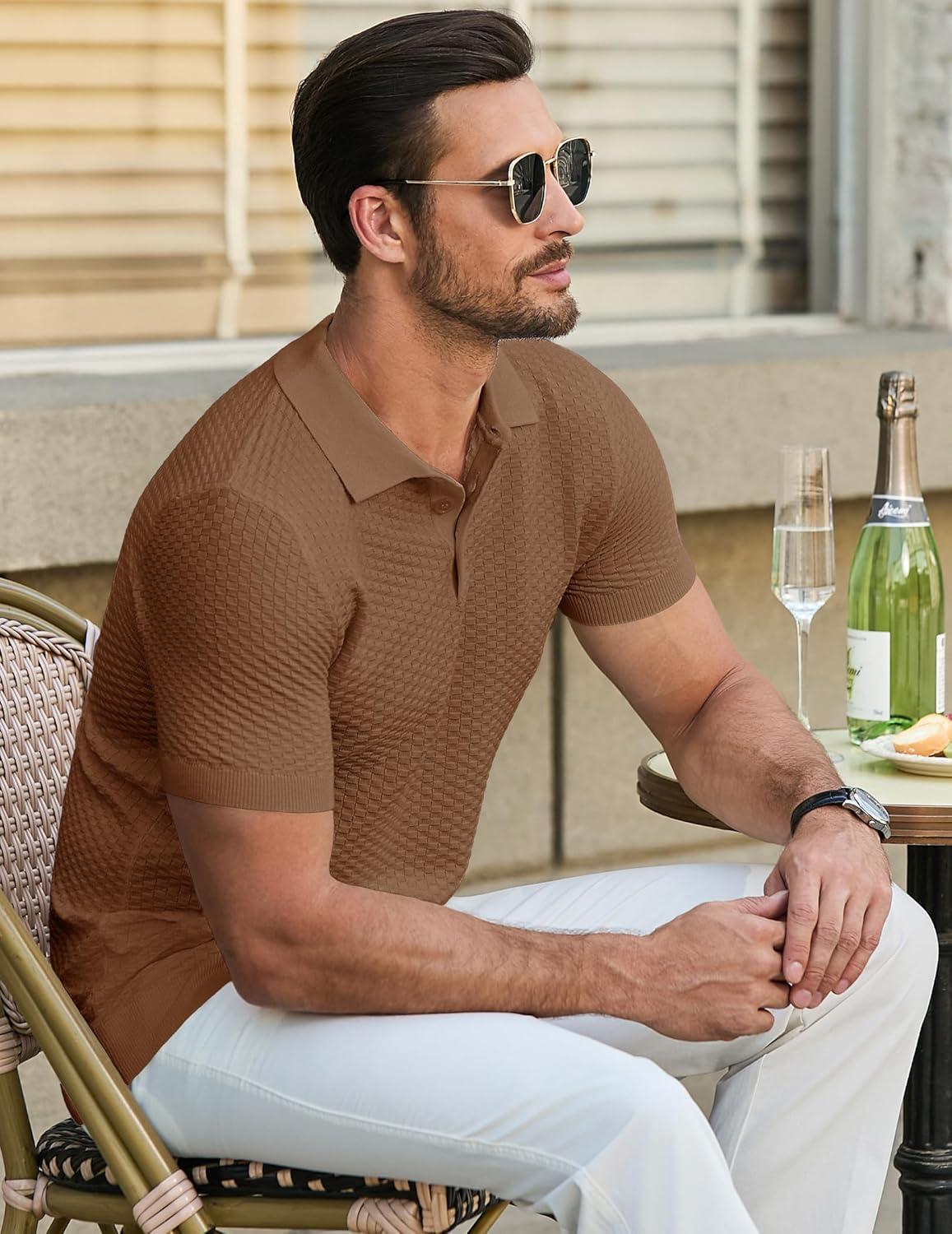 1. Casual Outings: Pair this knit polo shirt with chinos or jeans for a relaxed yet polished look during weekend gatherings or coffee dates.