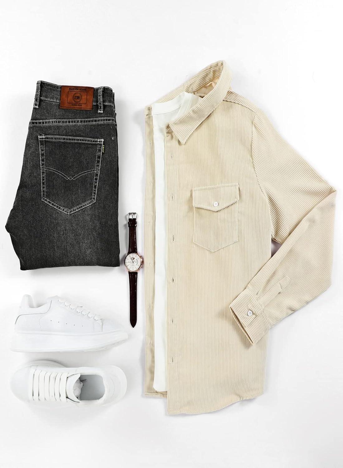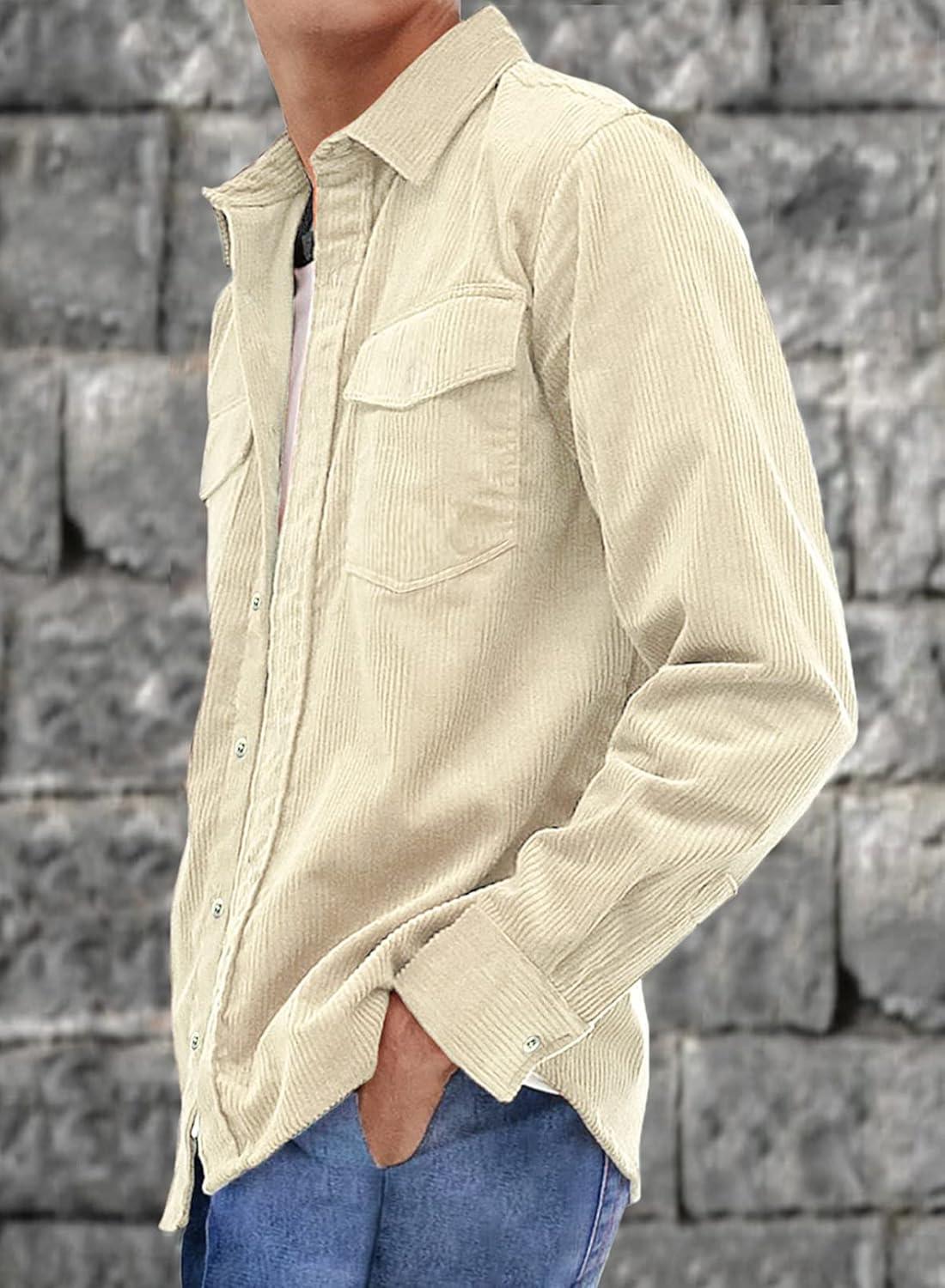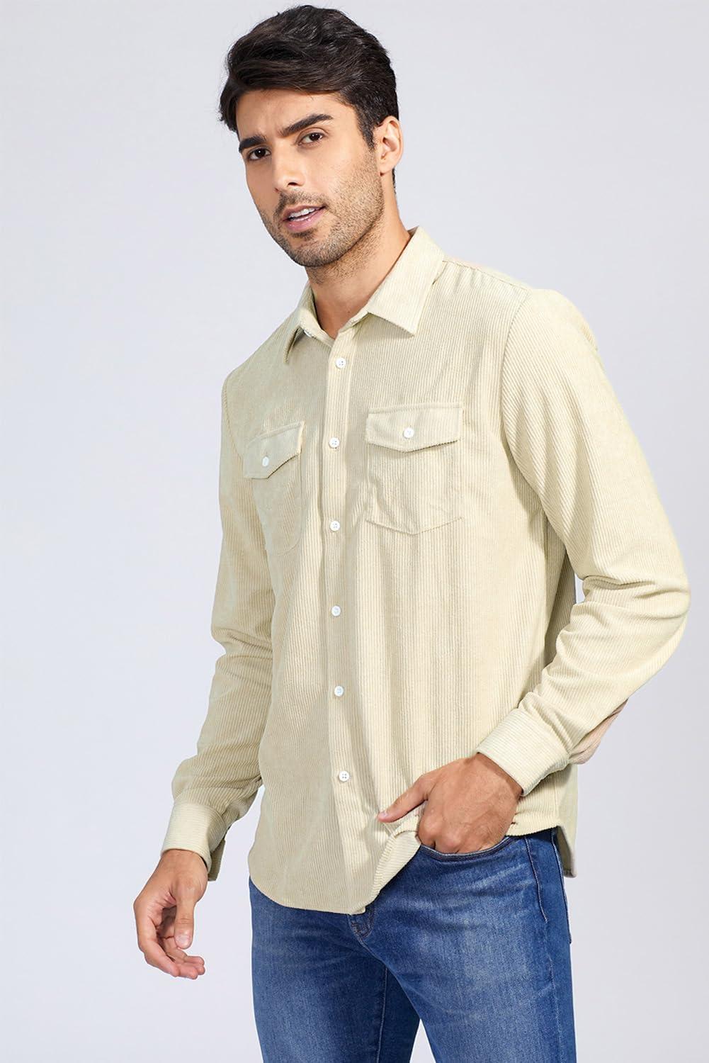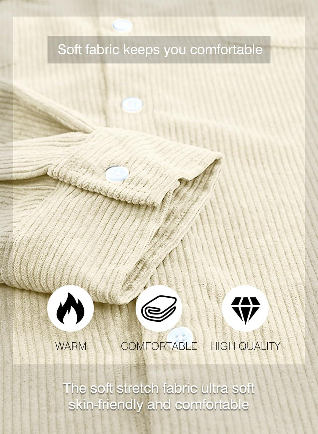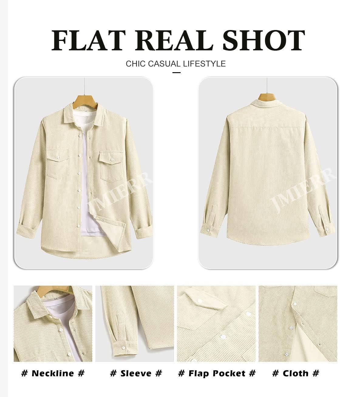 JMIERR Men’s Corduroy Button Down Shirts Casual Long Sleeve Shacket Jacket with Flap Pockets(A Apricot)