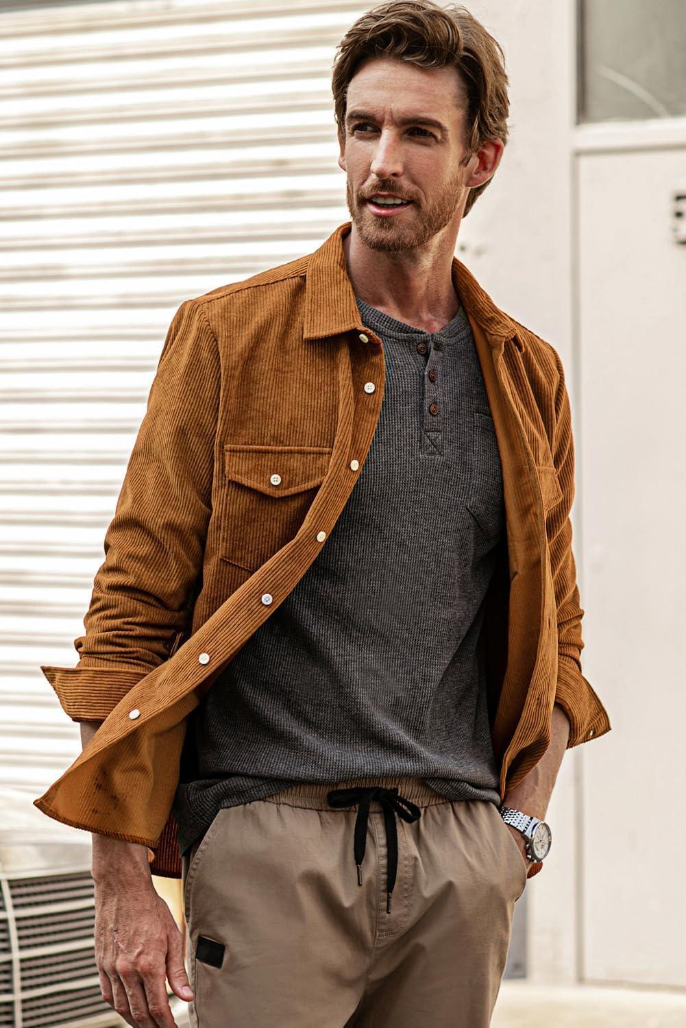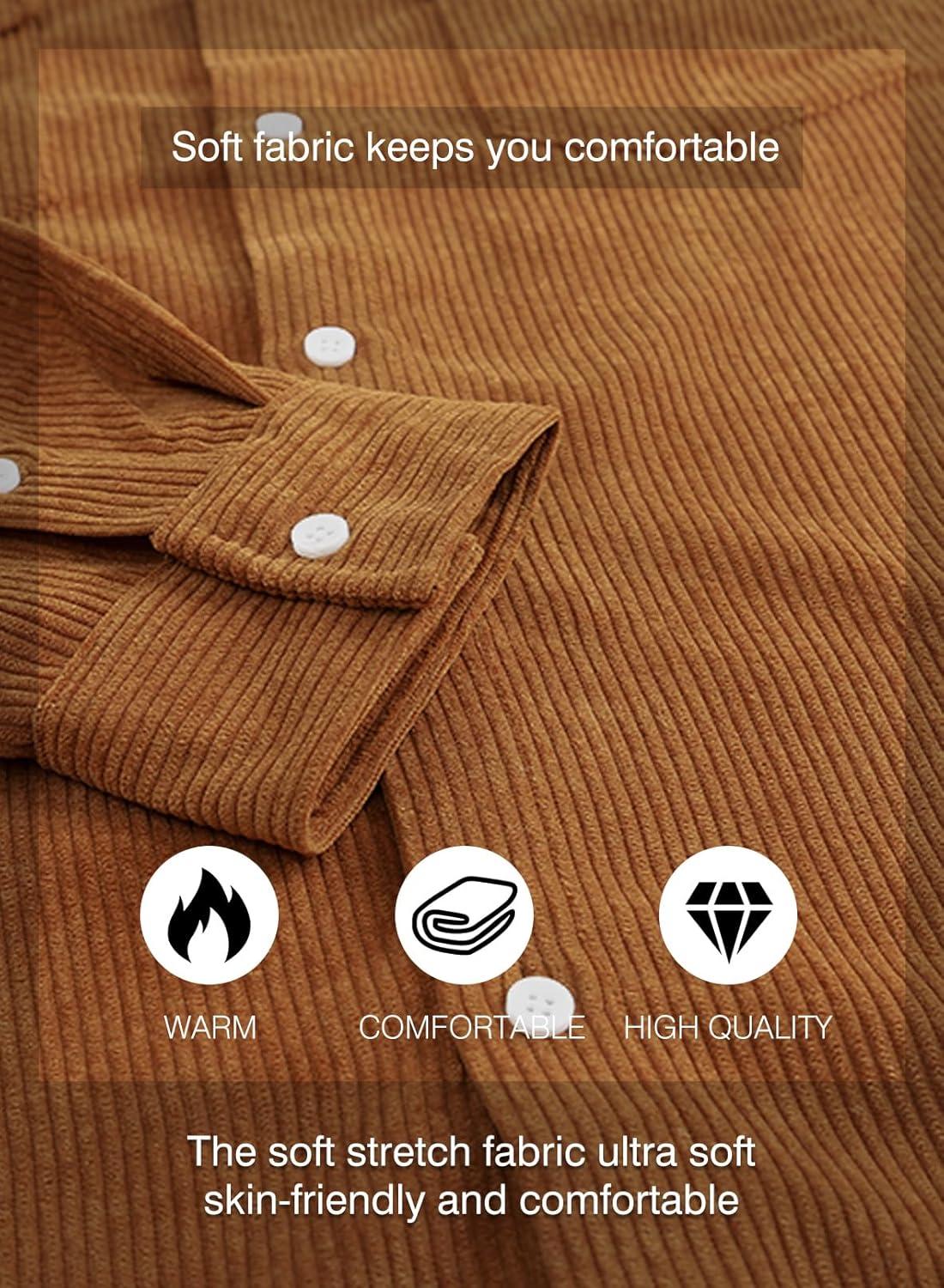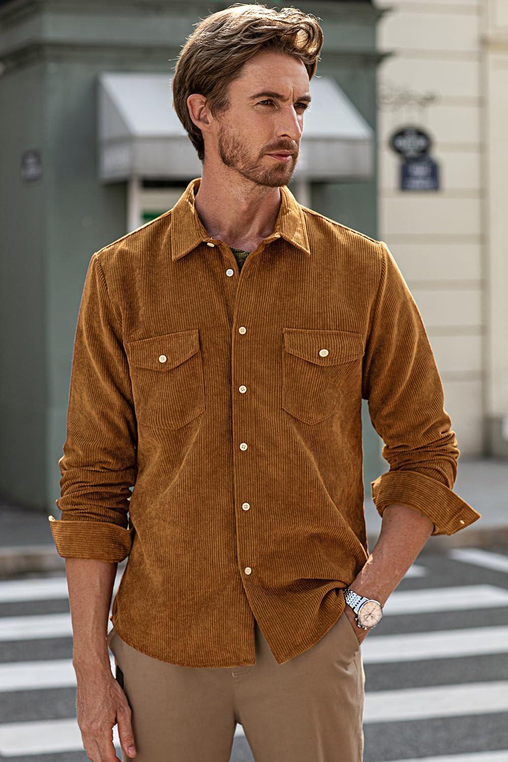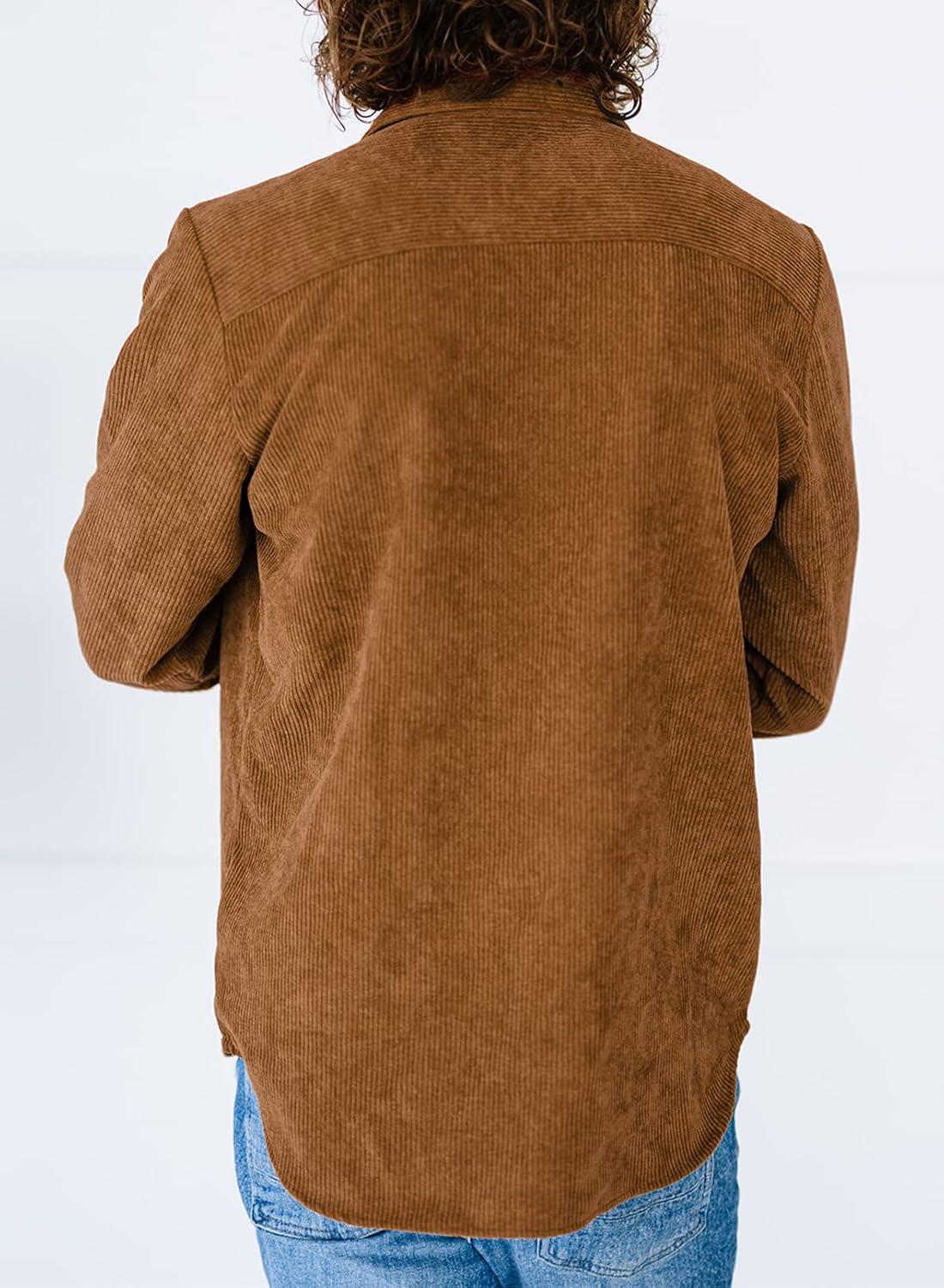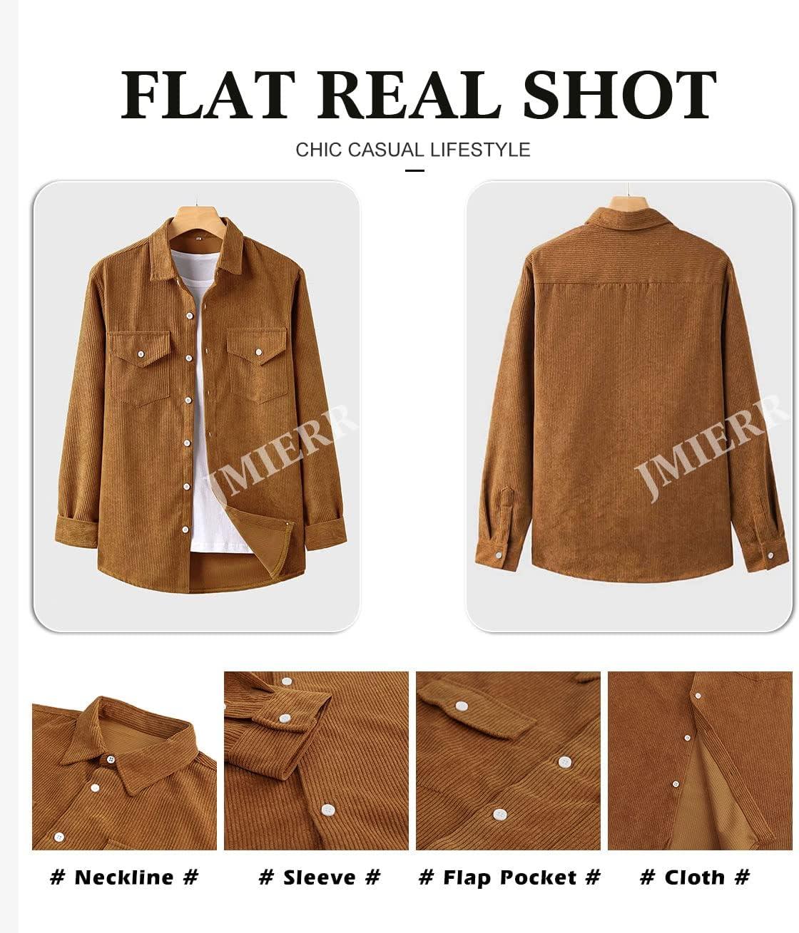 JMIERR Men’s Corduroy Button Down Shirts Casual Long Sleeve Shacket Jacket with Flap Pockets(A1 Brown)