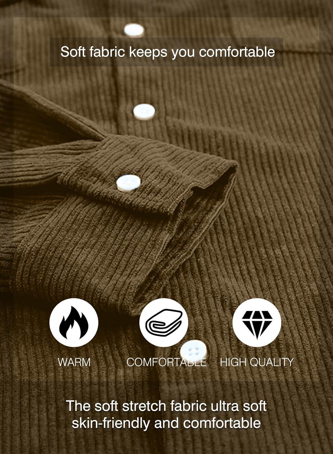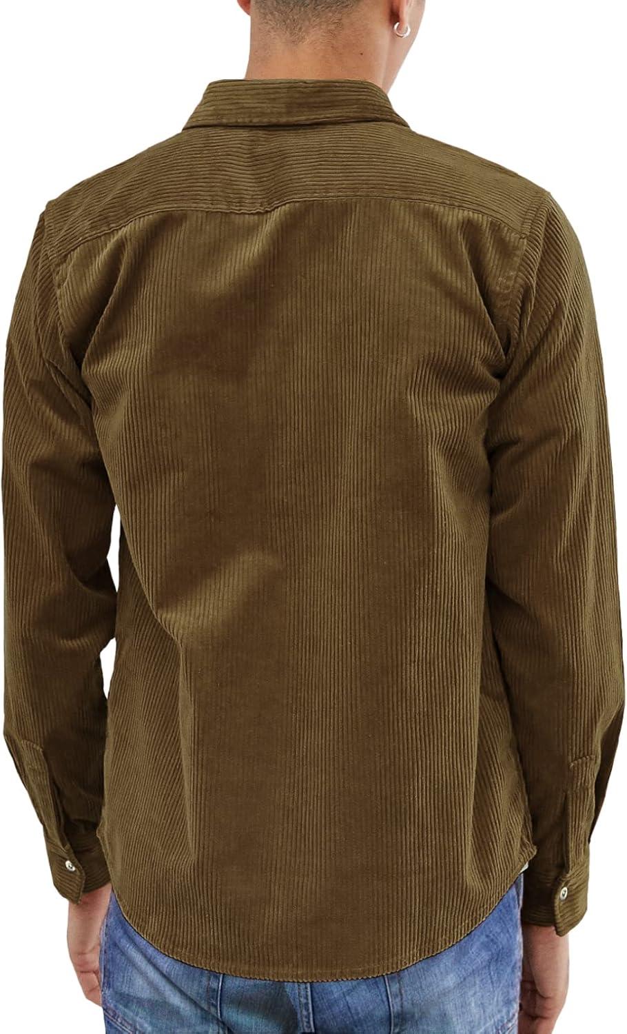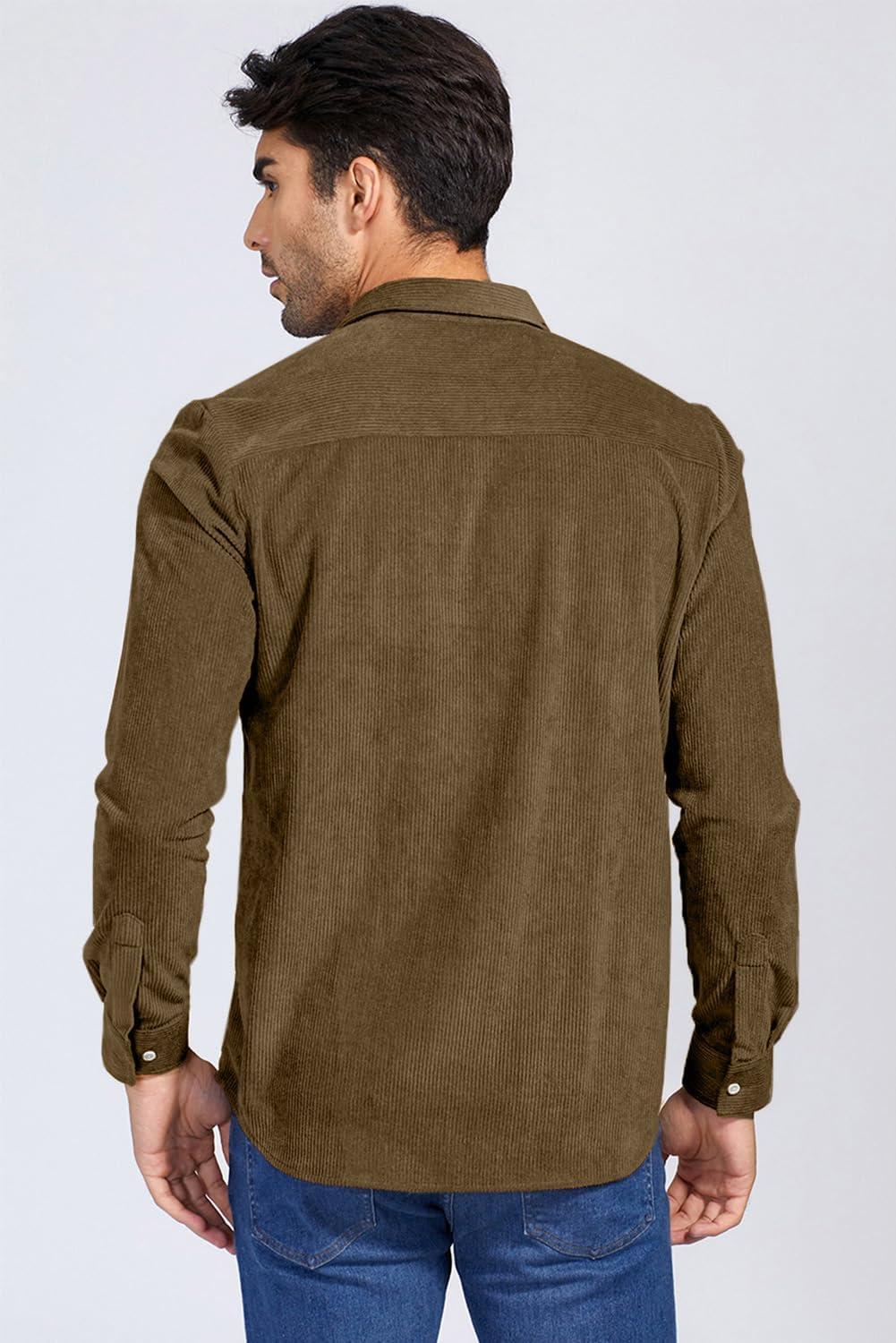 JMIERR Men’s Corduroy Button Down Shirts Casual Long Sleeve Shacket Jacket with Flap Pockets(A2 Dark Khaki)