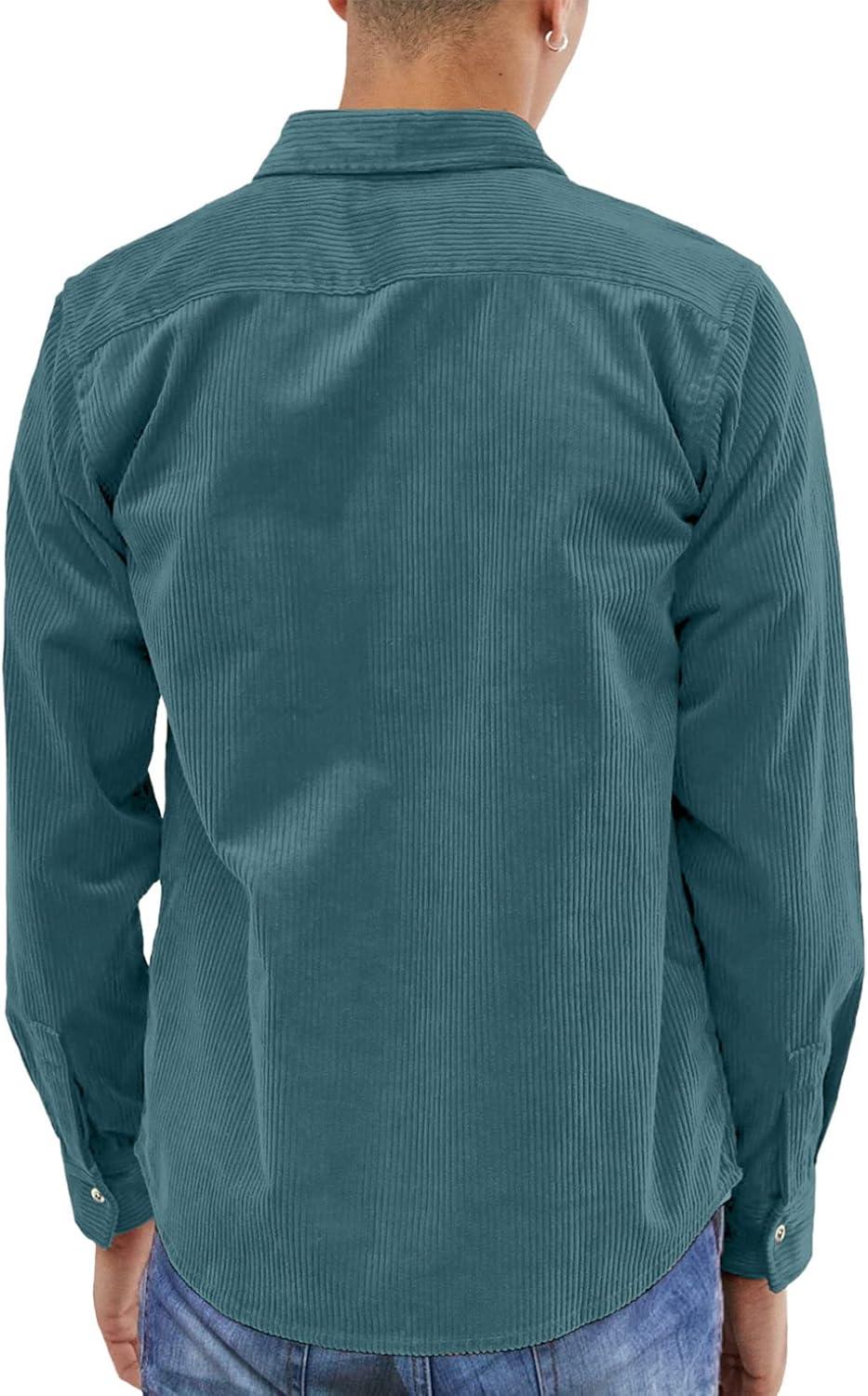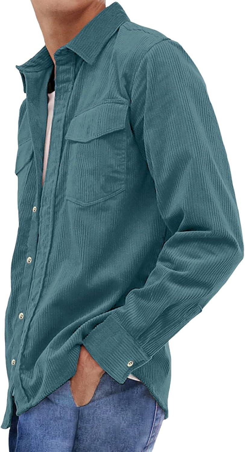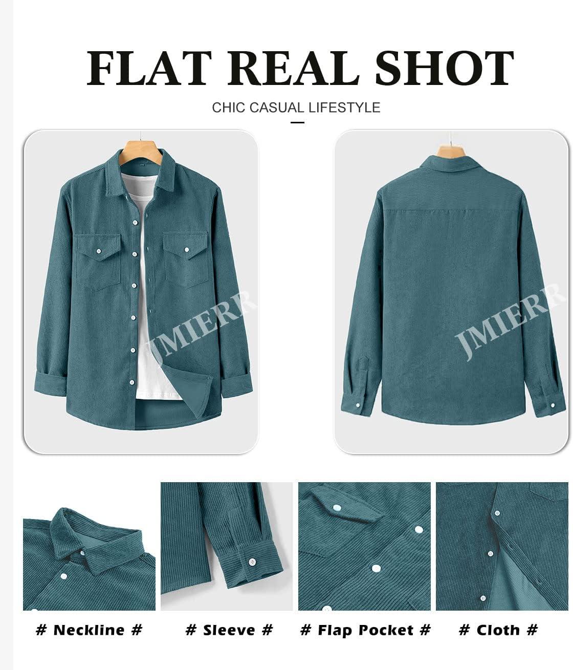 JMIERR Men’s Corduroy Button Down Shirts Casual Long Sleeve Shacket Jacket with Flap Pockets(B1 Blue Green)