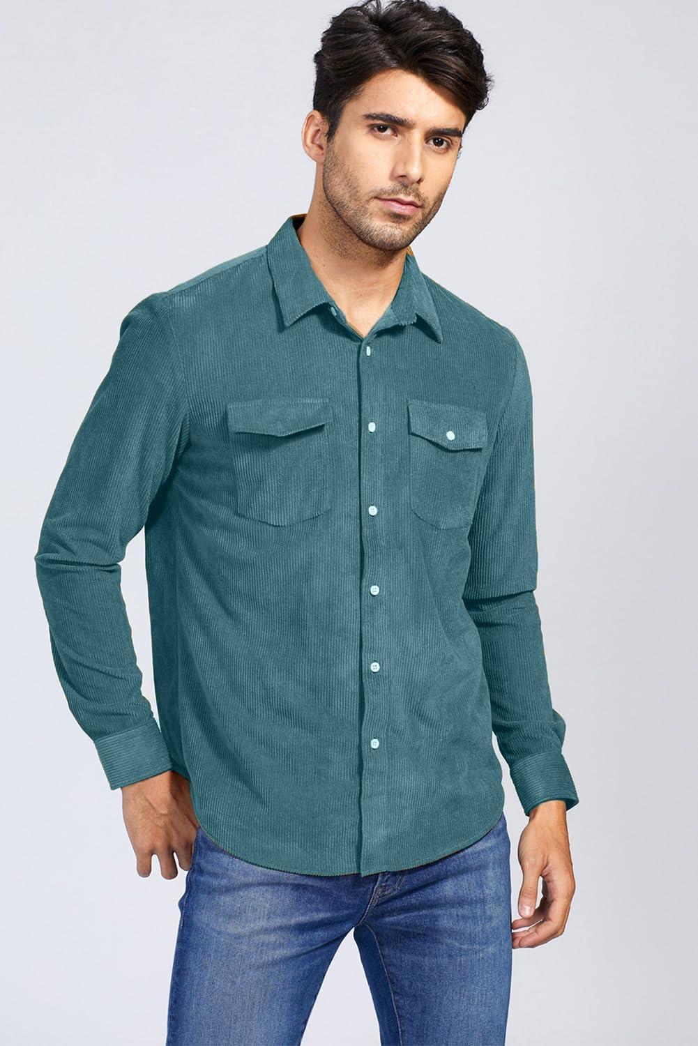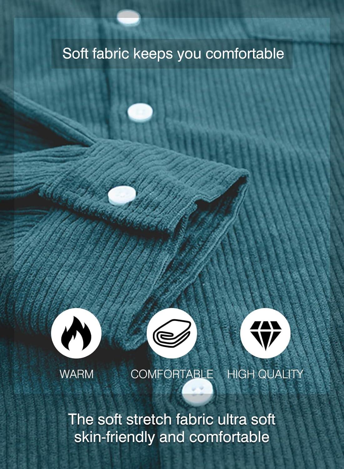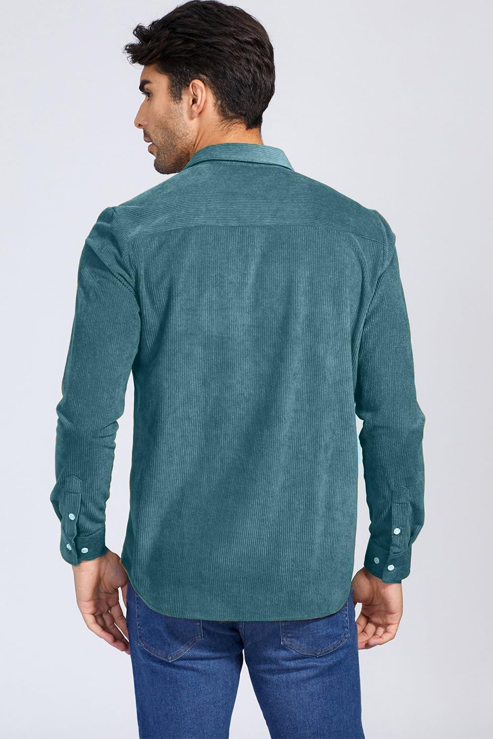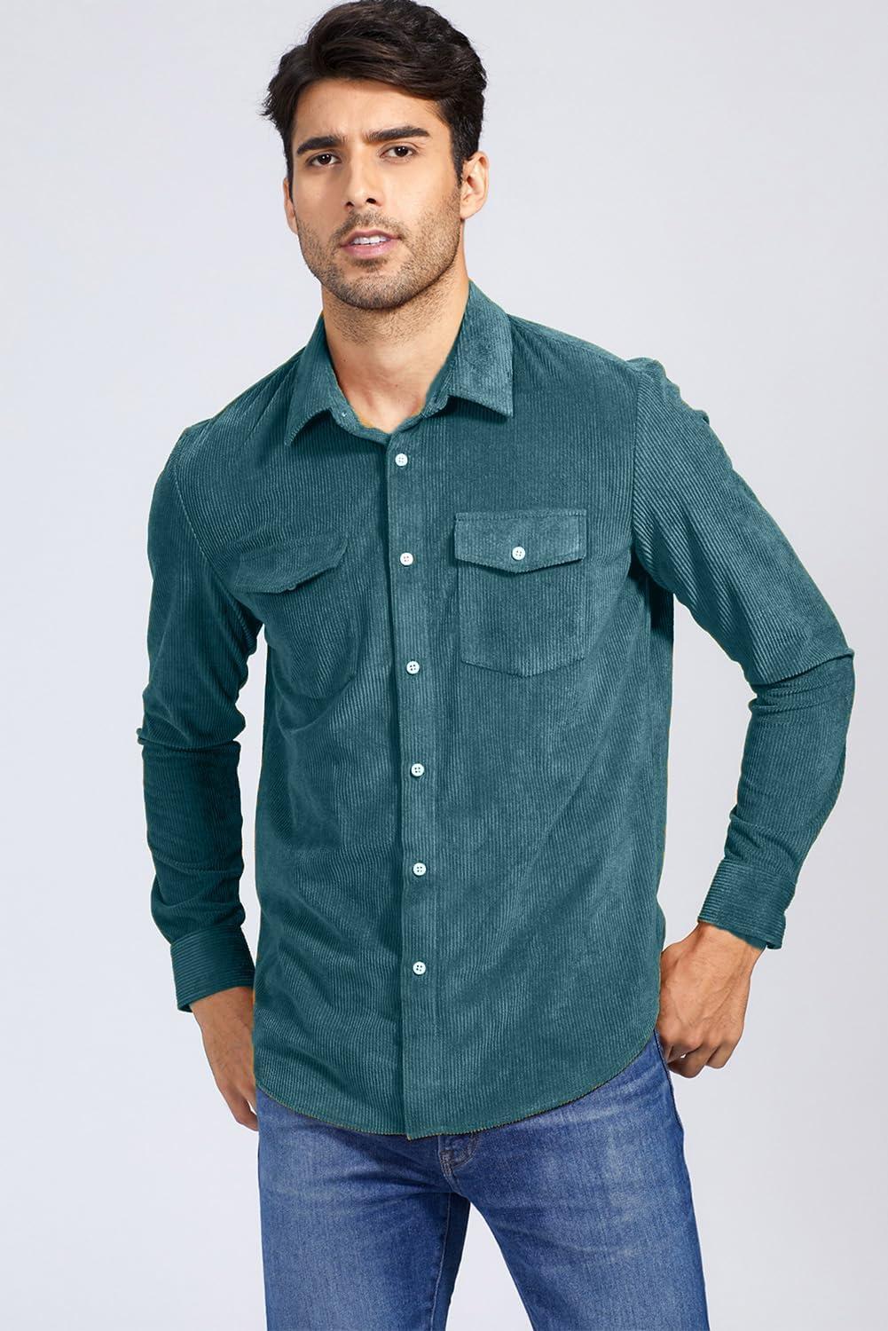JMIERR Men’s Corduroy Button Down Shirts Casual Long Sleeve Shacket Jacket with Flap Pockets(B1 Blue Green)