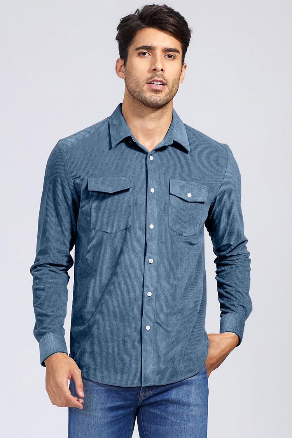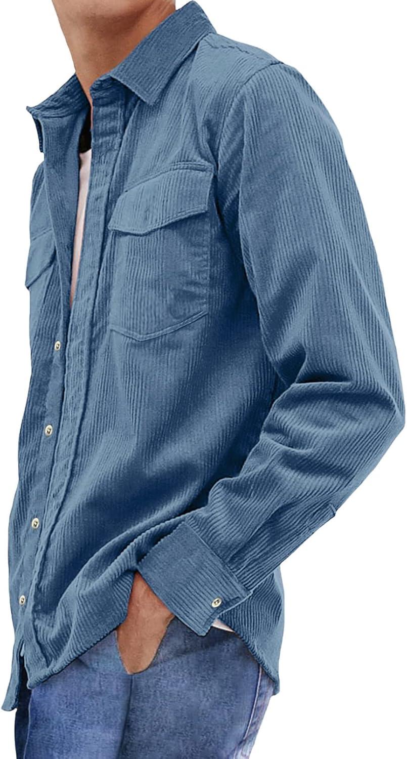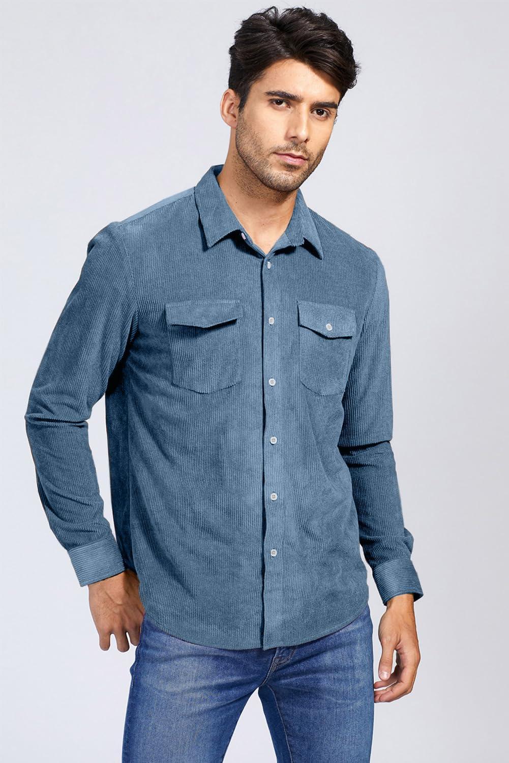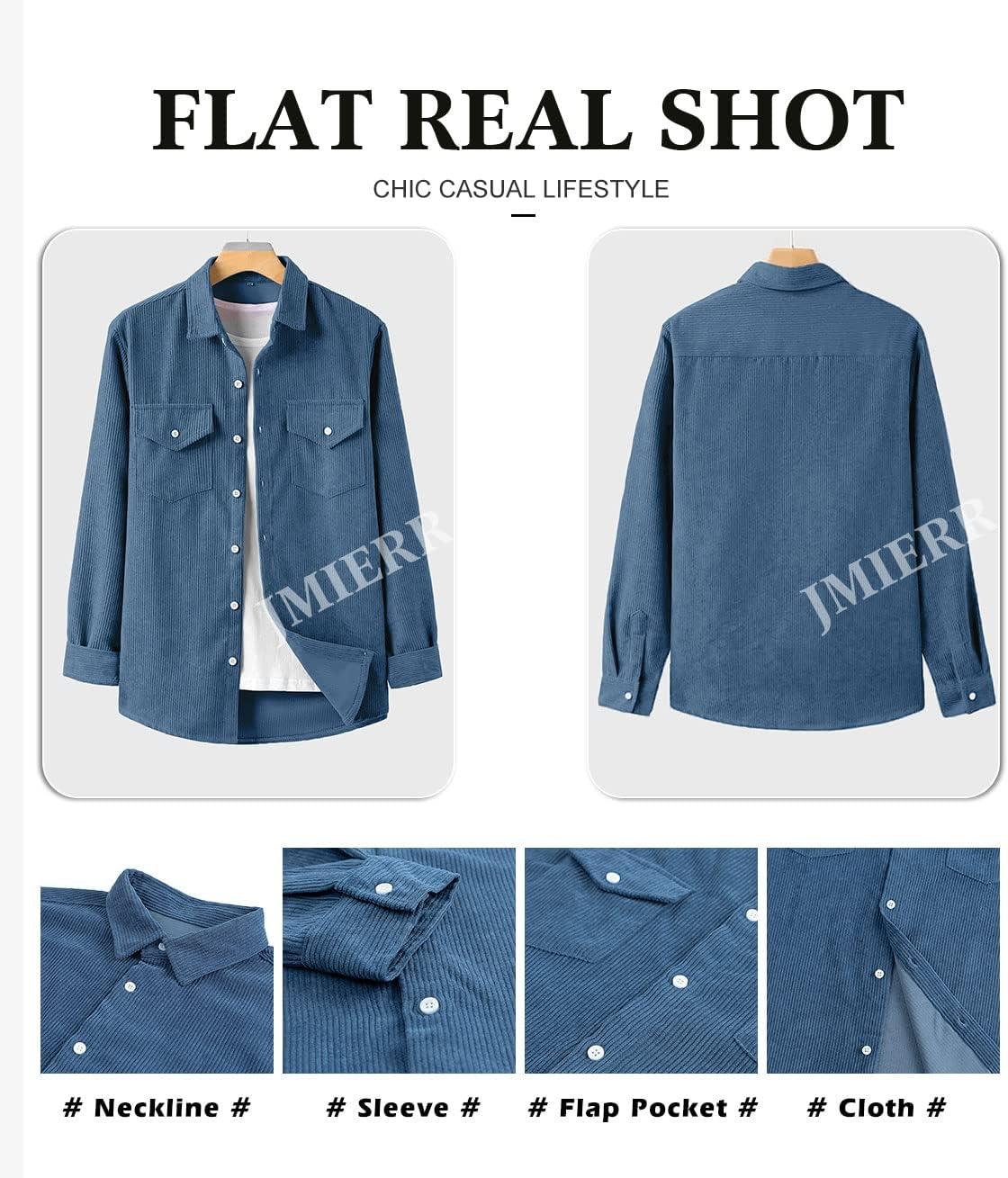 JMIERR Men’s Corduroy Button Down Shirts Casual Long Sleeve Shacket Jacket with Flap Pockets(C Blue01)