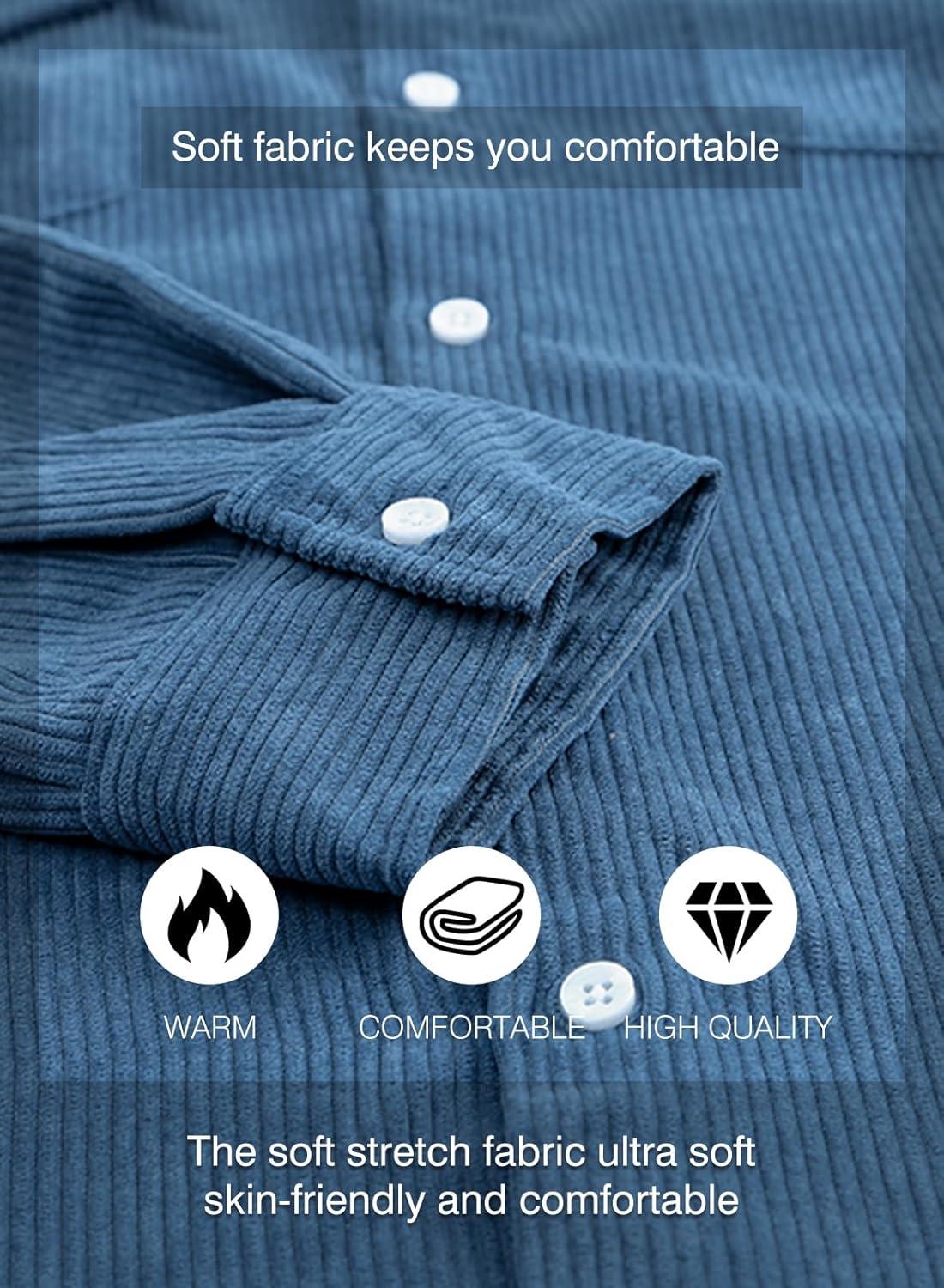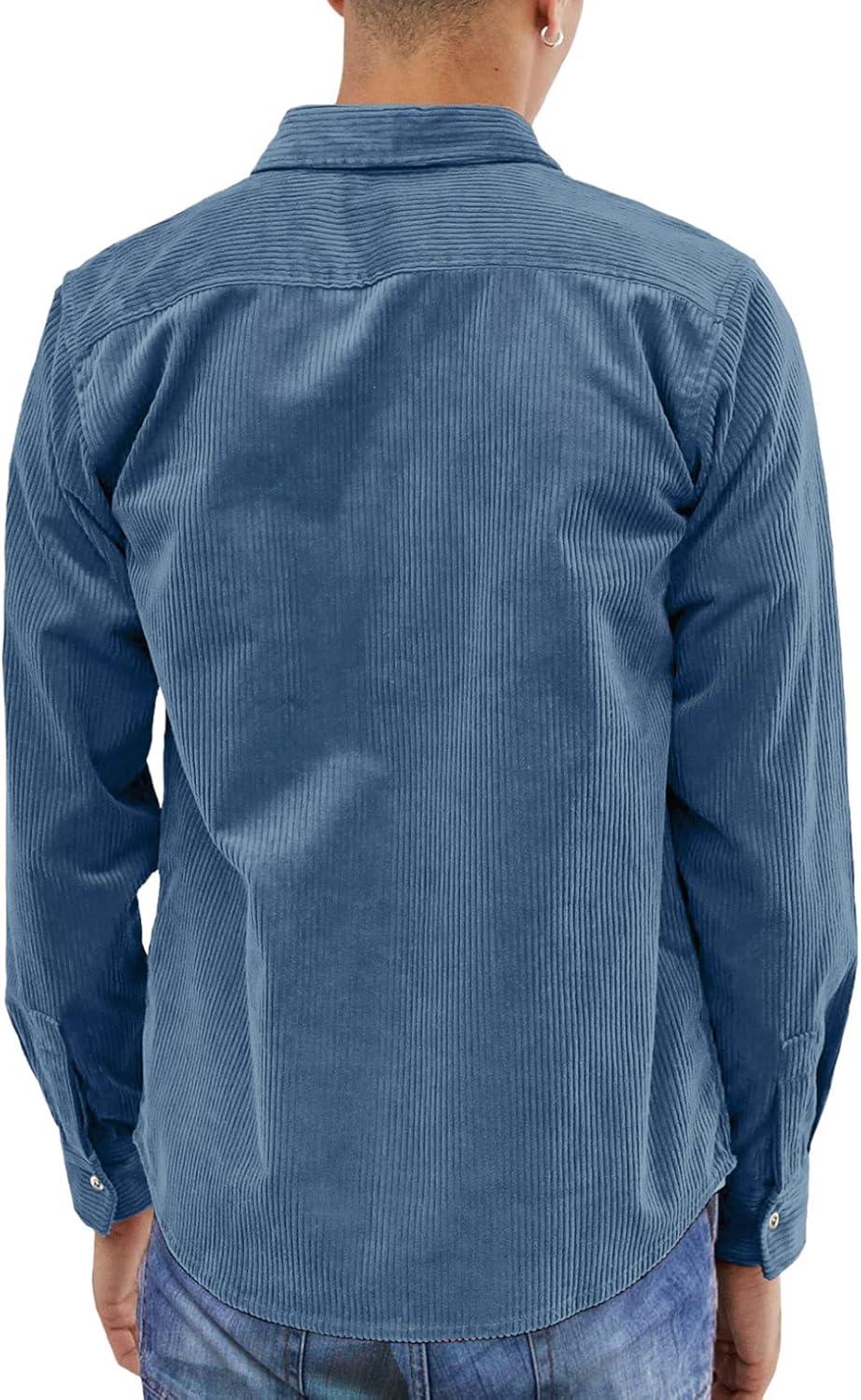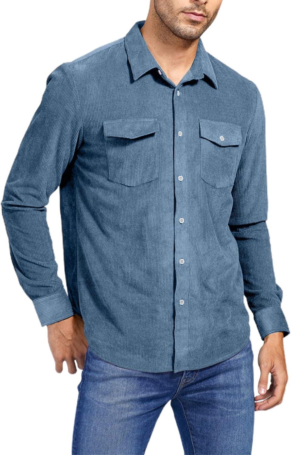 JMIERR Men’s Corduroy Button Down Shirts Casual Long Sleeve Shacket Jacket with Flap Pockets(C Blue01)