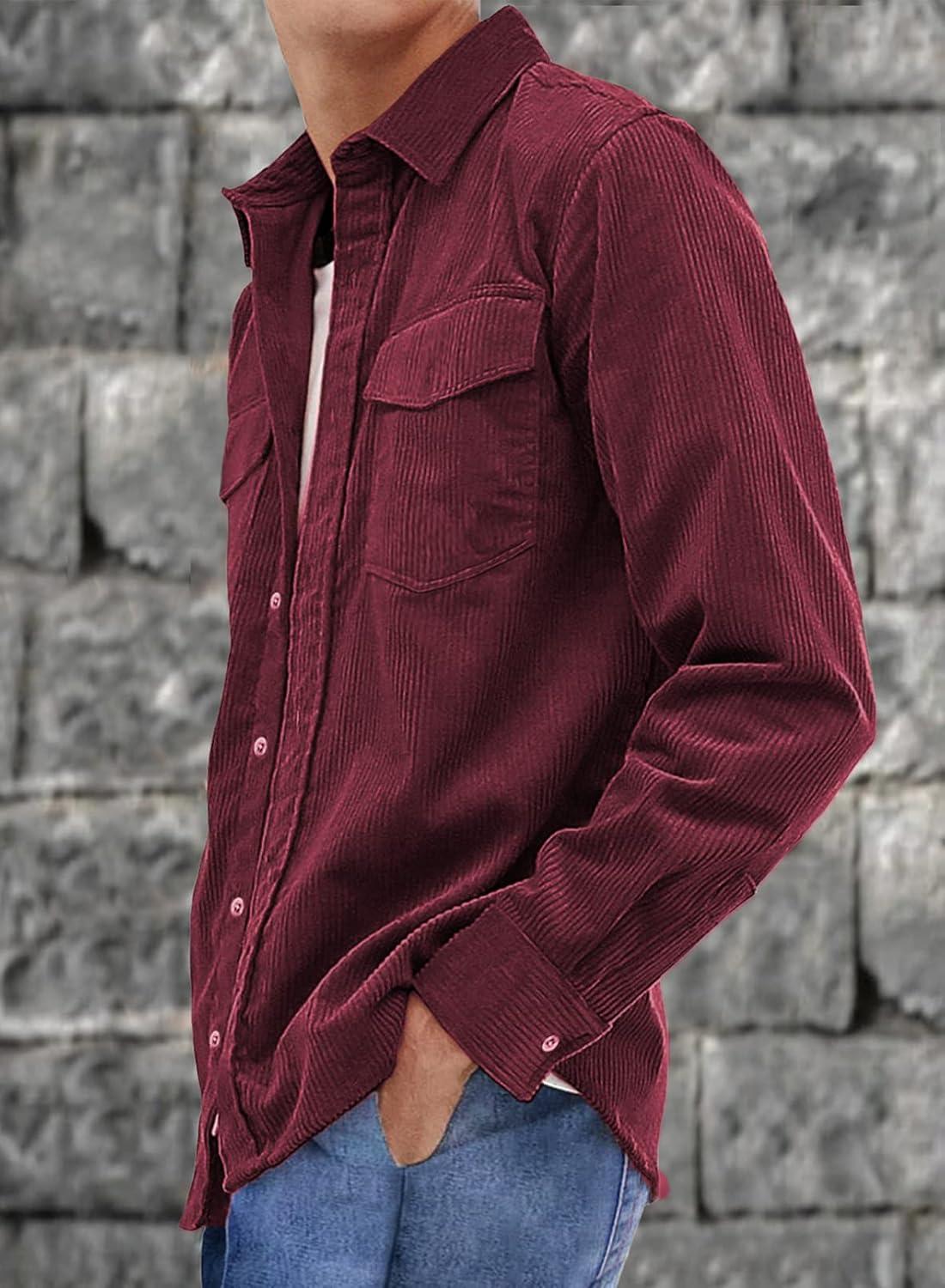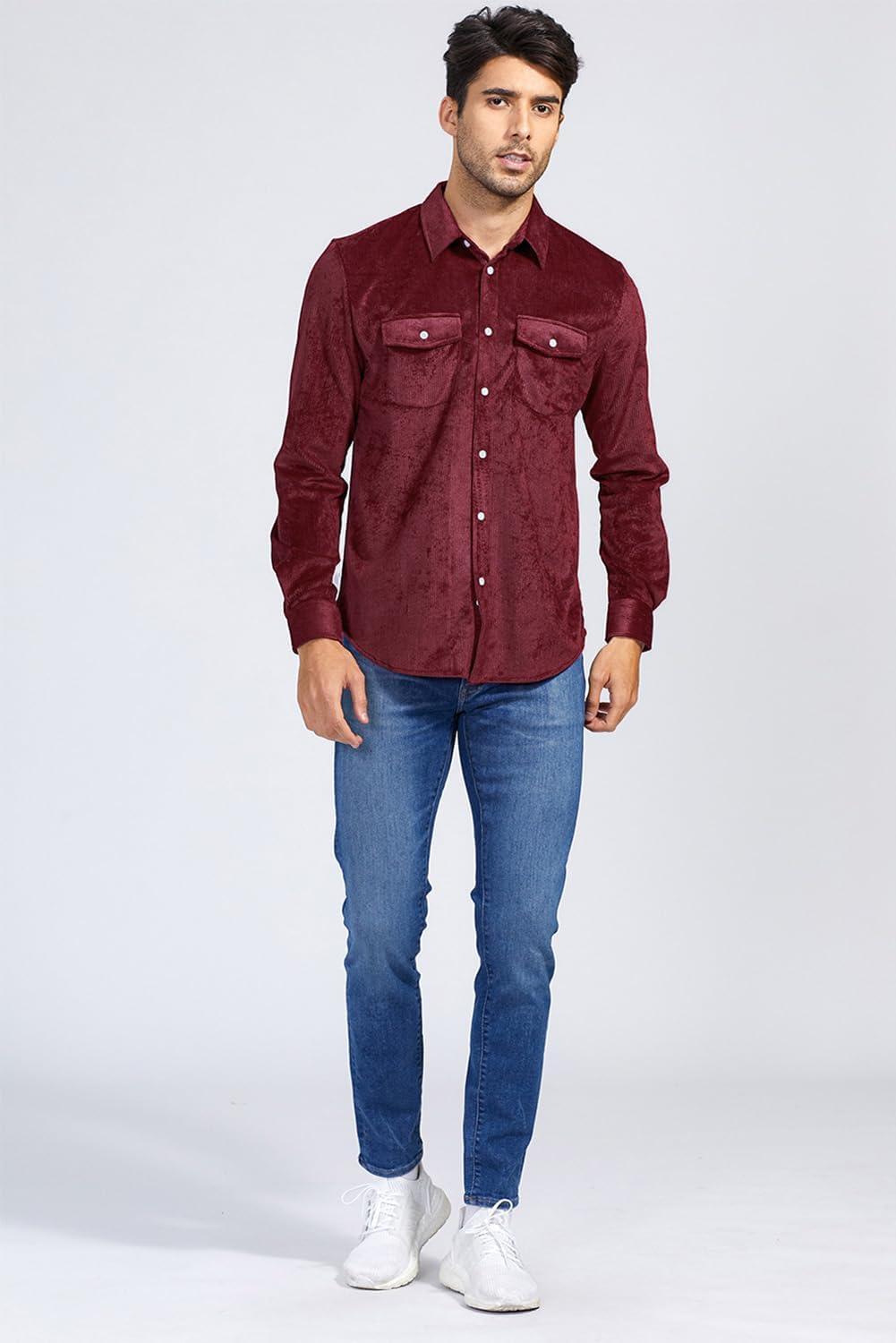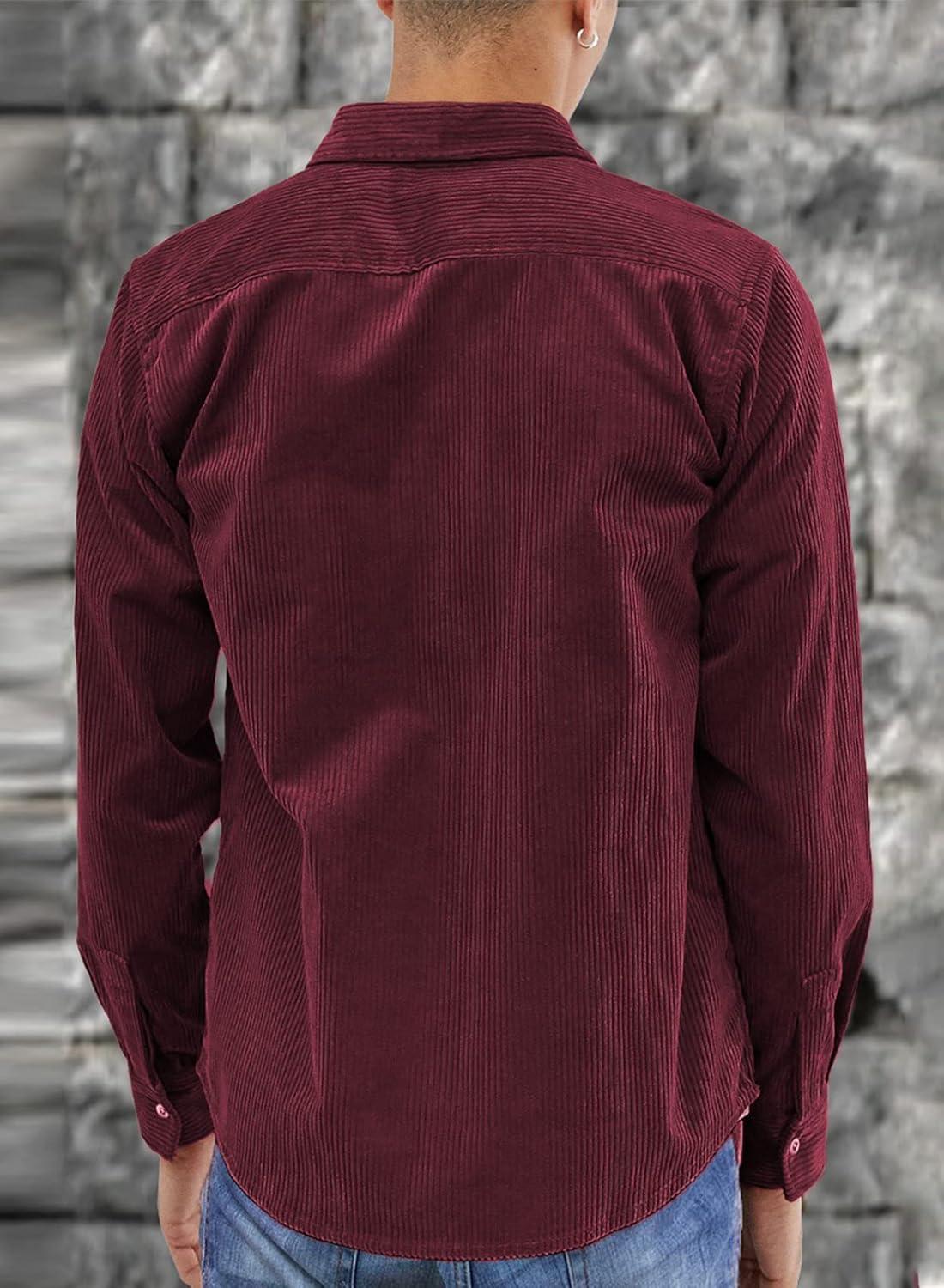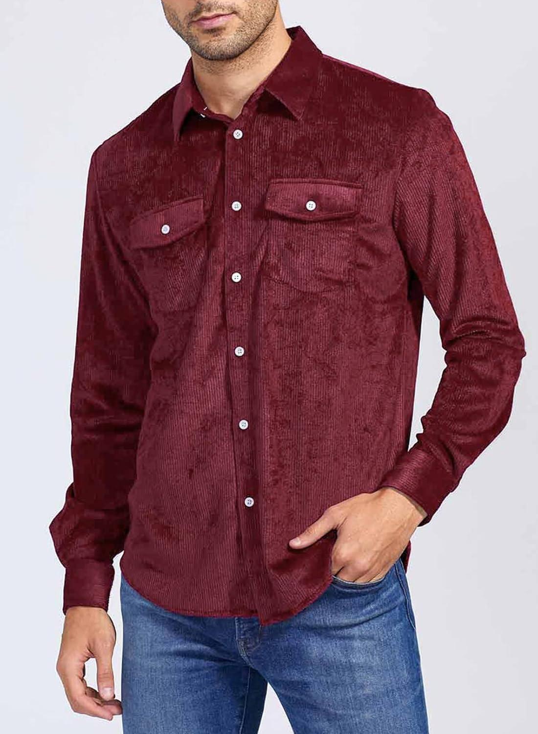 JMIERR Men’s Corduroy Button Down Shirts Casual Long Sleeve Shacket Jacket with Flap Pockets(D Red)