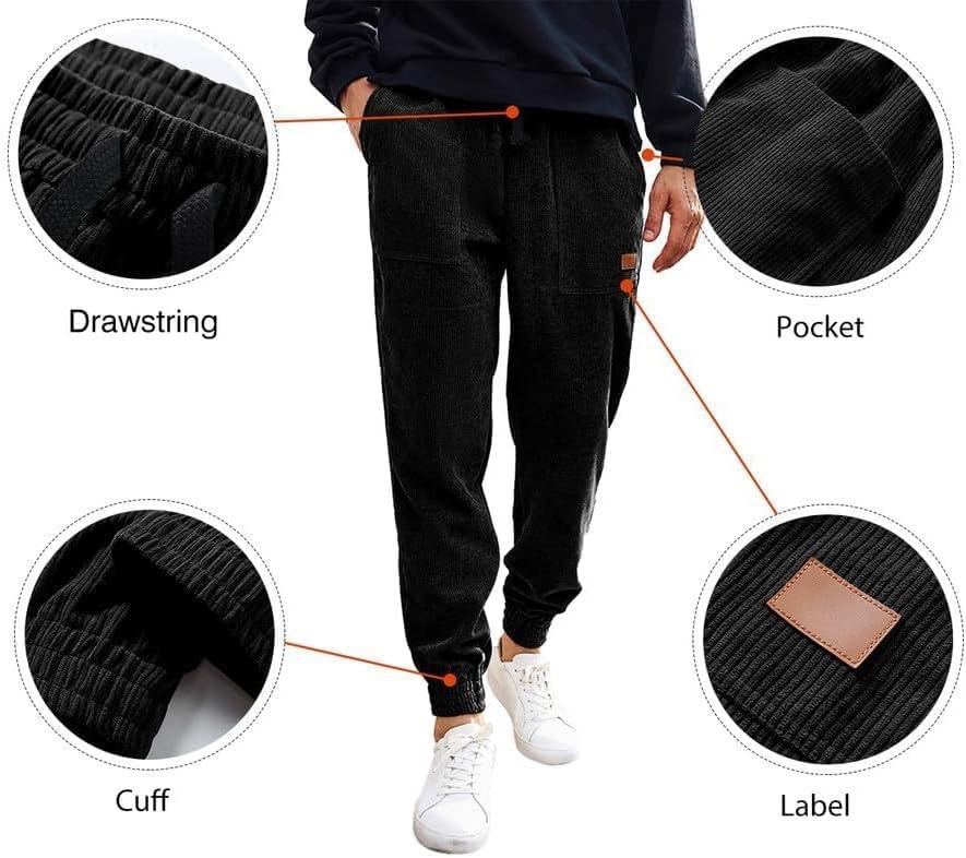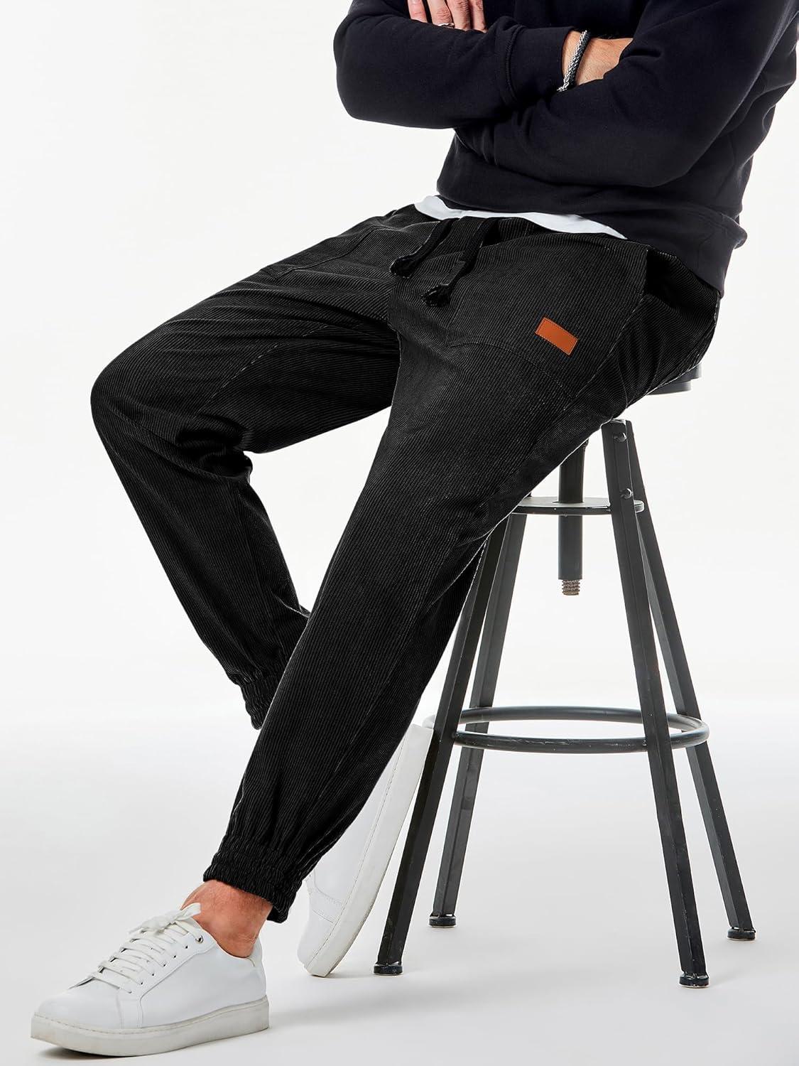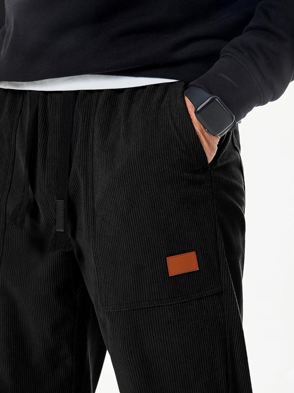 JMIERR Mens Corduroy Joggers Pants Casual Cargo Pants Drawstring Elastic Waist Baggy Tapered Sweatpants with Pockets(Black)
