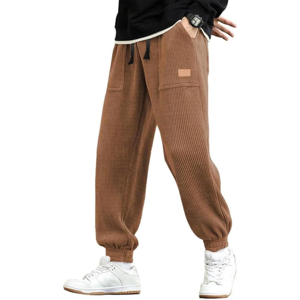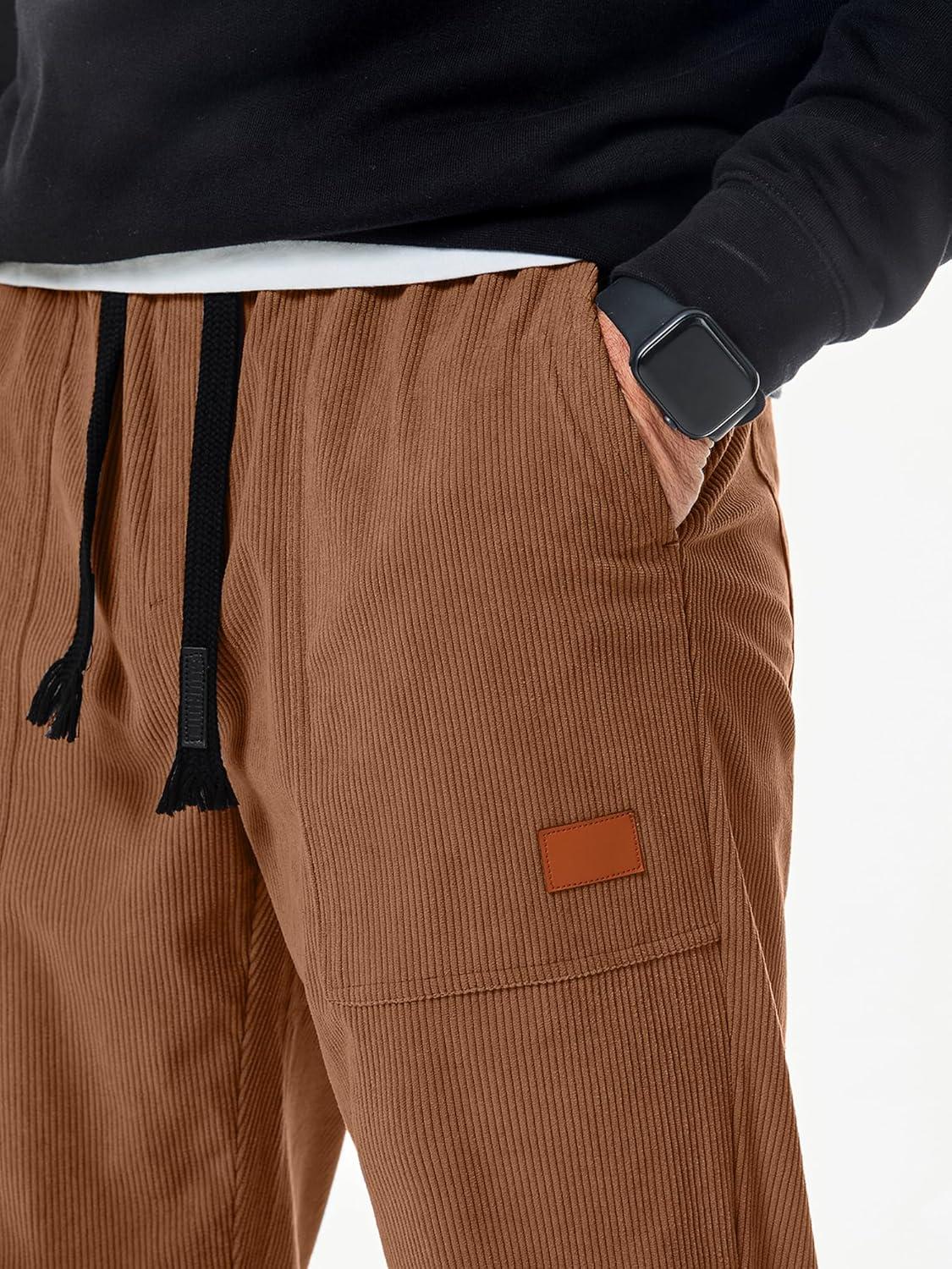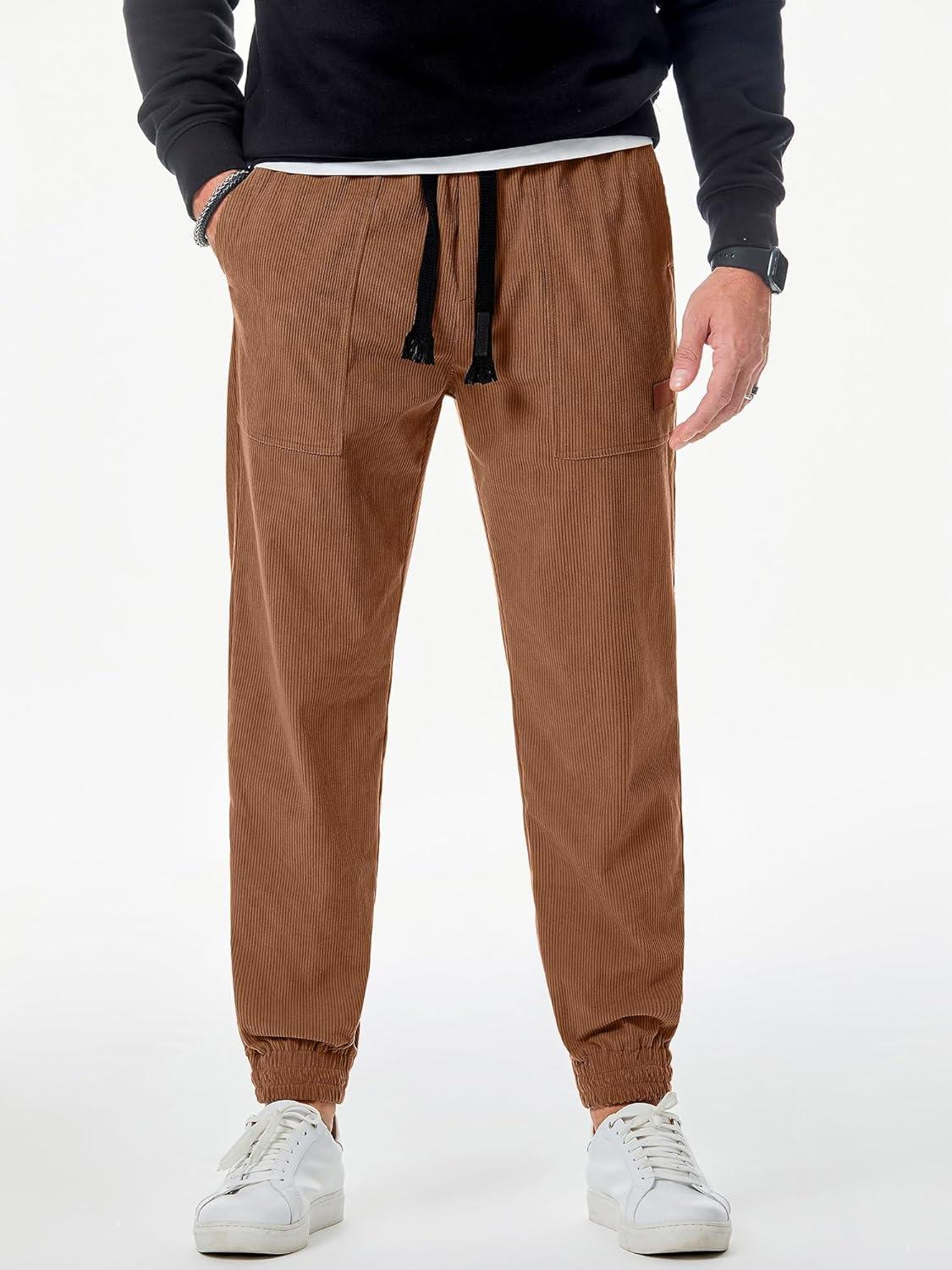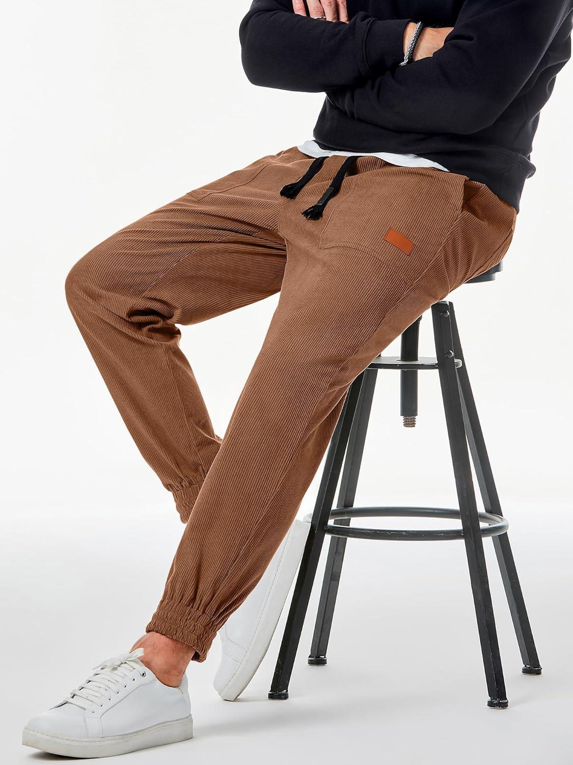 JMIERR Mens Corduroy Joggers Pants Casual Cargo Pants Drawstring Elastic Waist Baggy Tapered Sweatpants with Pockets(Dark Brown)
