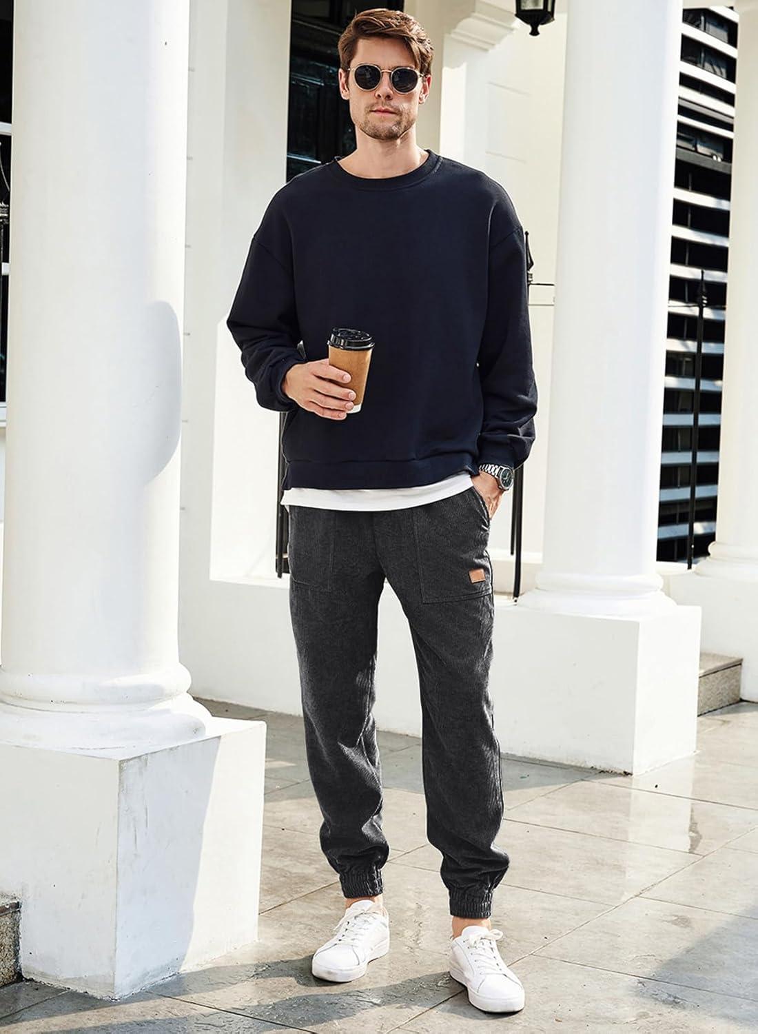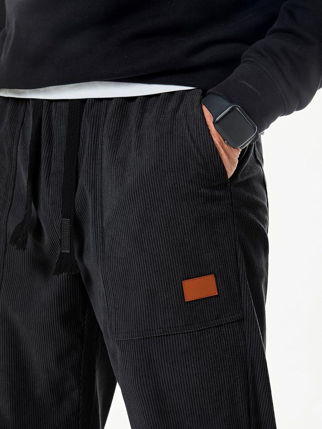 JMIERR Mens Corduroy Joggers Pants Casual Cargo Pants Drawstring Elastic Waist Baggy Tapered Sweatpants with Pockets(Dark Grey)