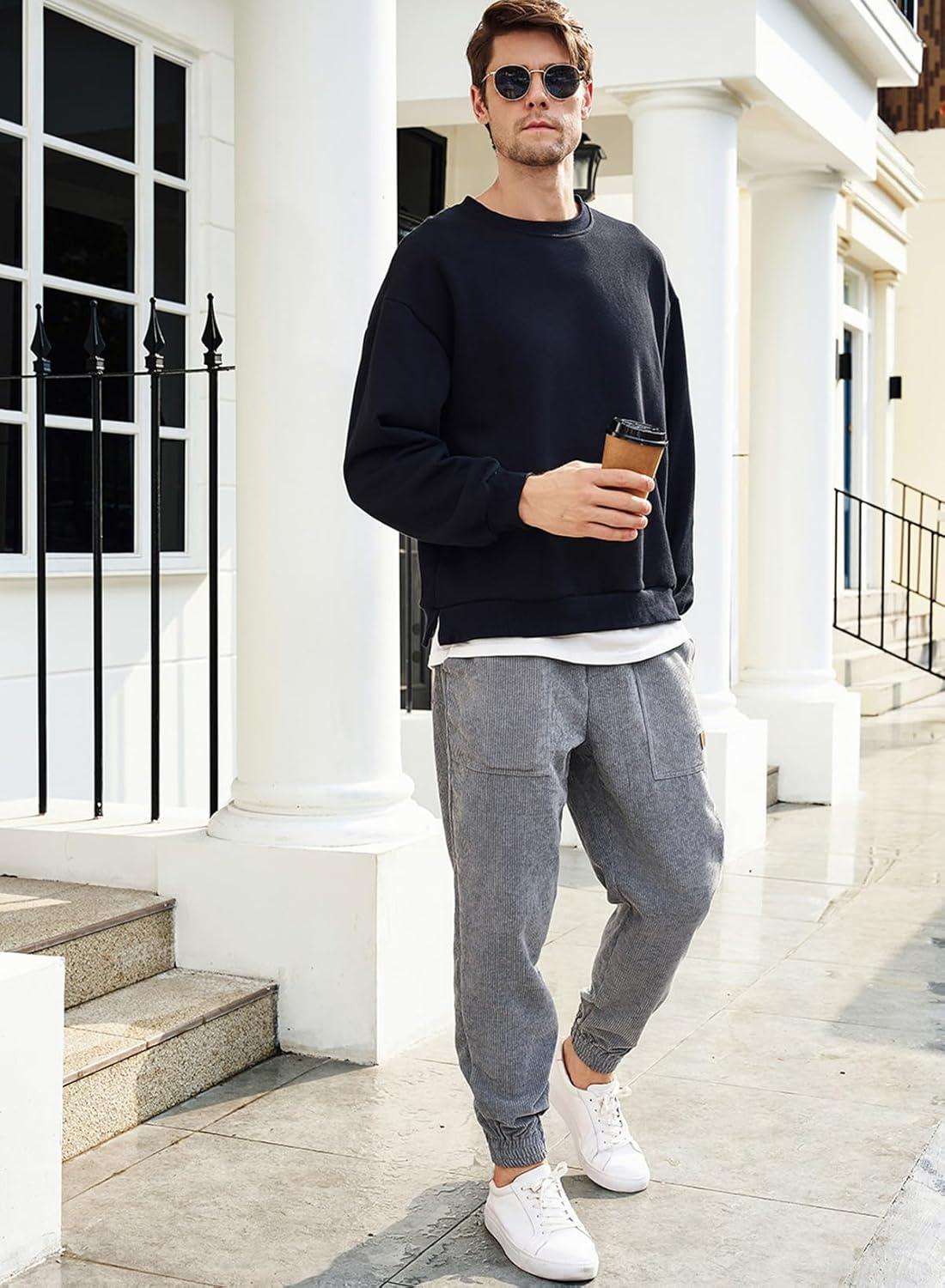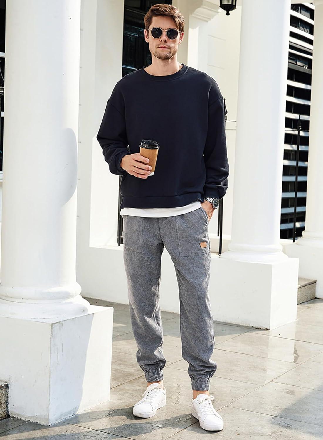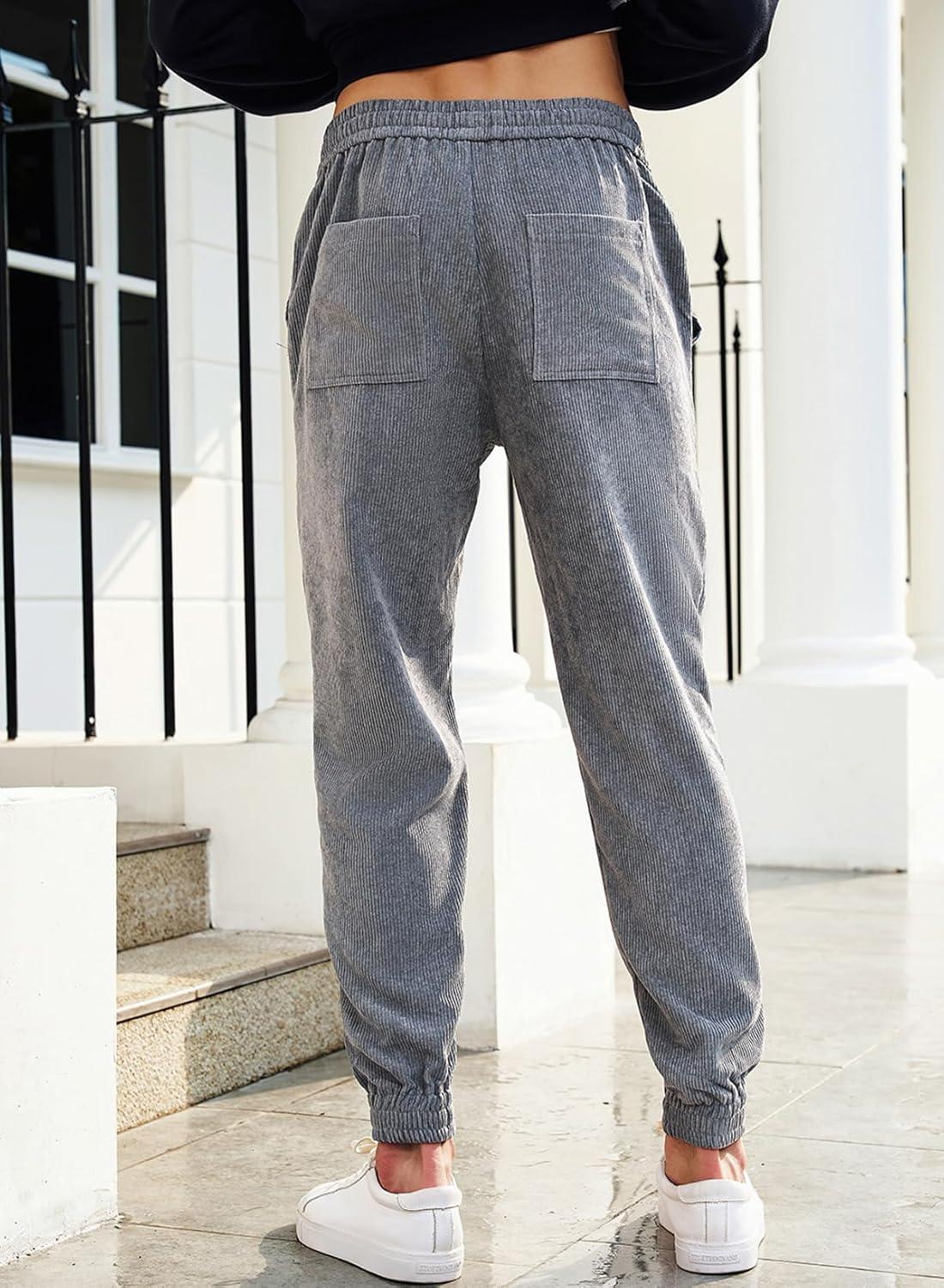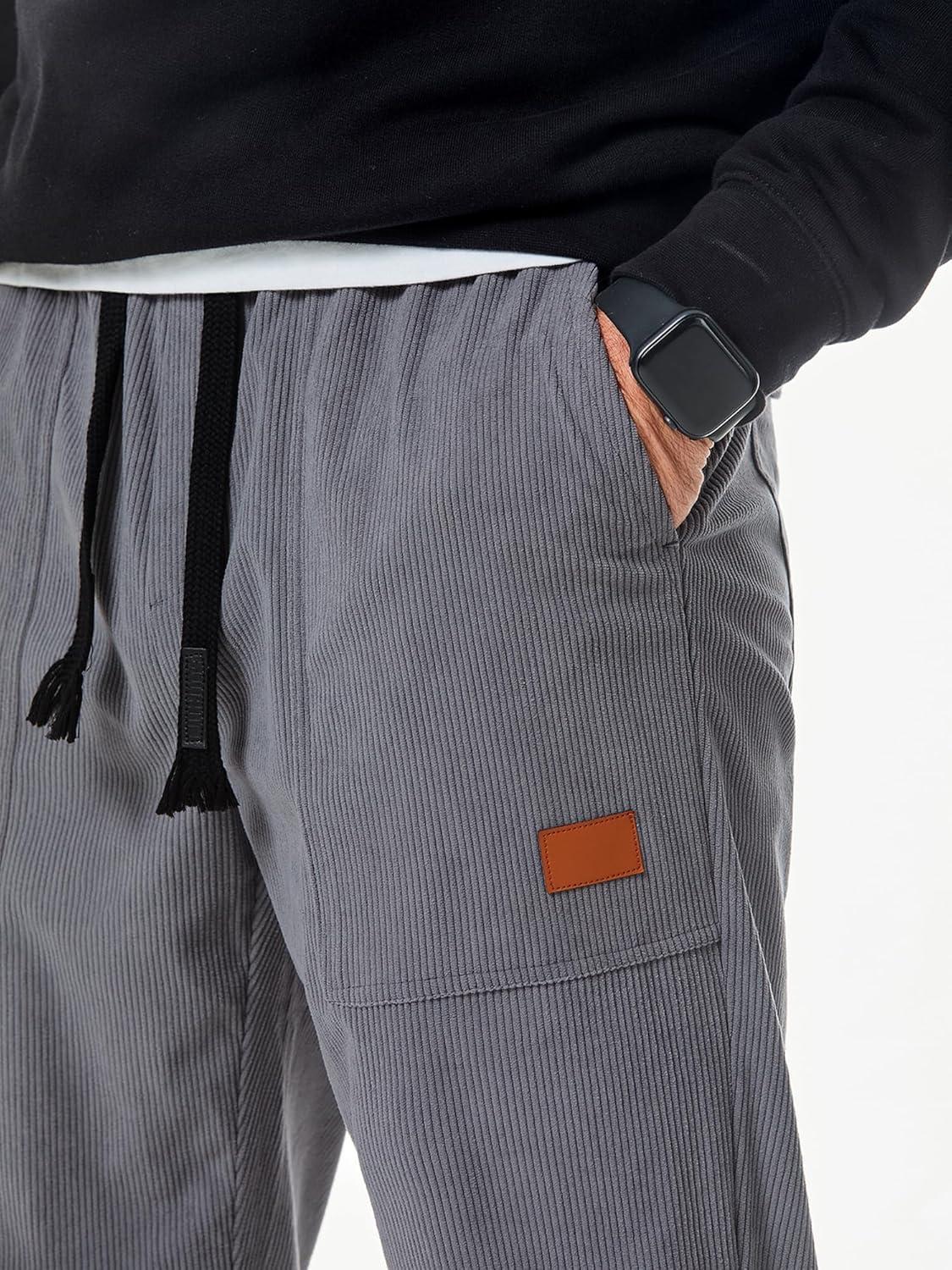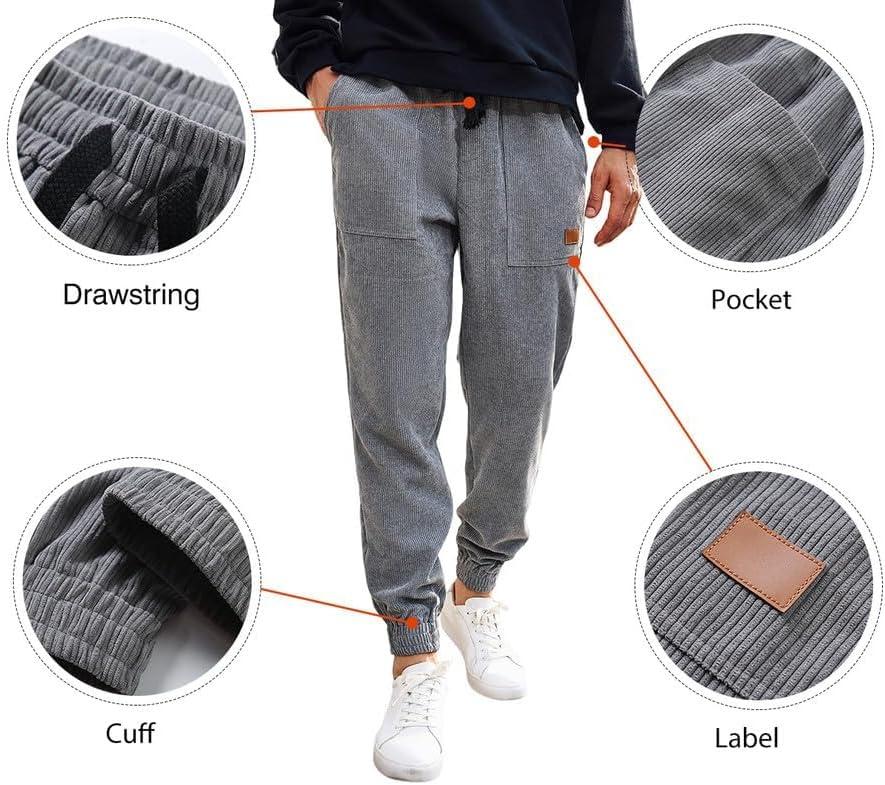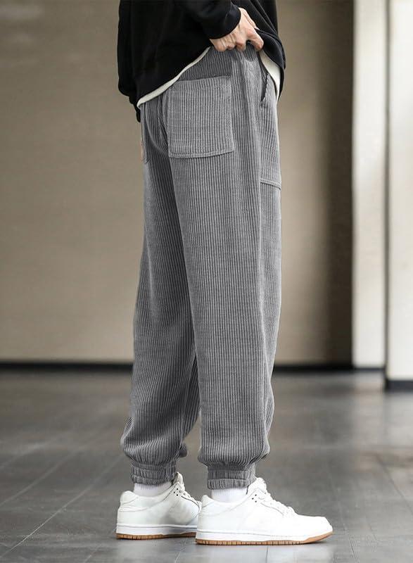 JMIERR Mens Corduroy Joggers Pants Casual Cargo Pants Drawstring Elastic Waist Baggy Tapered Sweatpants with Pockets(Gray)