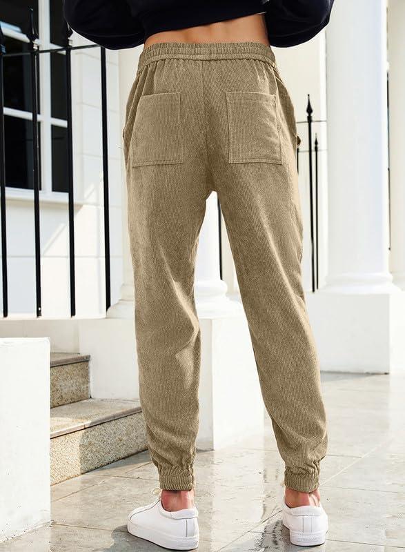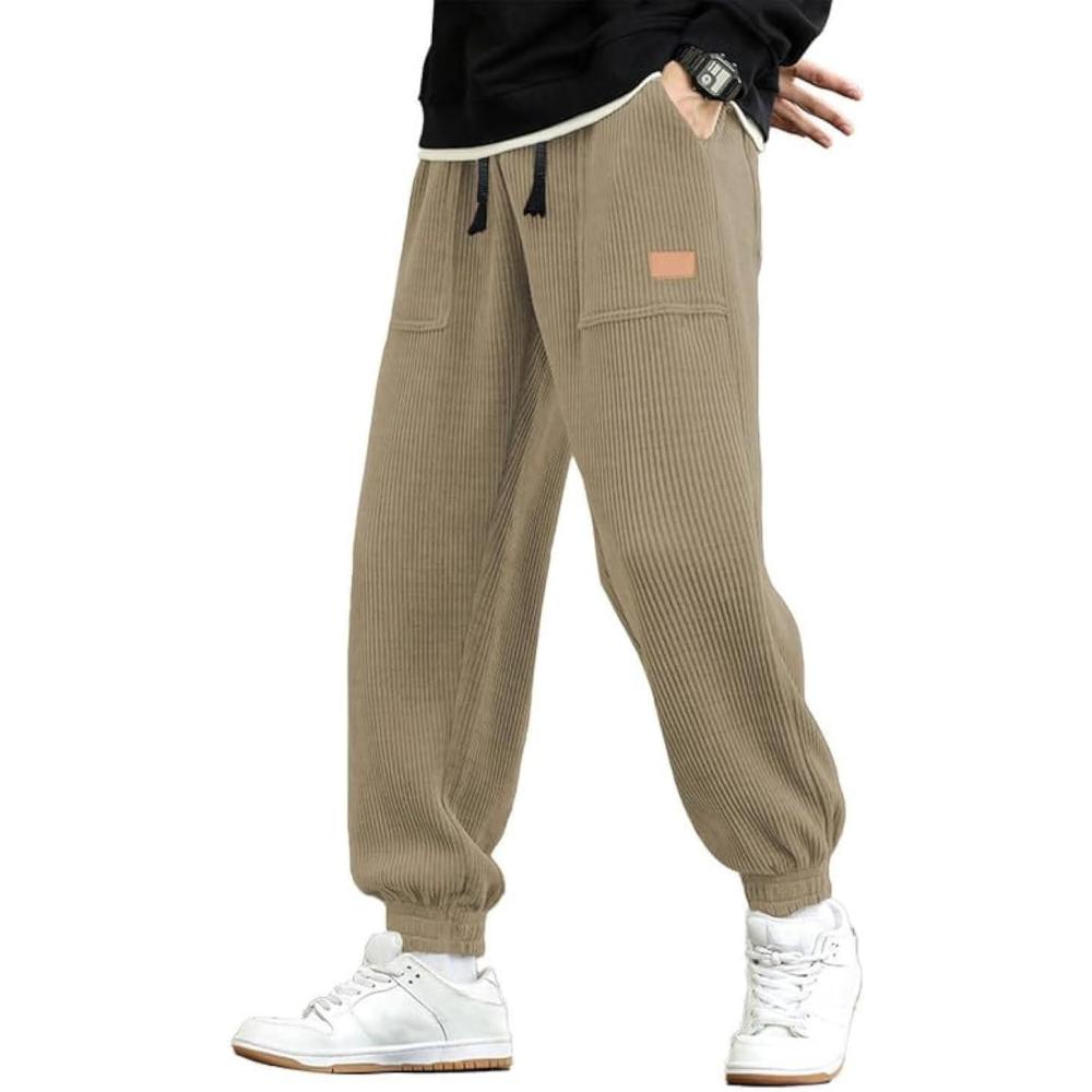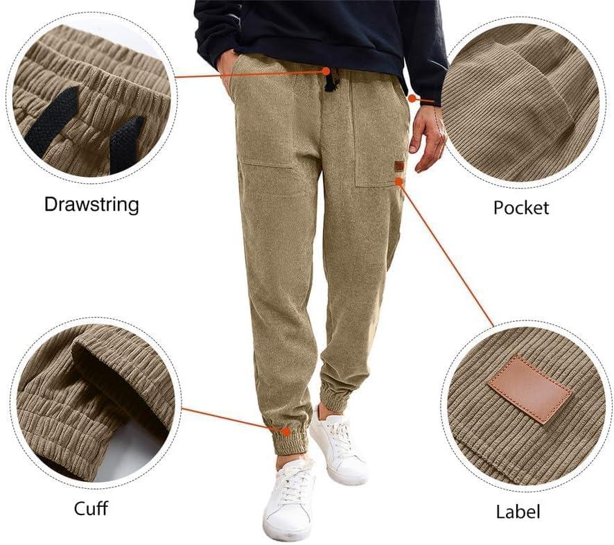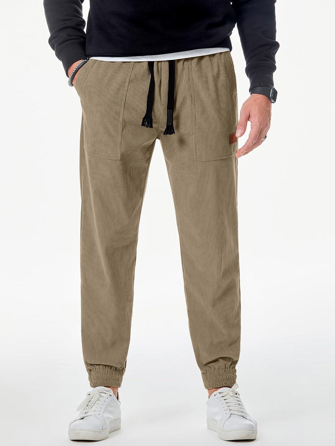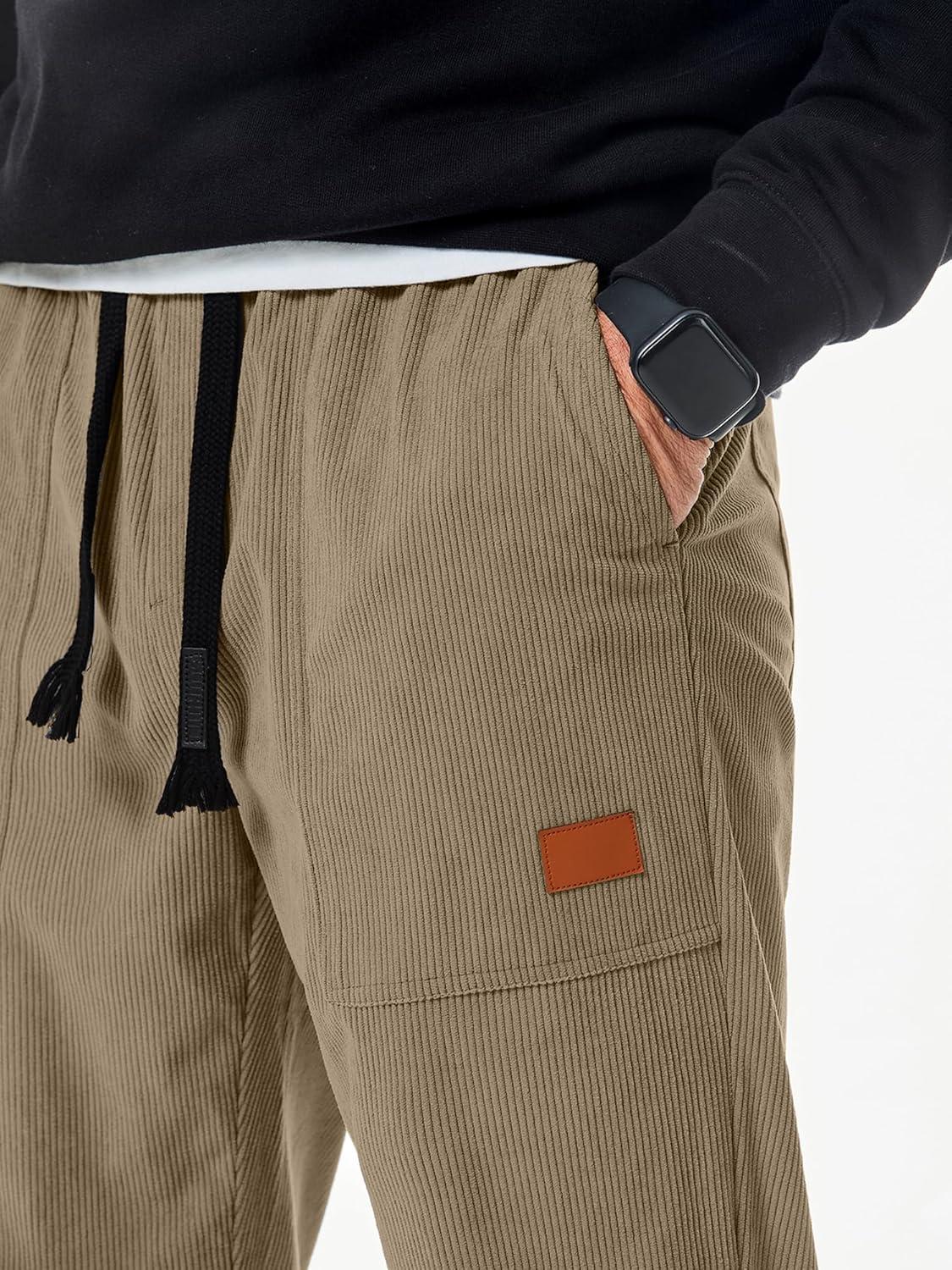 JMIERR Mens Corduroy Joggers Pants Casual Cargo Pants Drawstring Elastic Waist Baggy Tapered Sweatpants with Pockets(Light Brown)